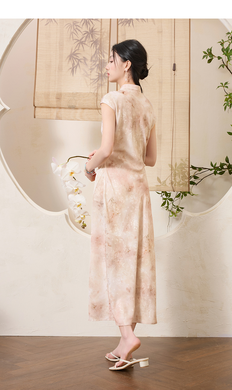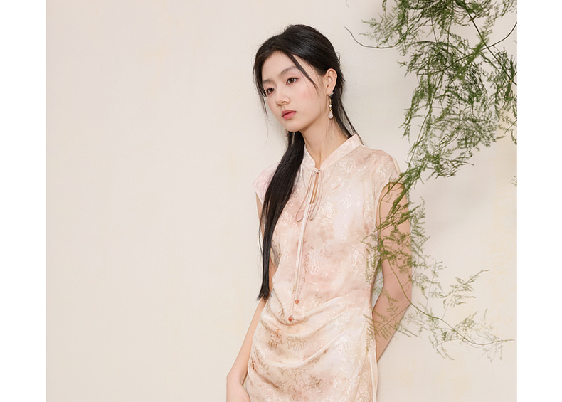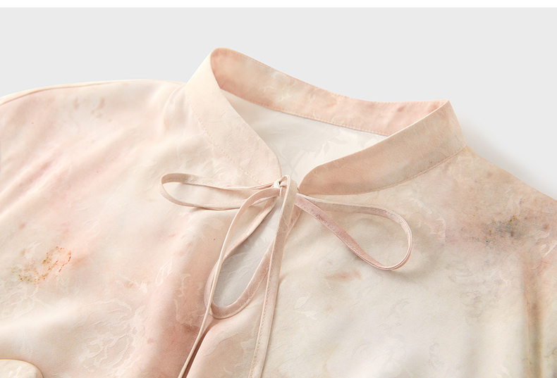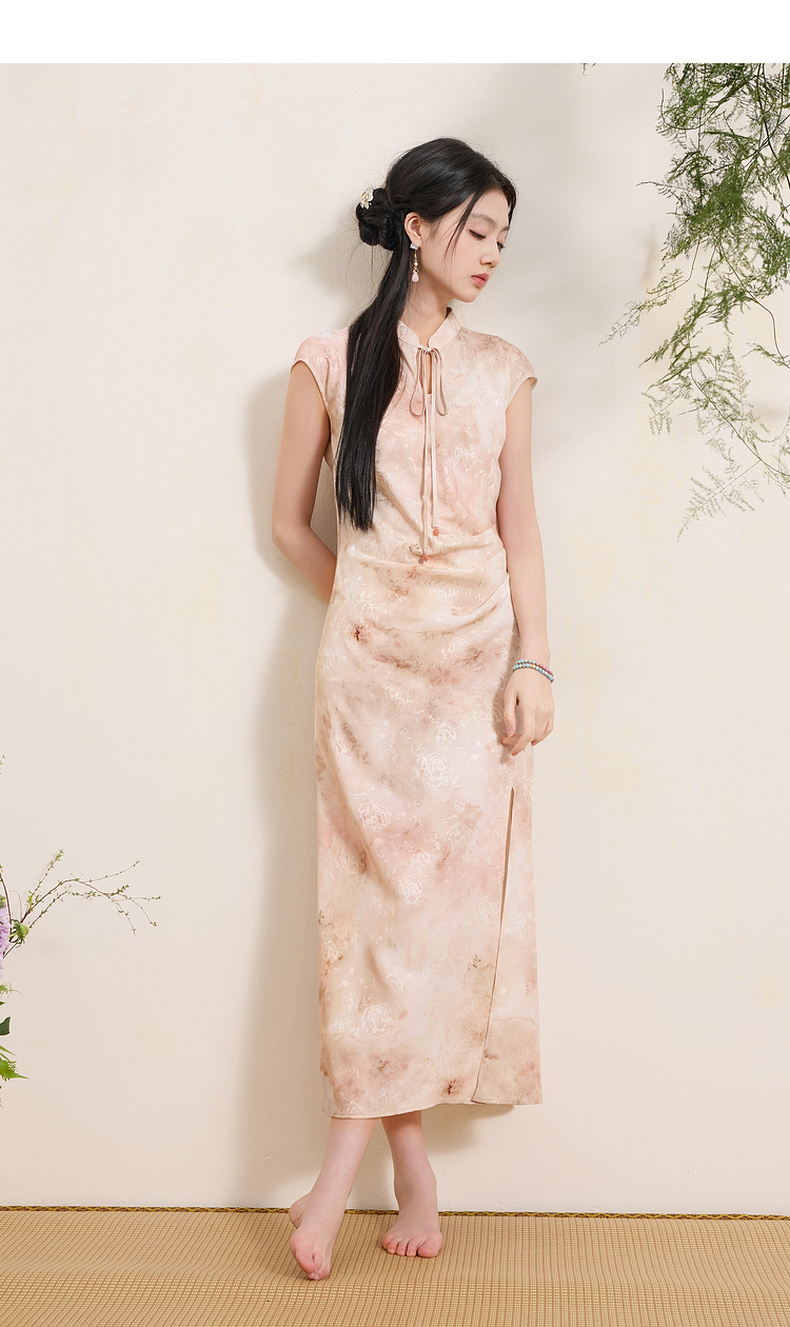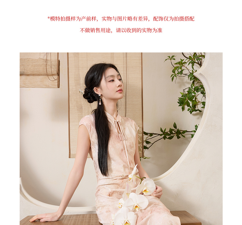 三彩【月华如水】2025夏季新款新中式旗袍连衣裙开叉长裙系带立领C