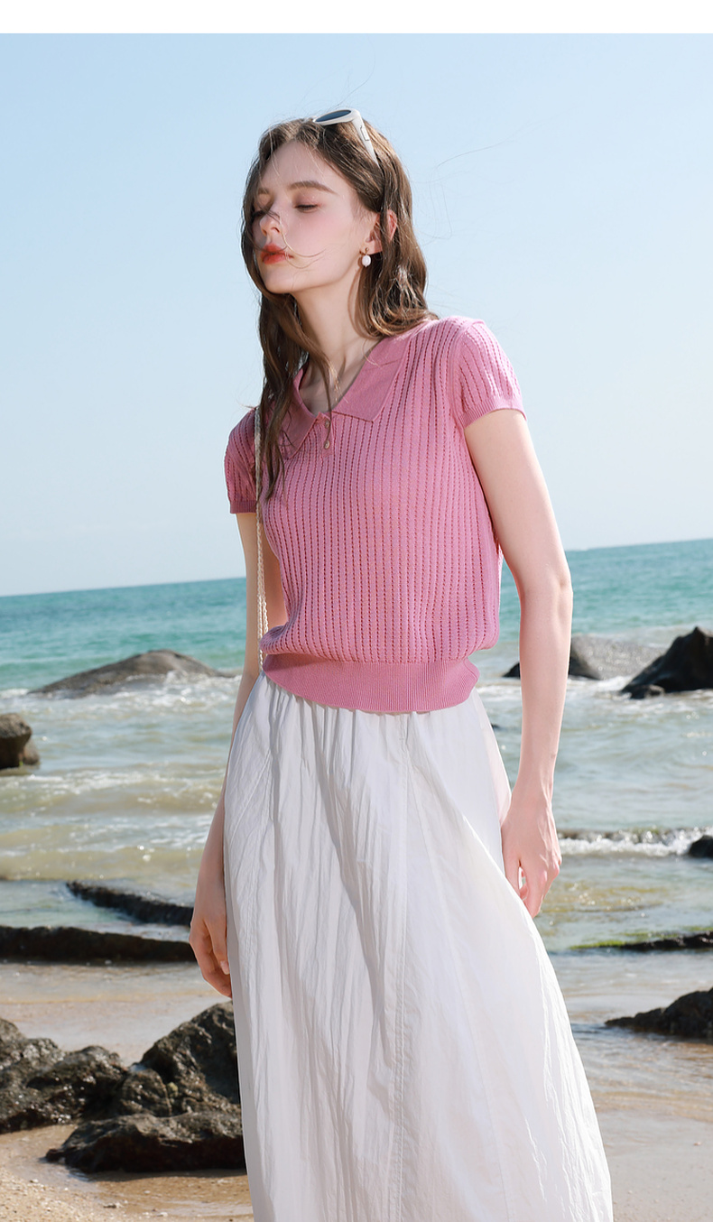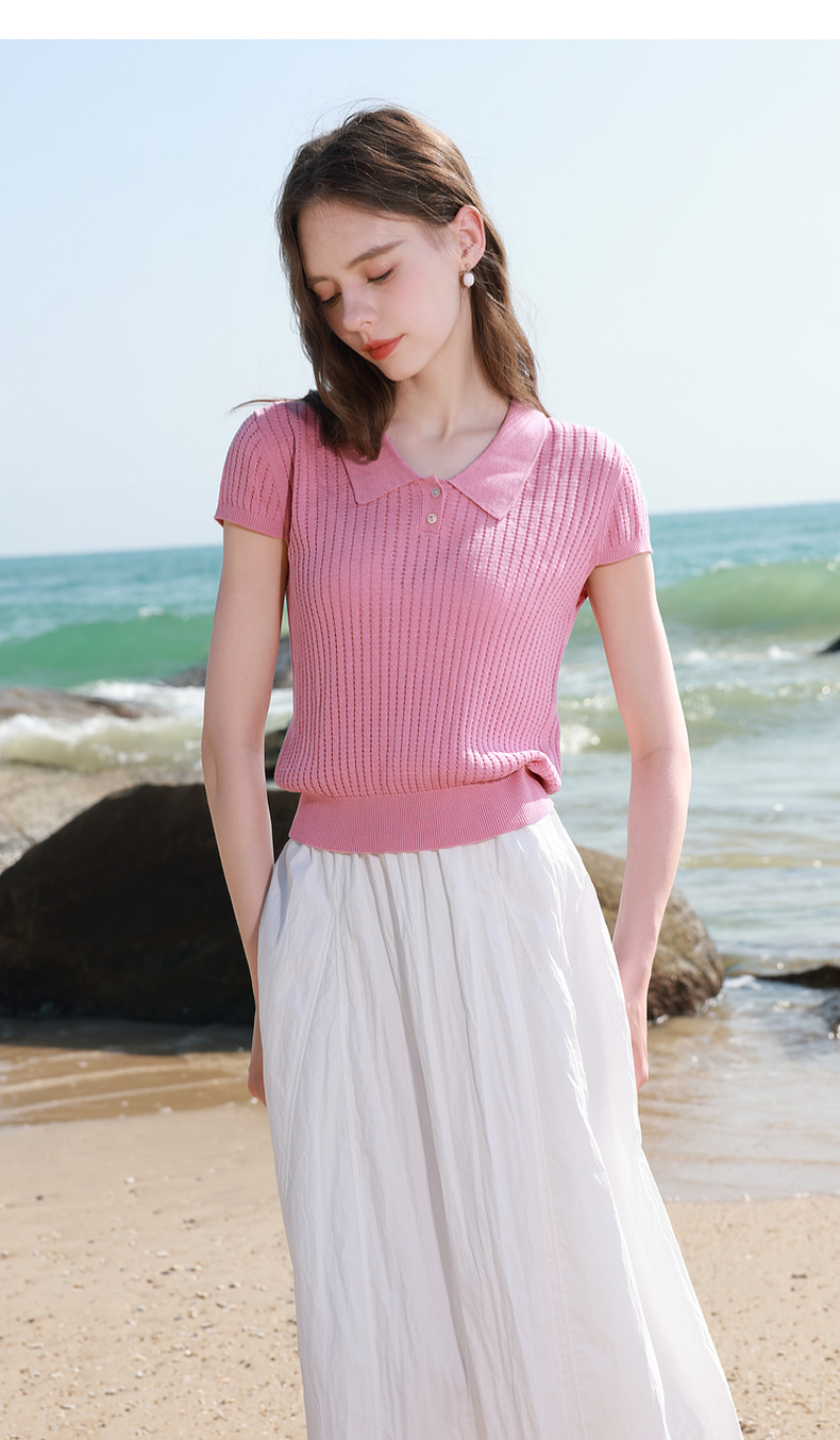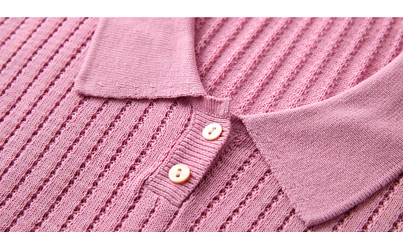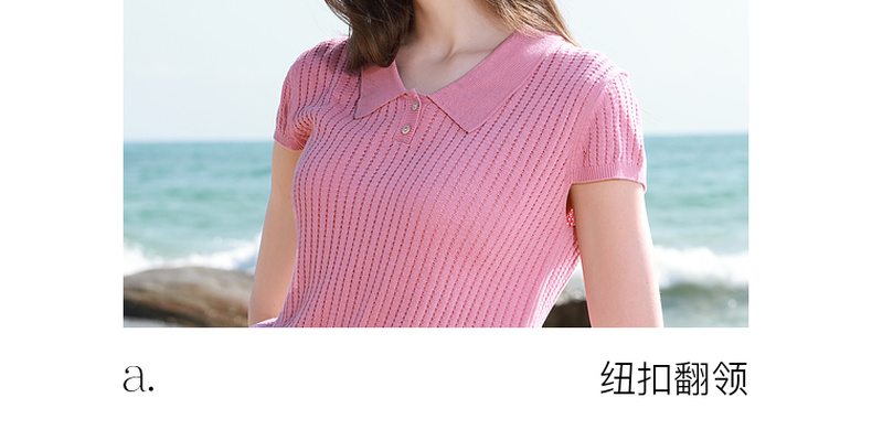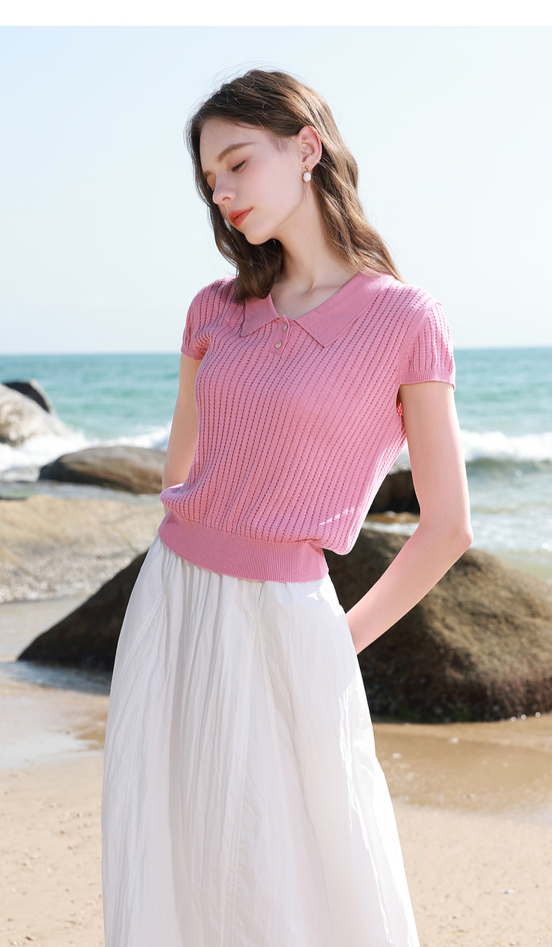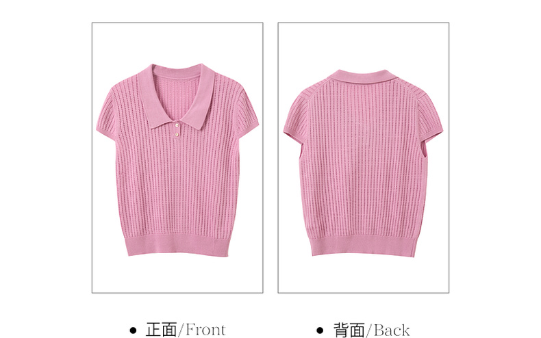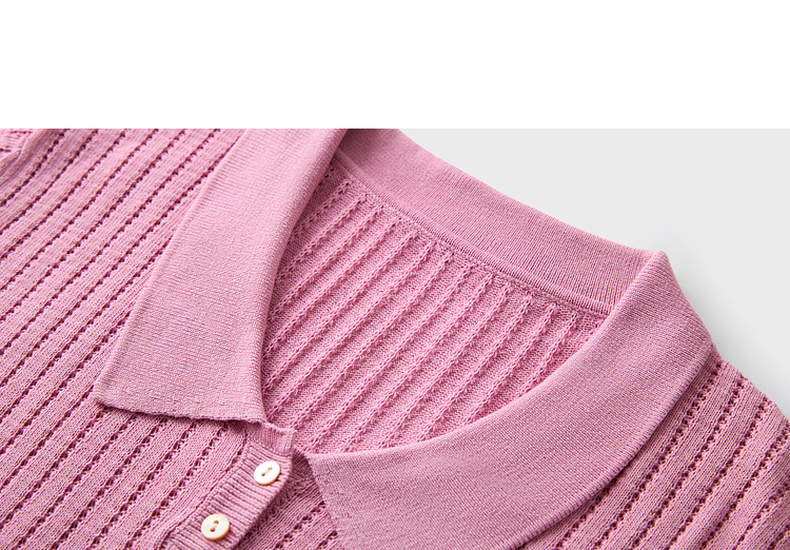 三彩2026春季新款镂空坑条针织衫套头polo衫短袖翻领上衣M