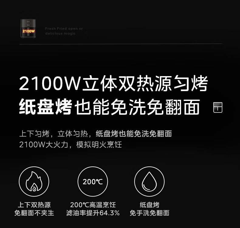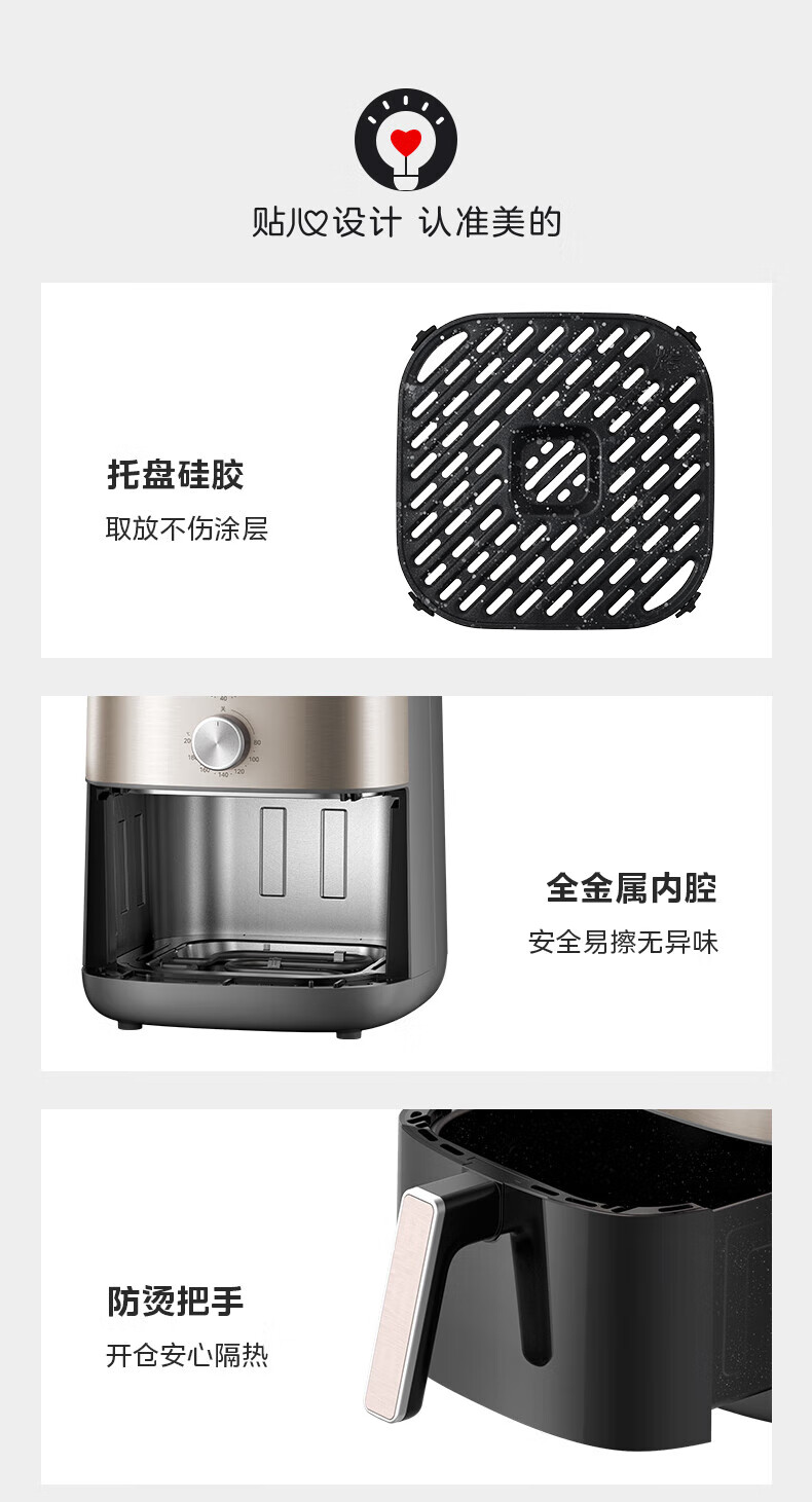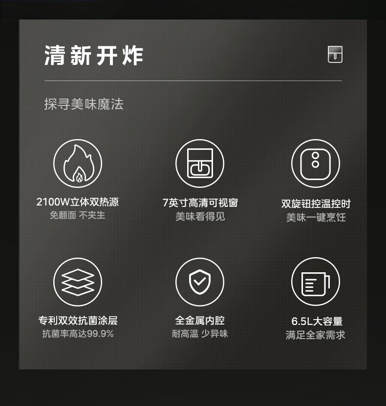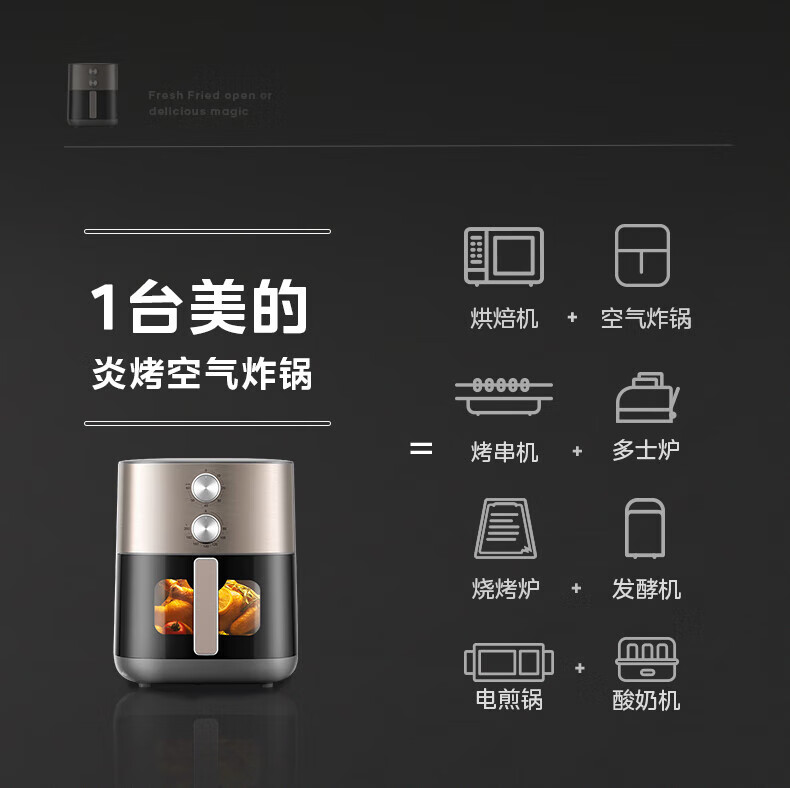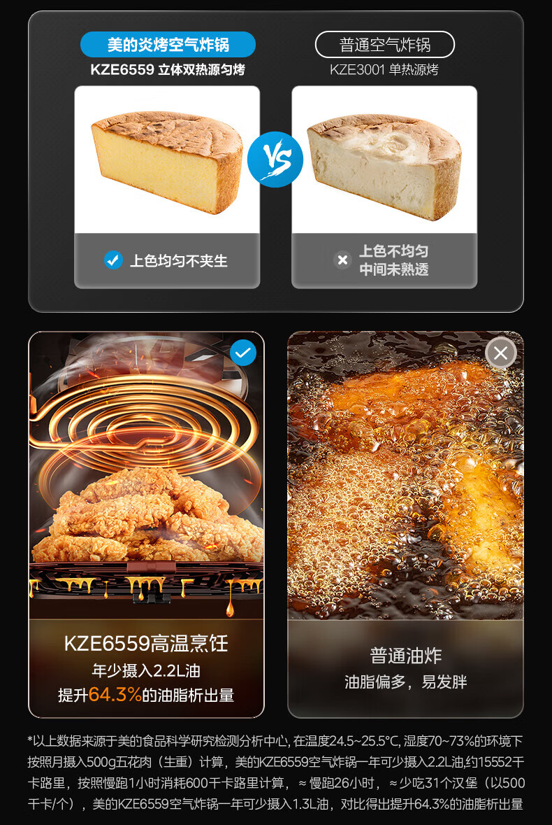 美的(Midea)空气炸锅不用翻面大容量透明可视家用智能电炸锅烤箱一体机 全金属内腔双旋控温不沾易清洗 MF-KZE6559【双热源匀烤】 6.5L