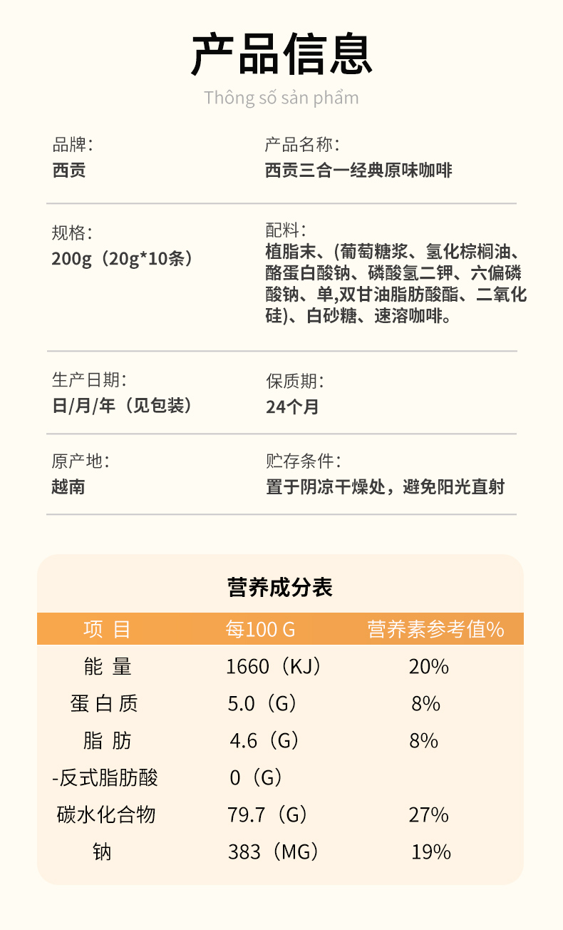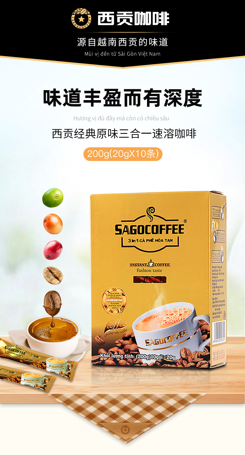 【正常发货】西贡经典原味速溶三合一咖啡200g盒装10条