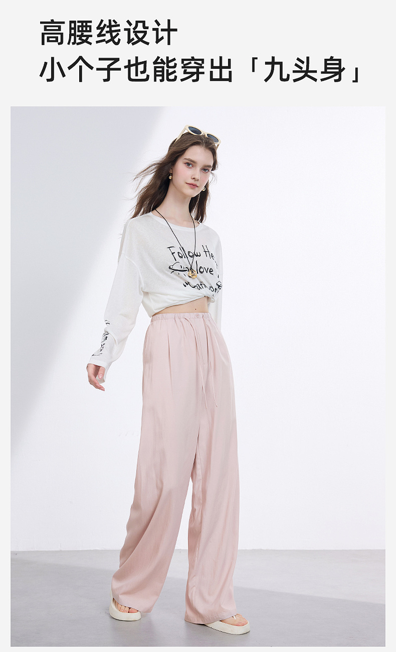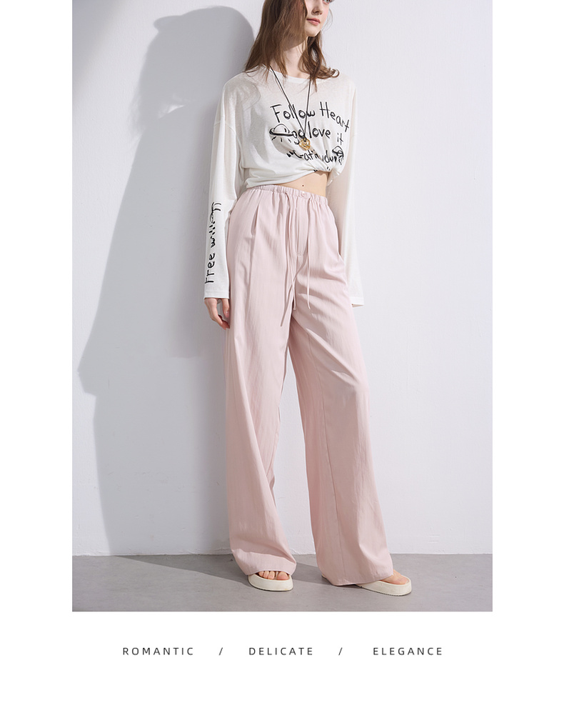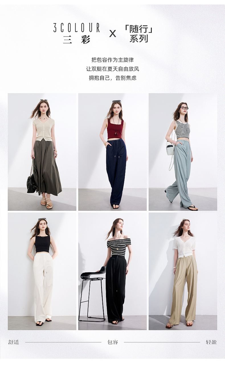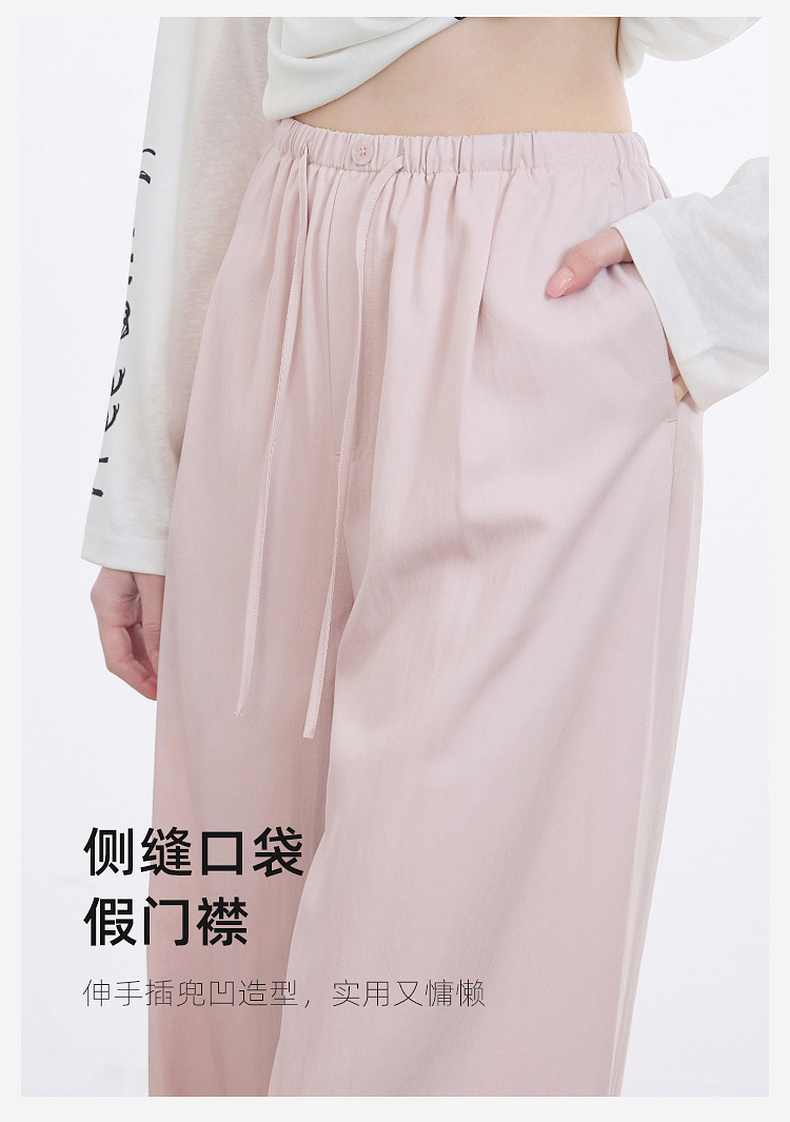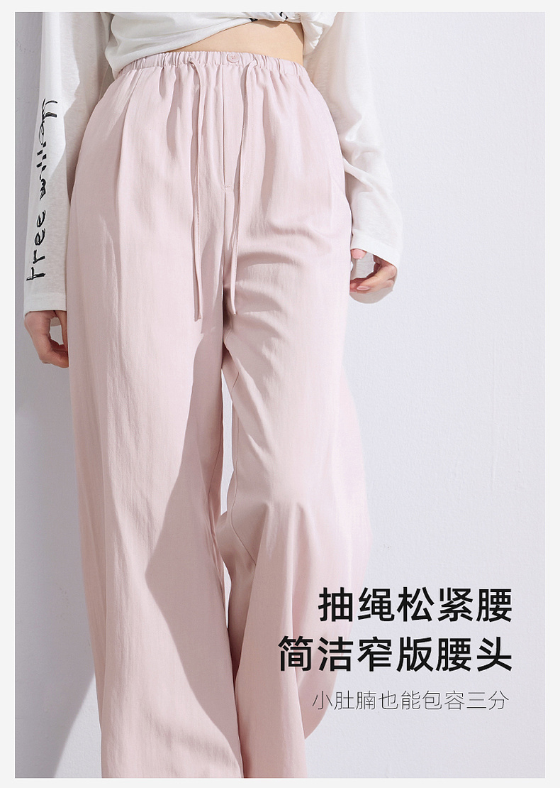 三彩2025夏季新款抽绳松紧腰长裤休闲裤轻薄宽松垂感阔腿裤M