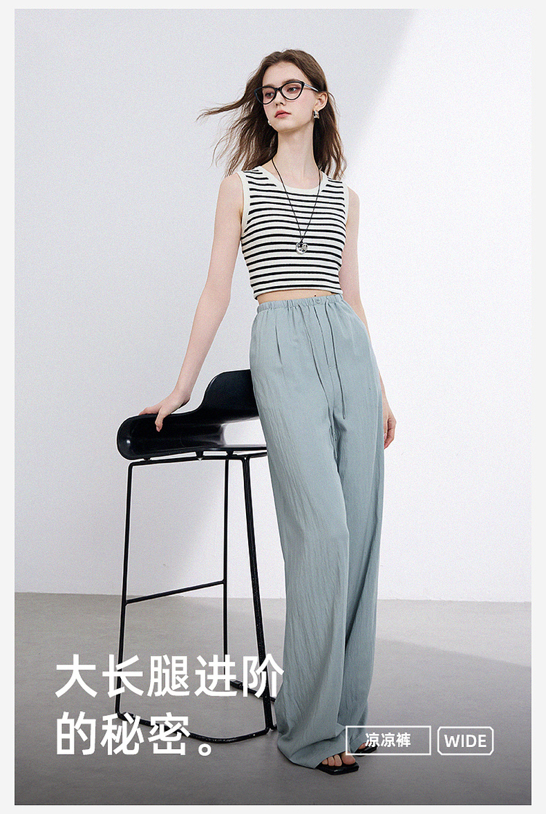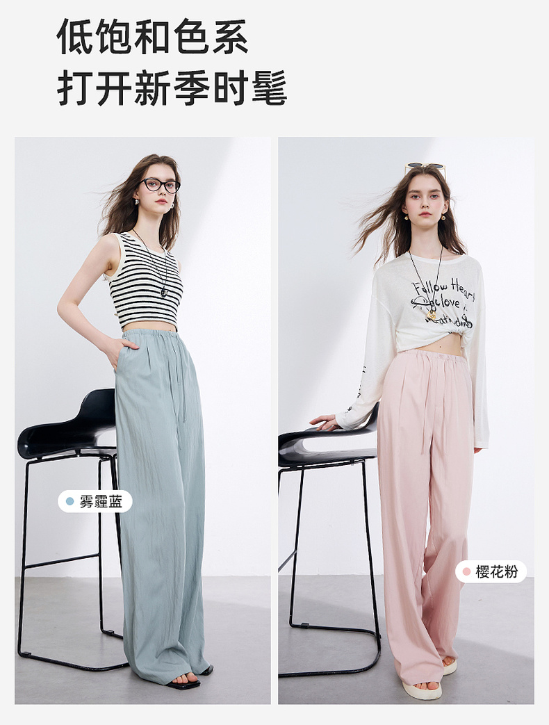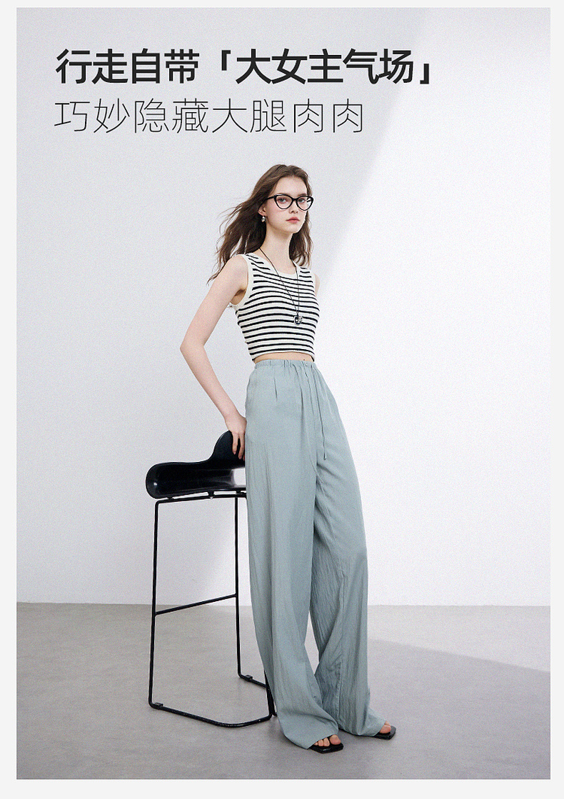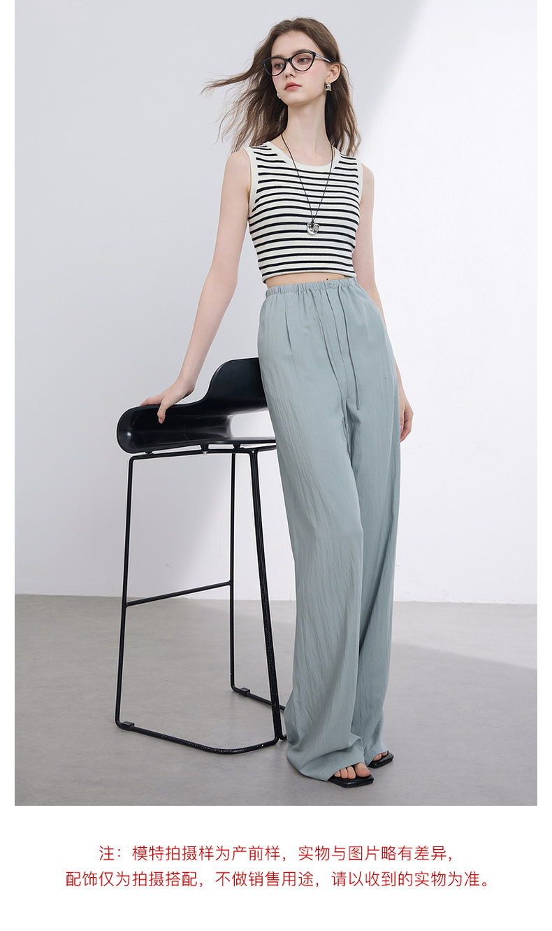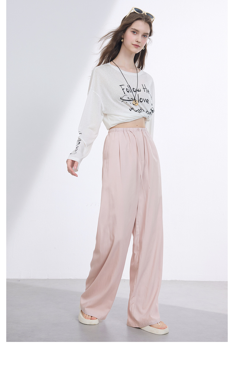 三彩2025夏季新款抽绳松紧腰长裤休闲裤轻薄宽松垂感阔腿裤M