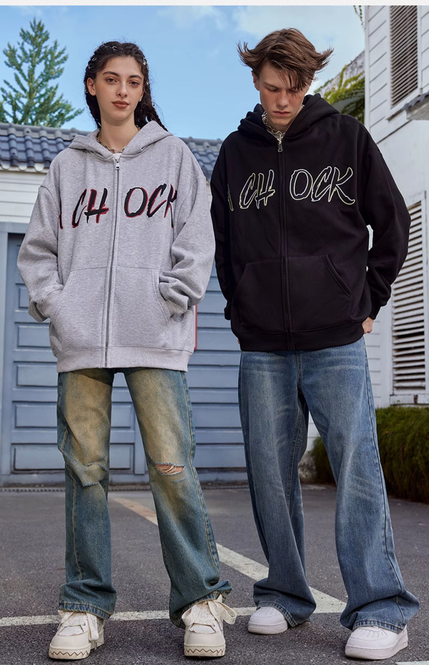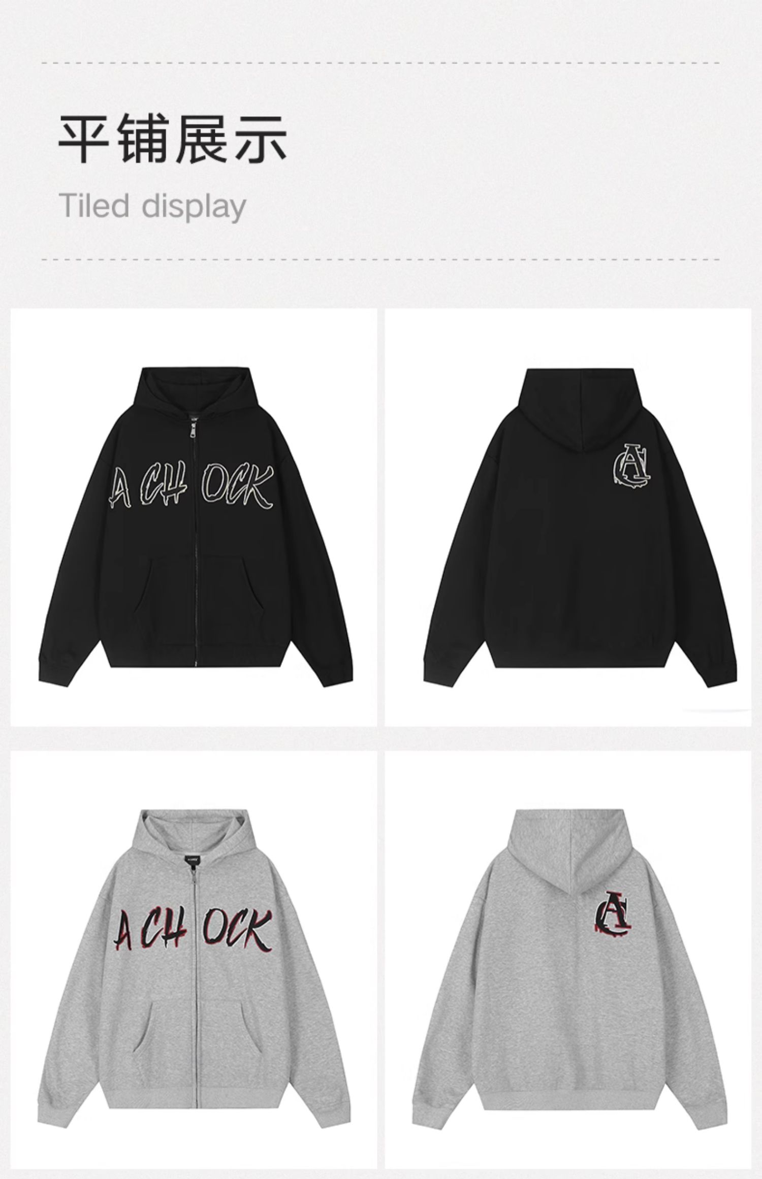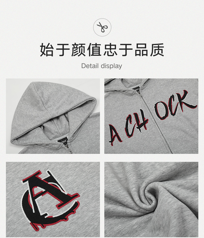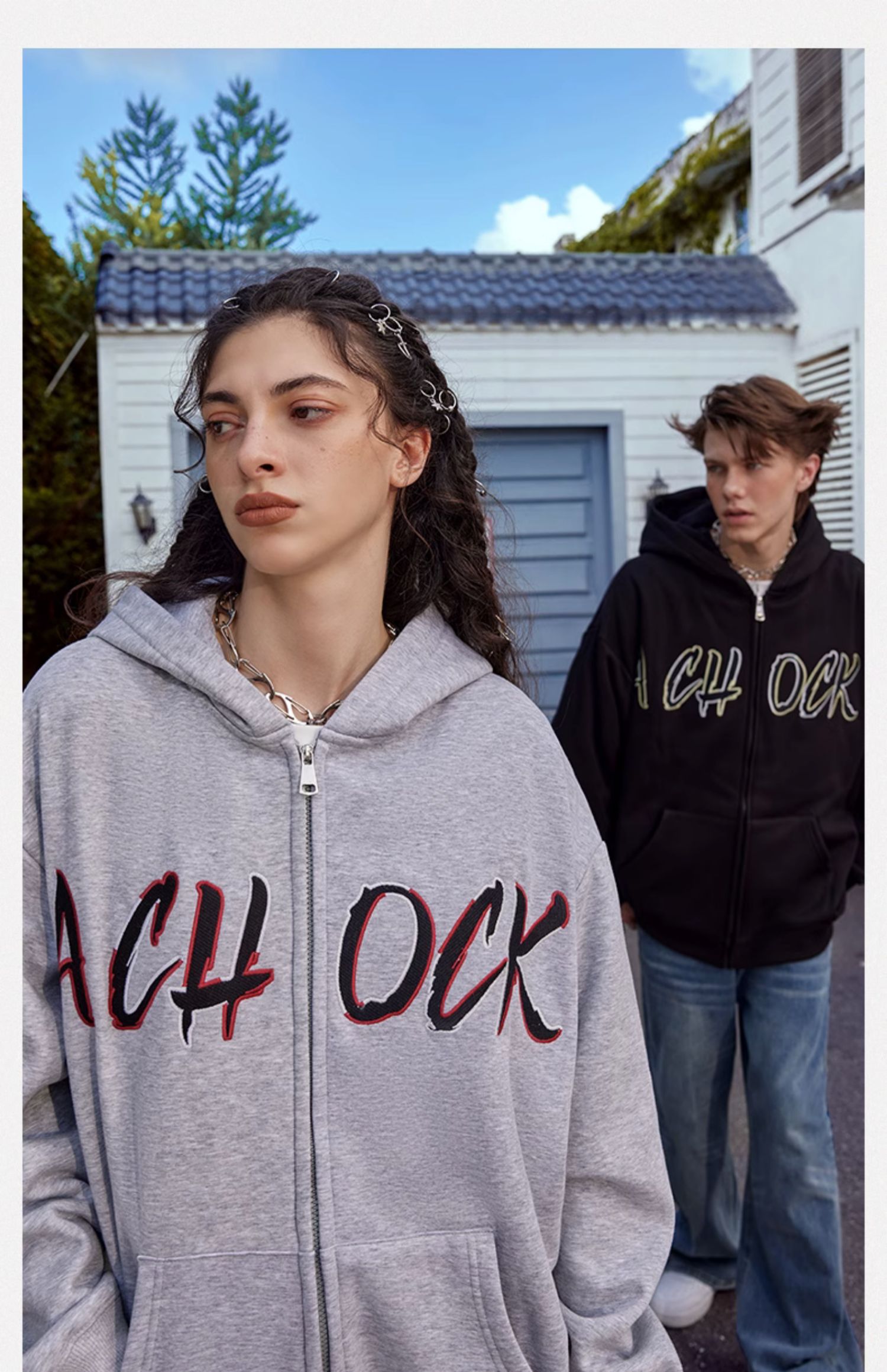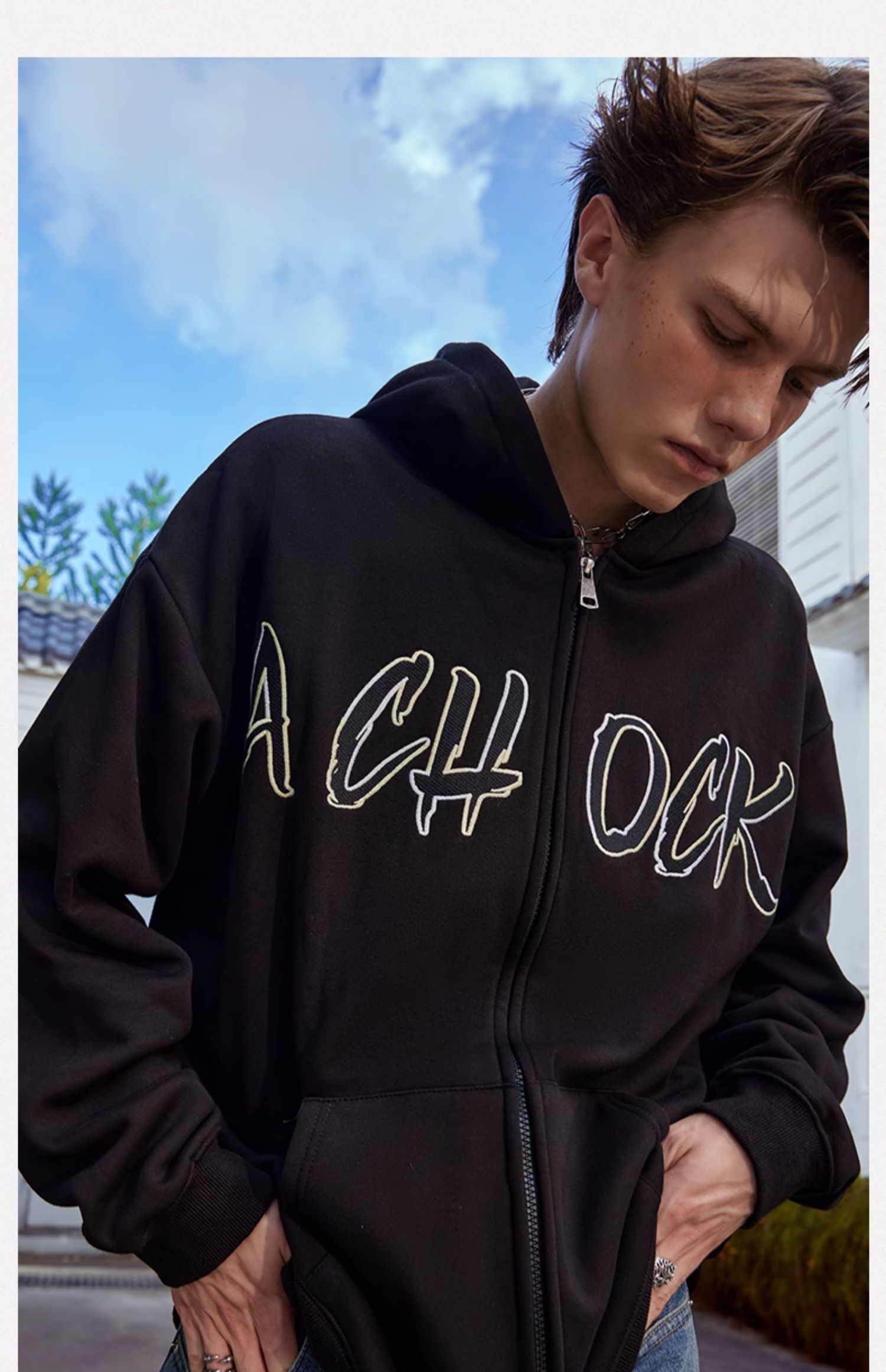 【Achock官方店】美式街头刺绣logo开衫外套国潮潮牌情侣连帽卫衣