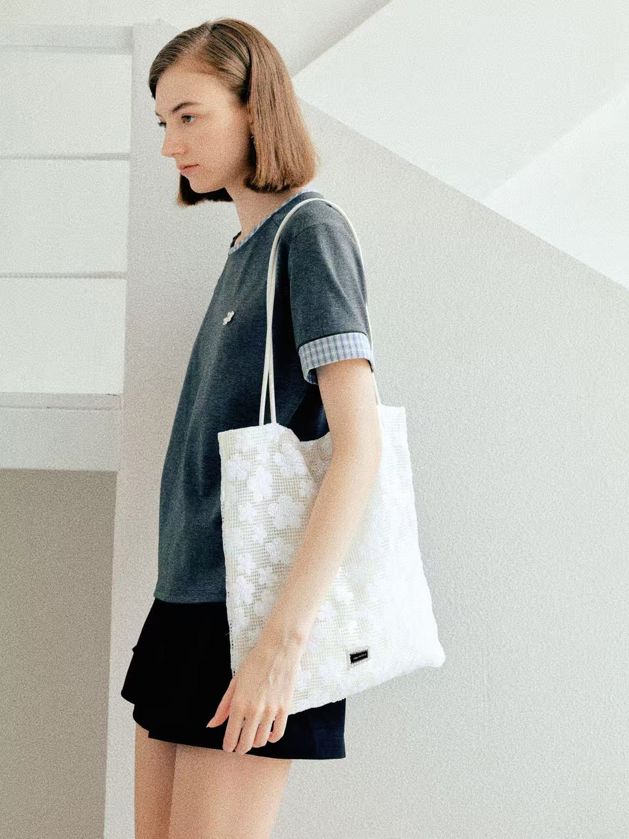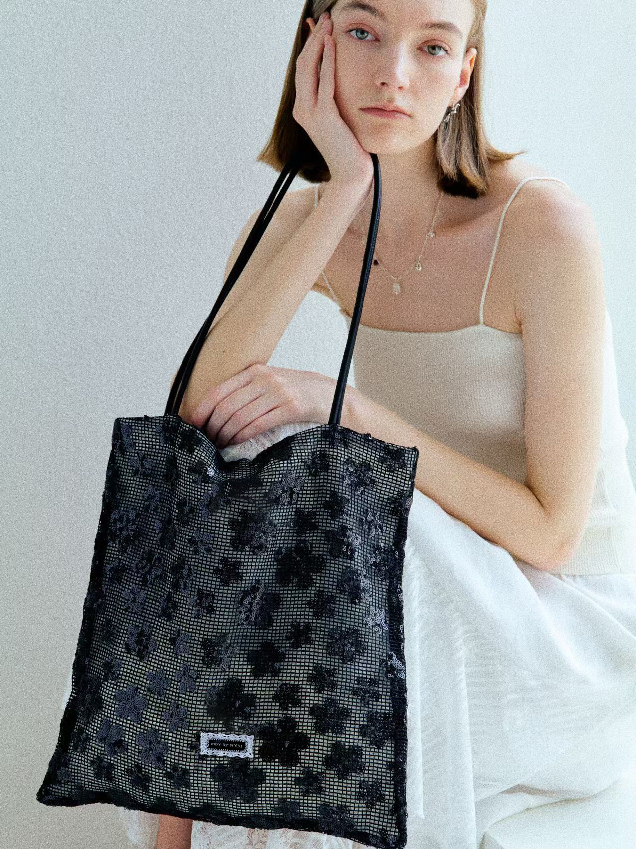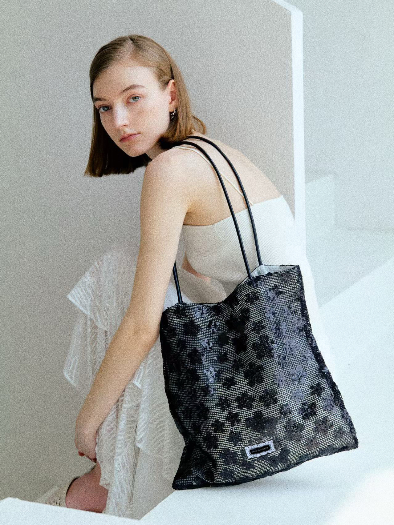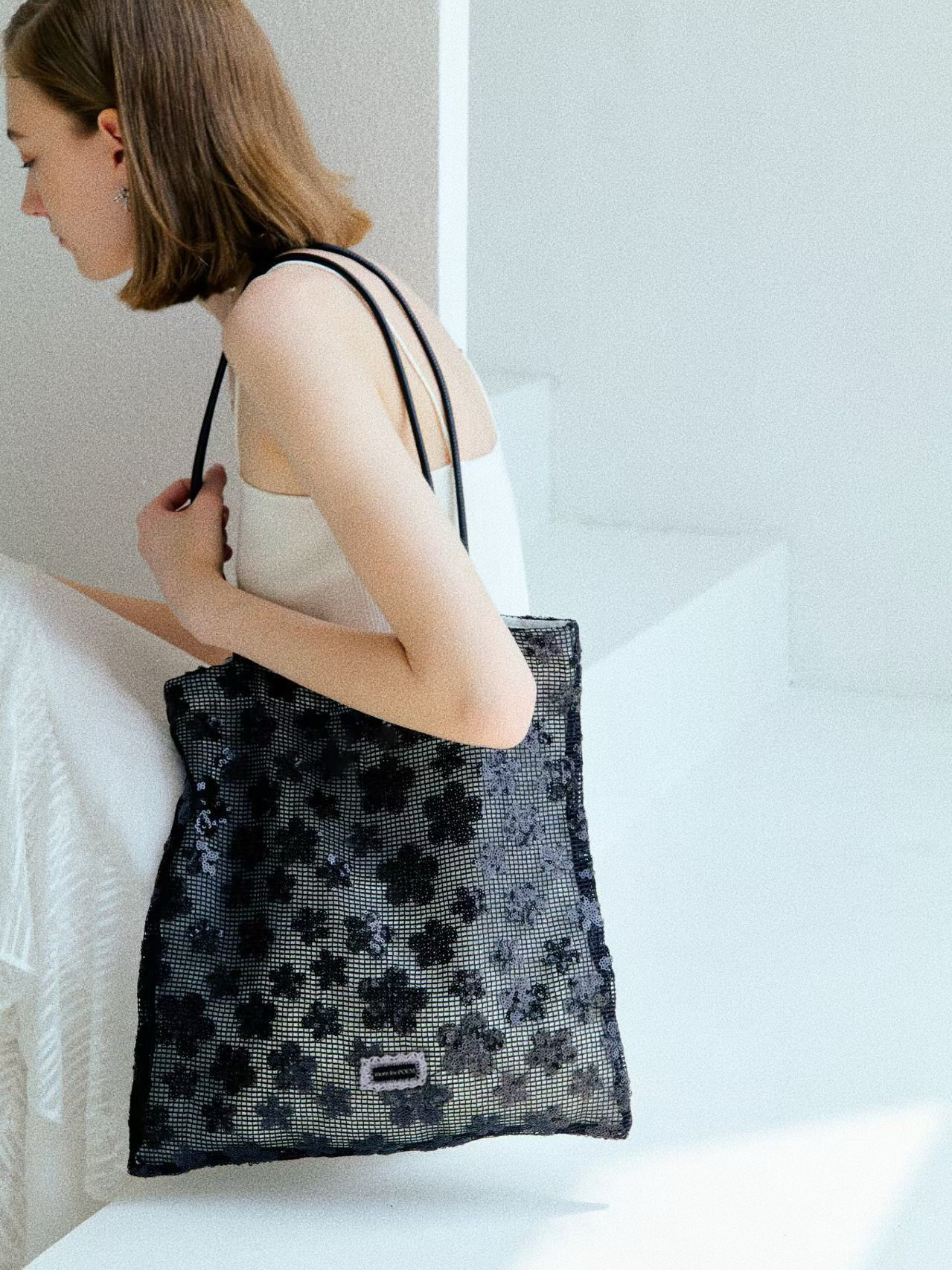 moreforPOEM 25/SS 原创设计「像素花园」珠片单肩包黑白亮片布袋