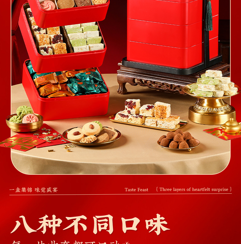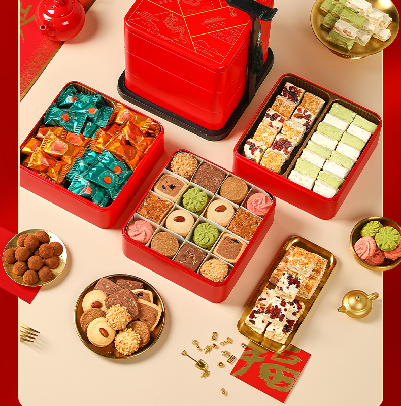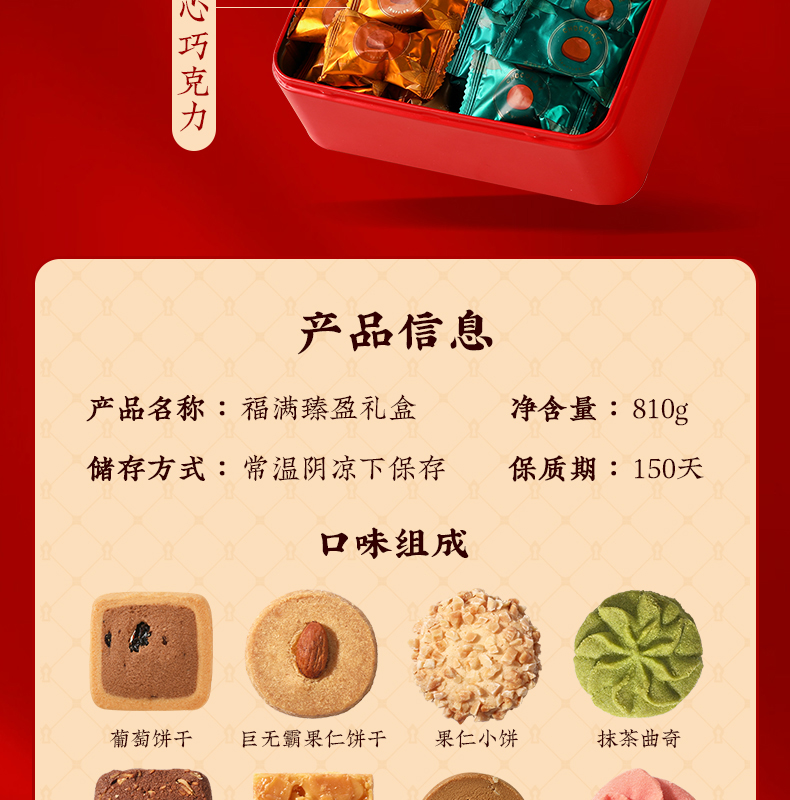 【福满臻盈礼盒】悠享时曲奇巧克力喜糖喜饼零食大礼包黄油饼干礼盒装年货礼品810g