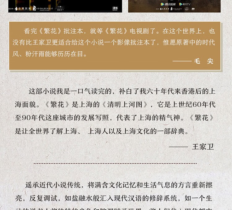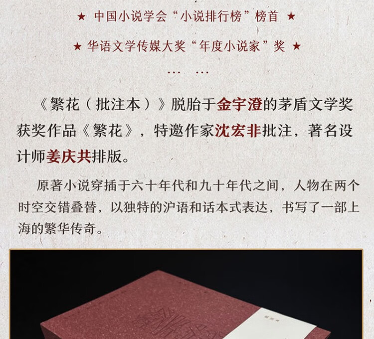 繁花 批注本 金宇澄 第九届茅盾文学奖获奖作品 独批注版本 王家卫导演 原著小说 中国当代小说