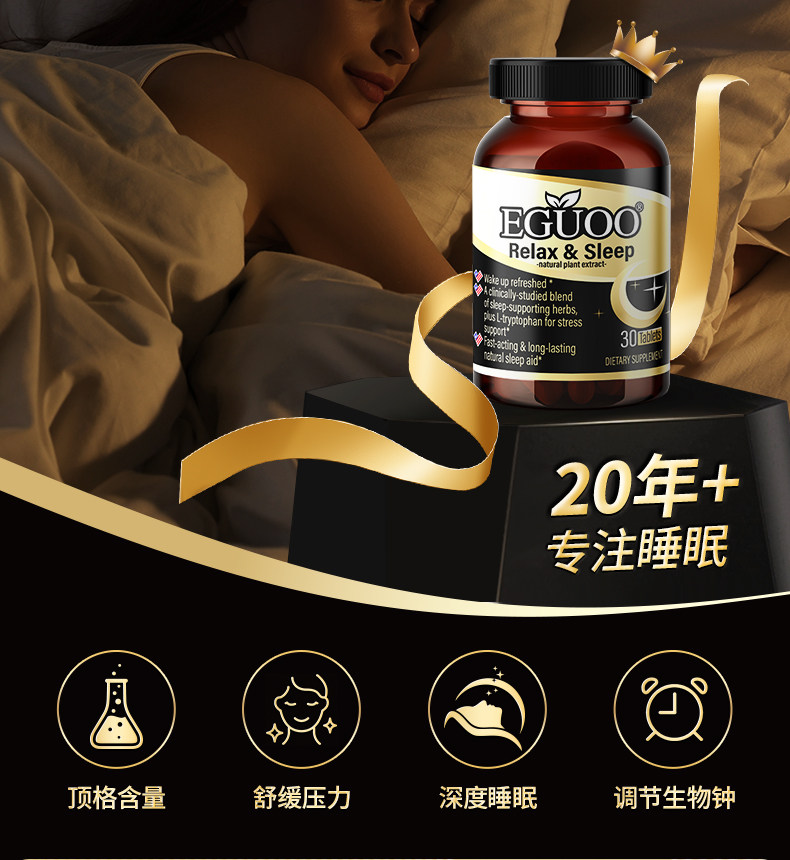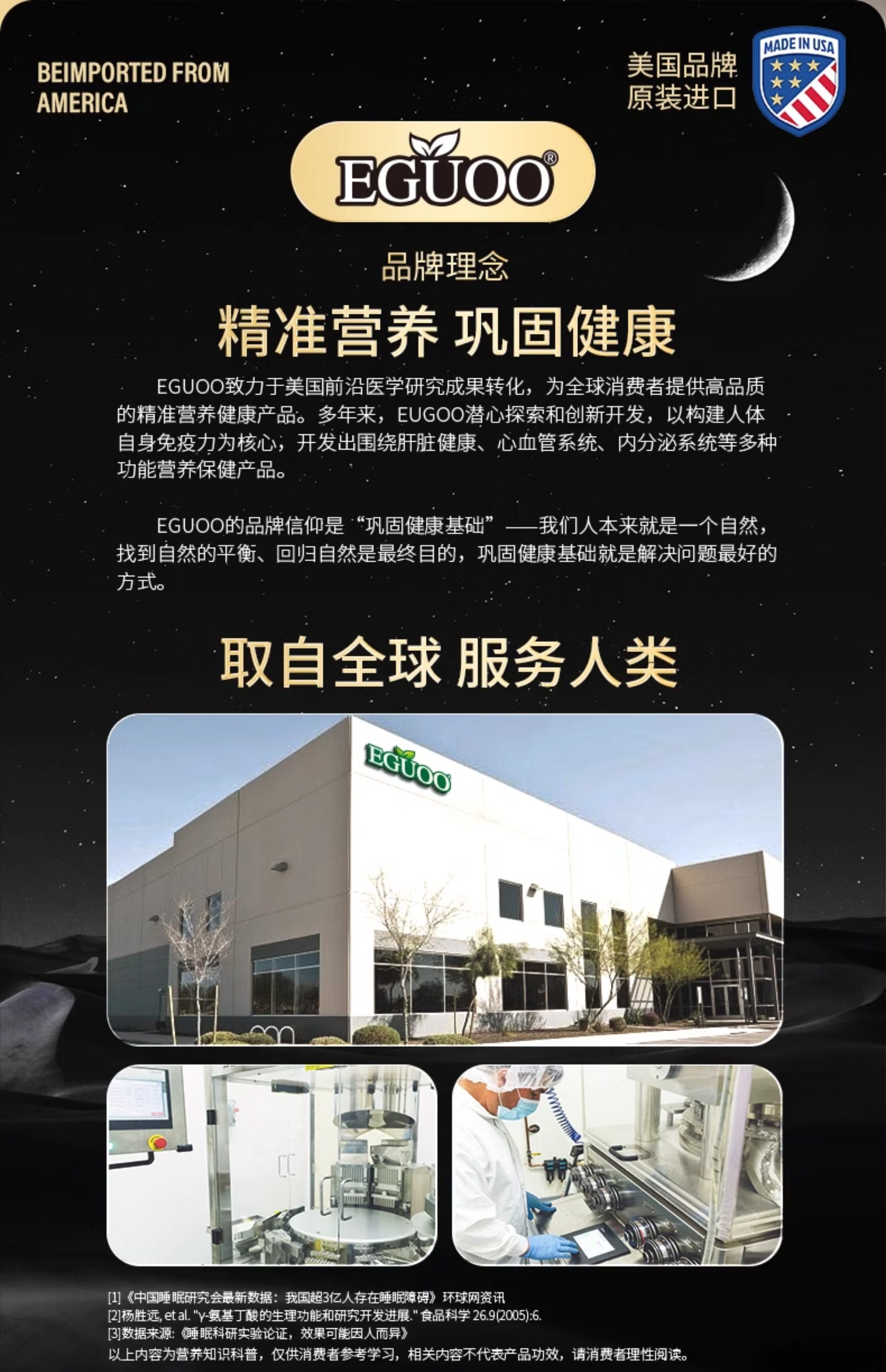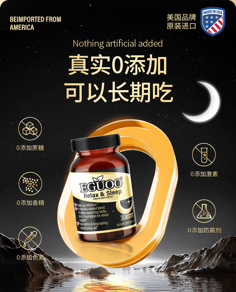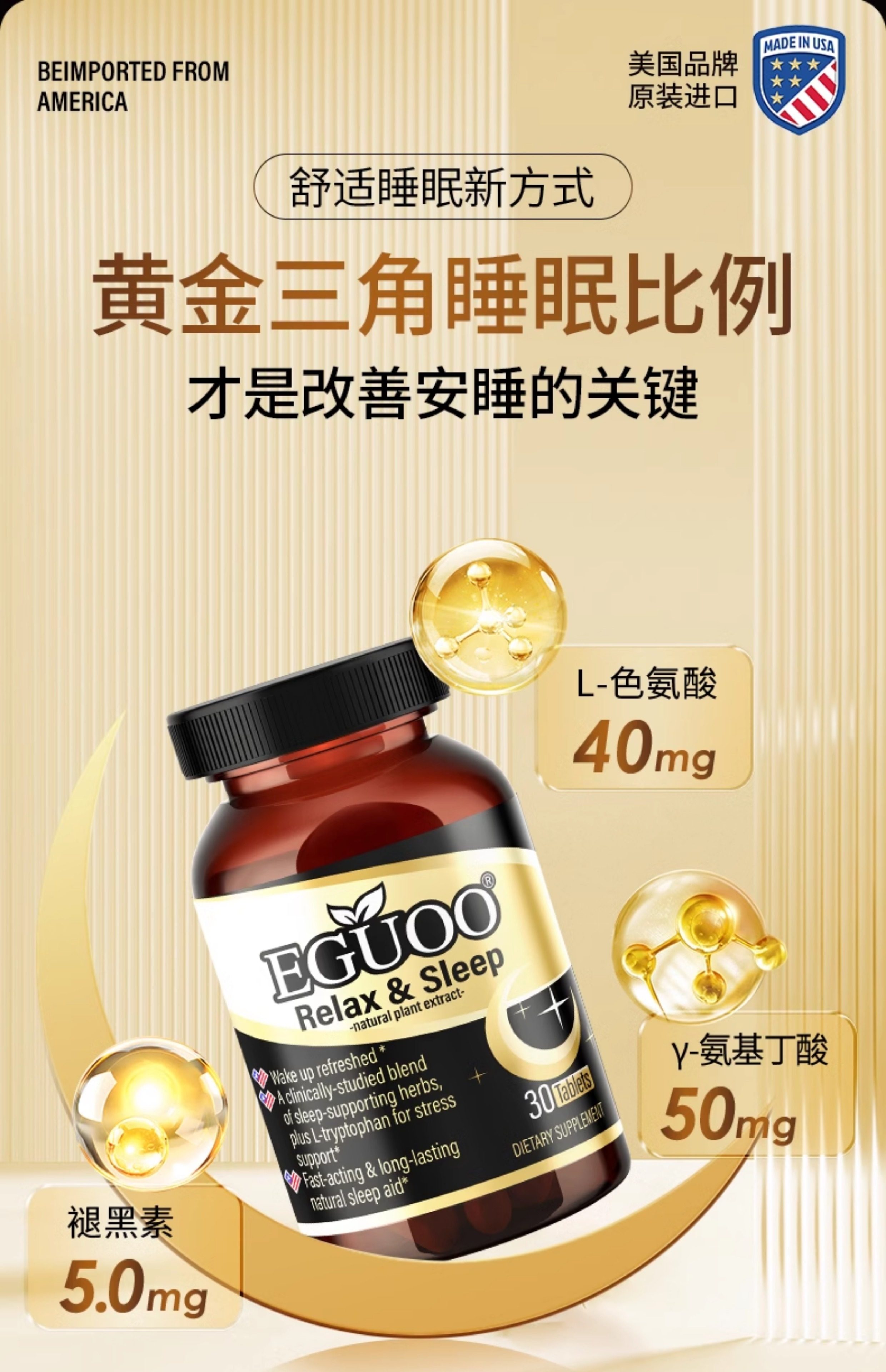美国原装进口EGUOO复合植物舒压安眠改善睡眠助睡眠gaba退褪黑素a