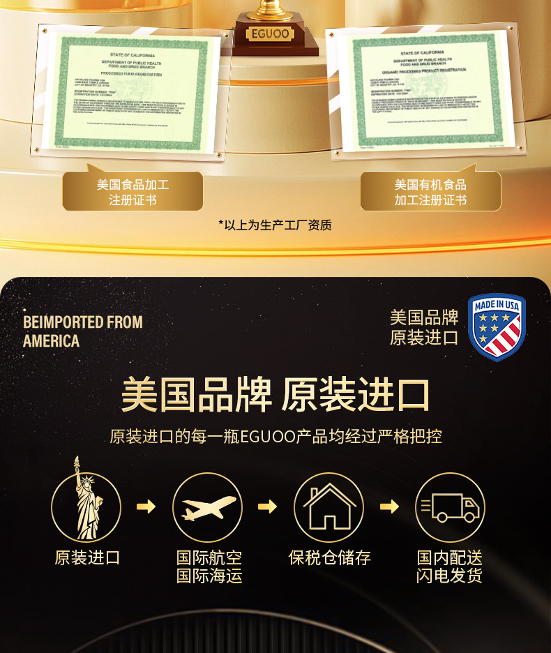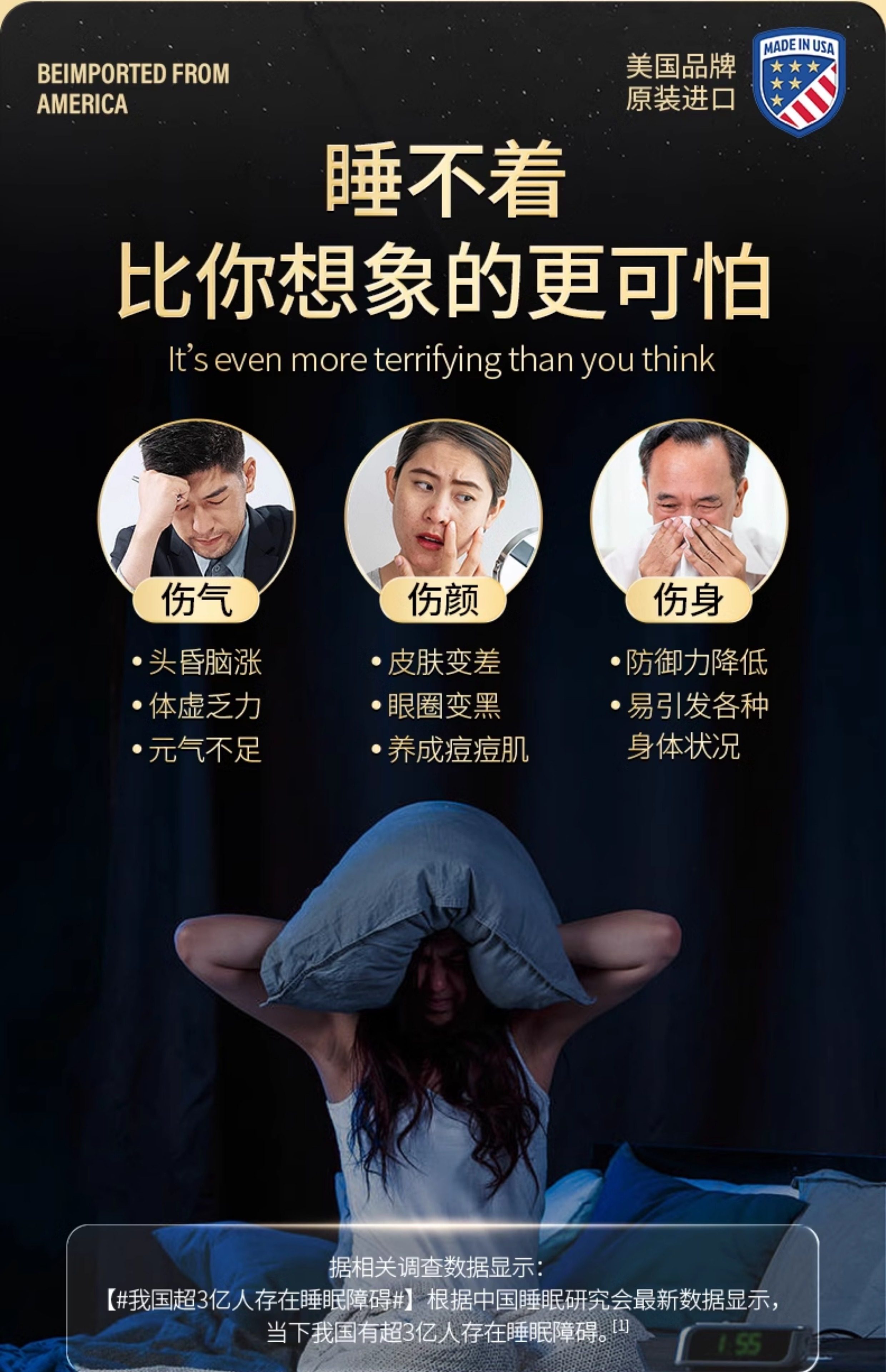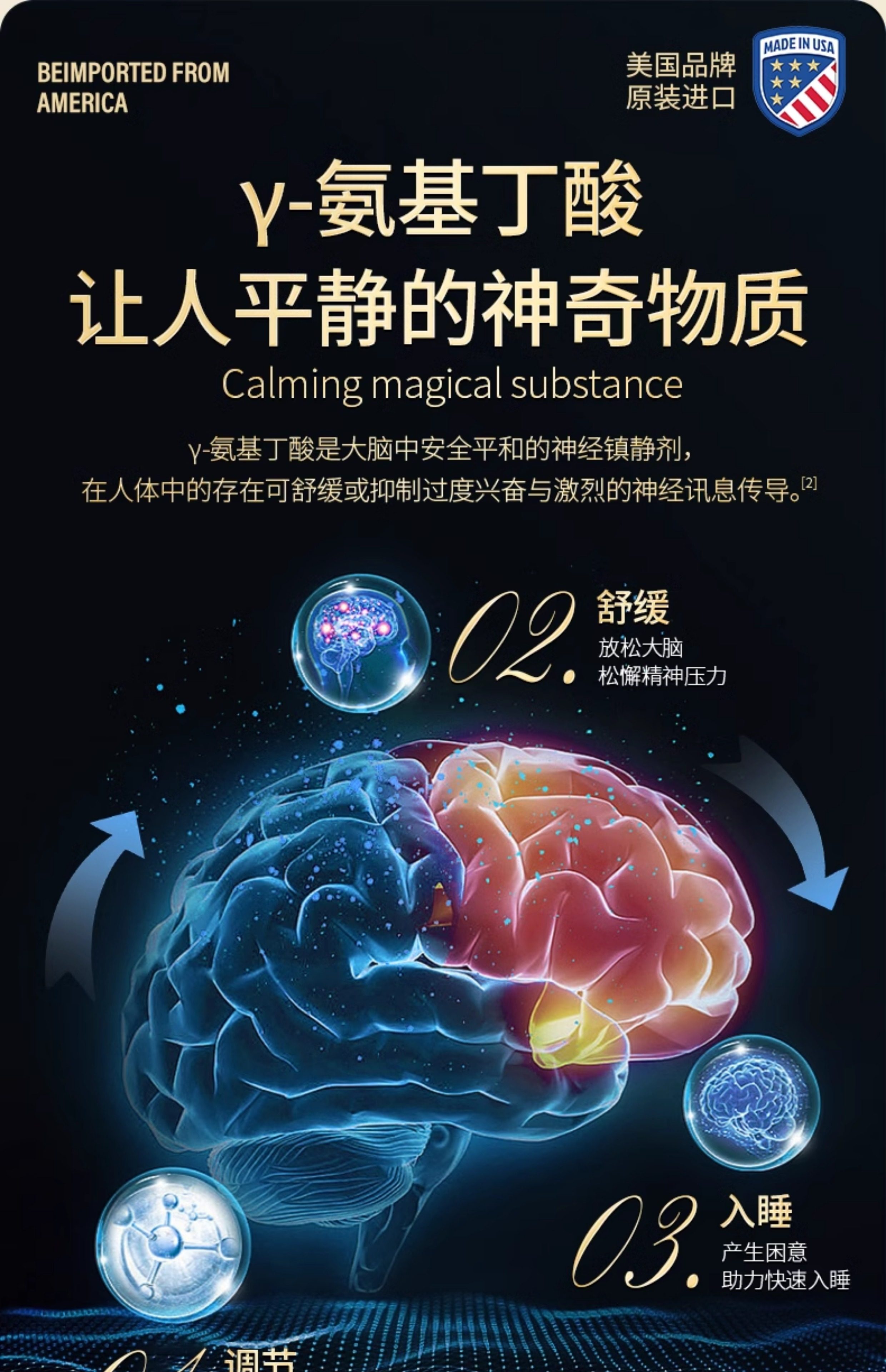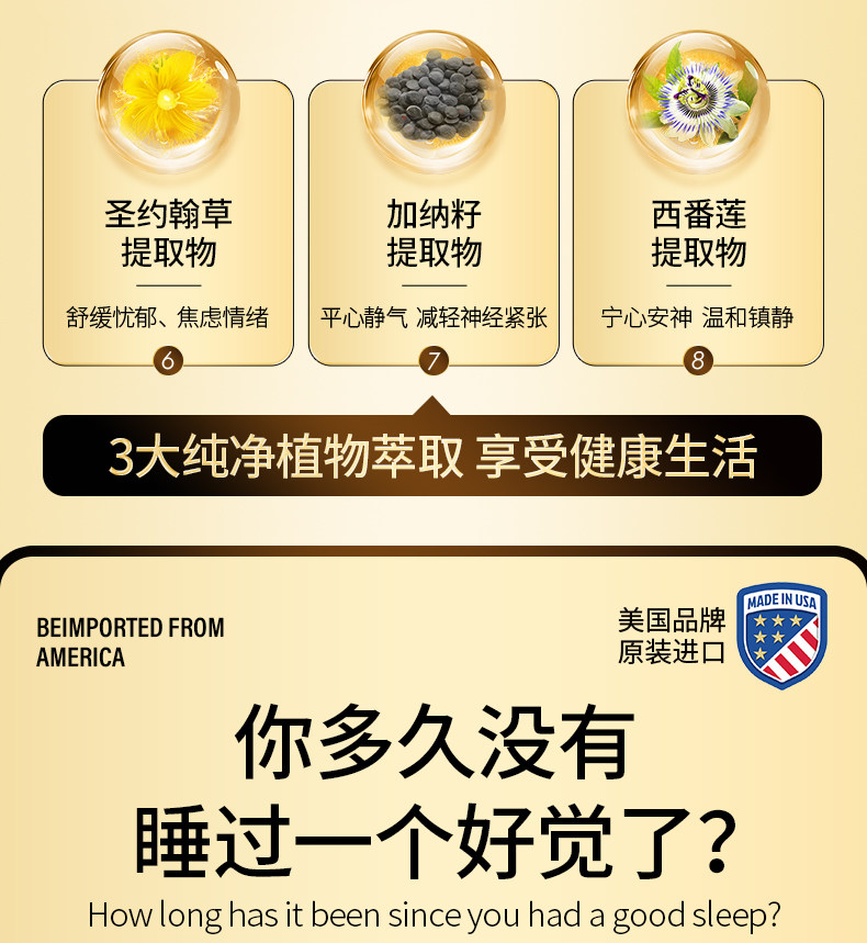 美国原装进口EGUOO复合植物舒压安眠改善睡眠助睡眠gaba退褪黑素a
