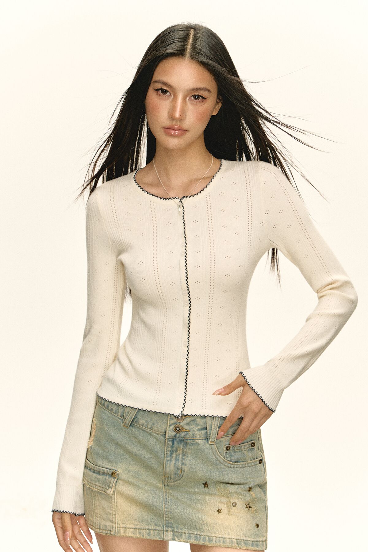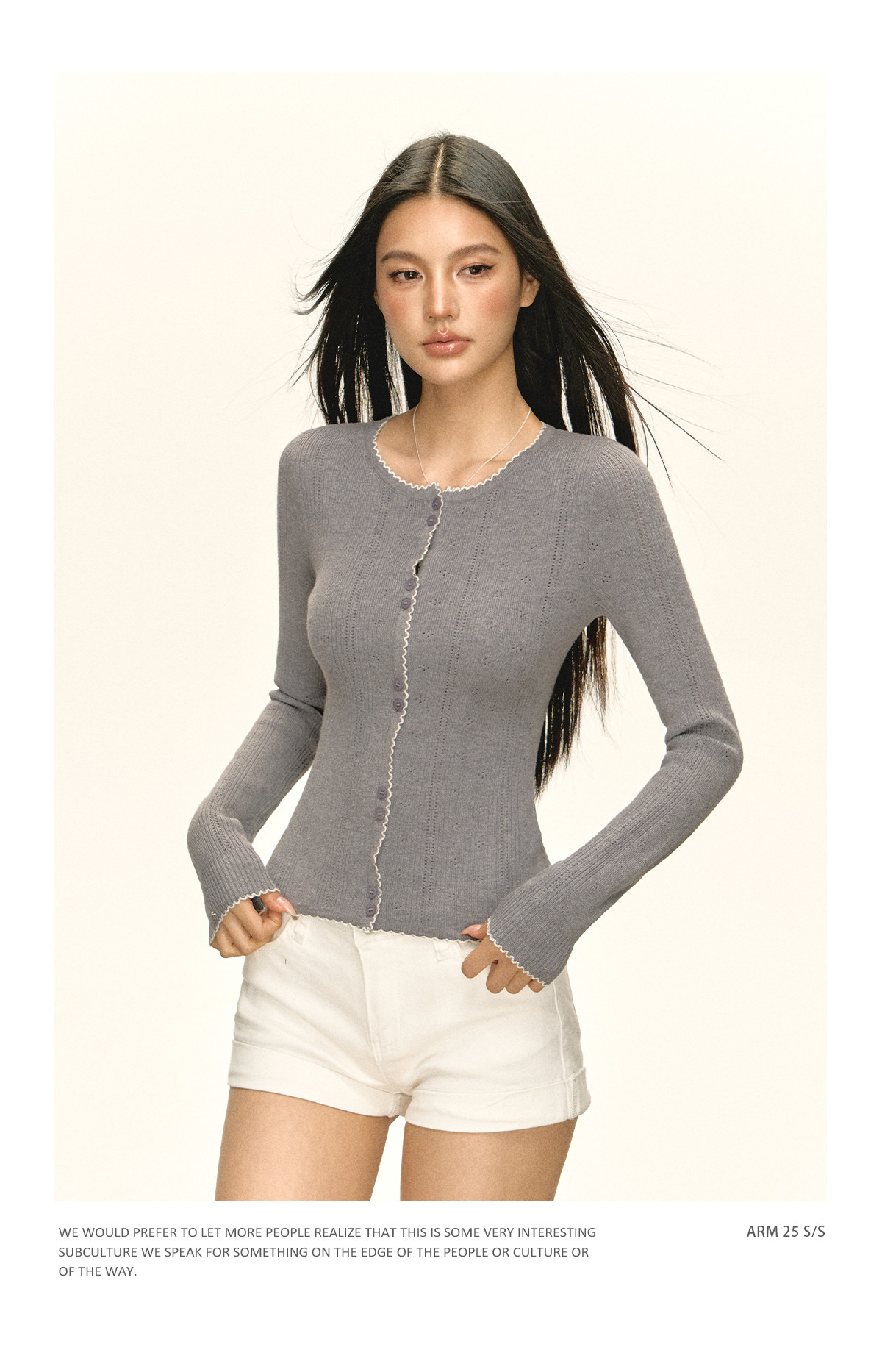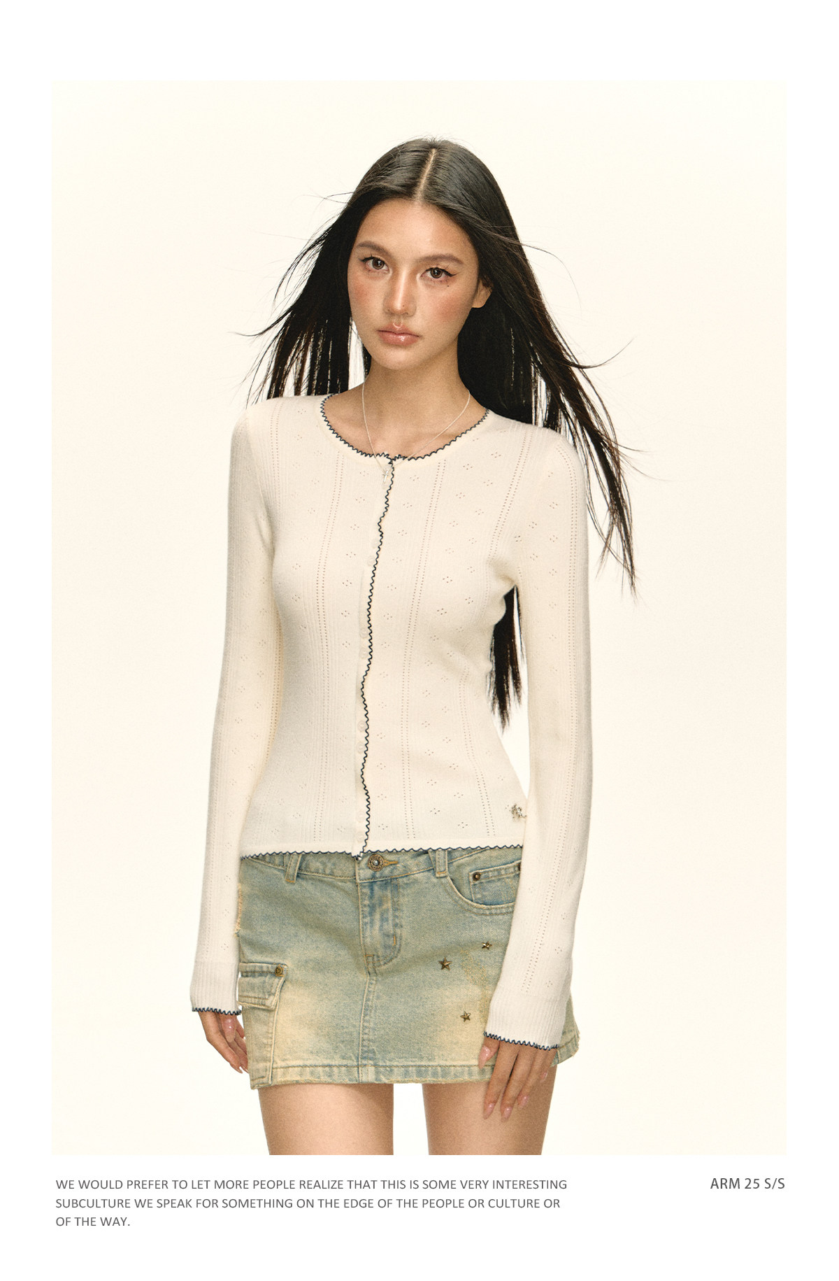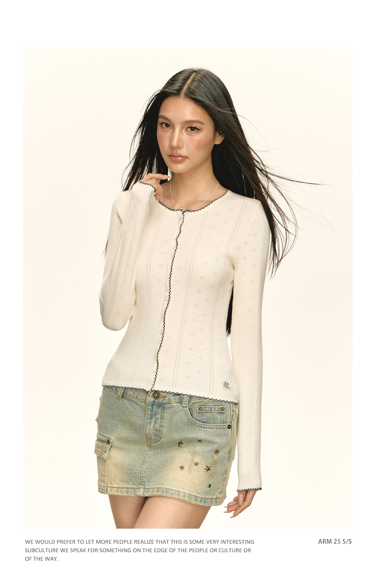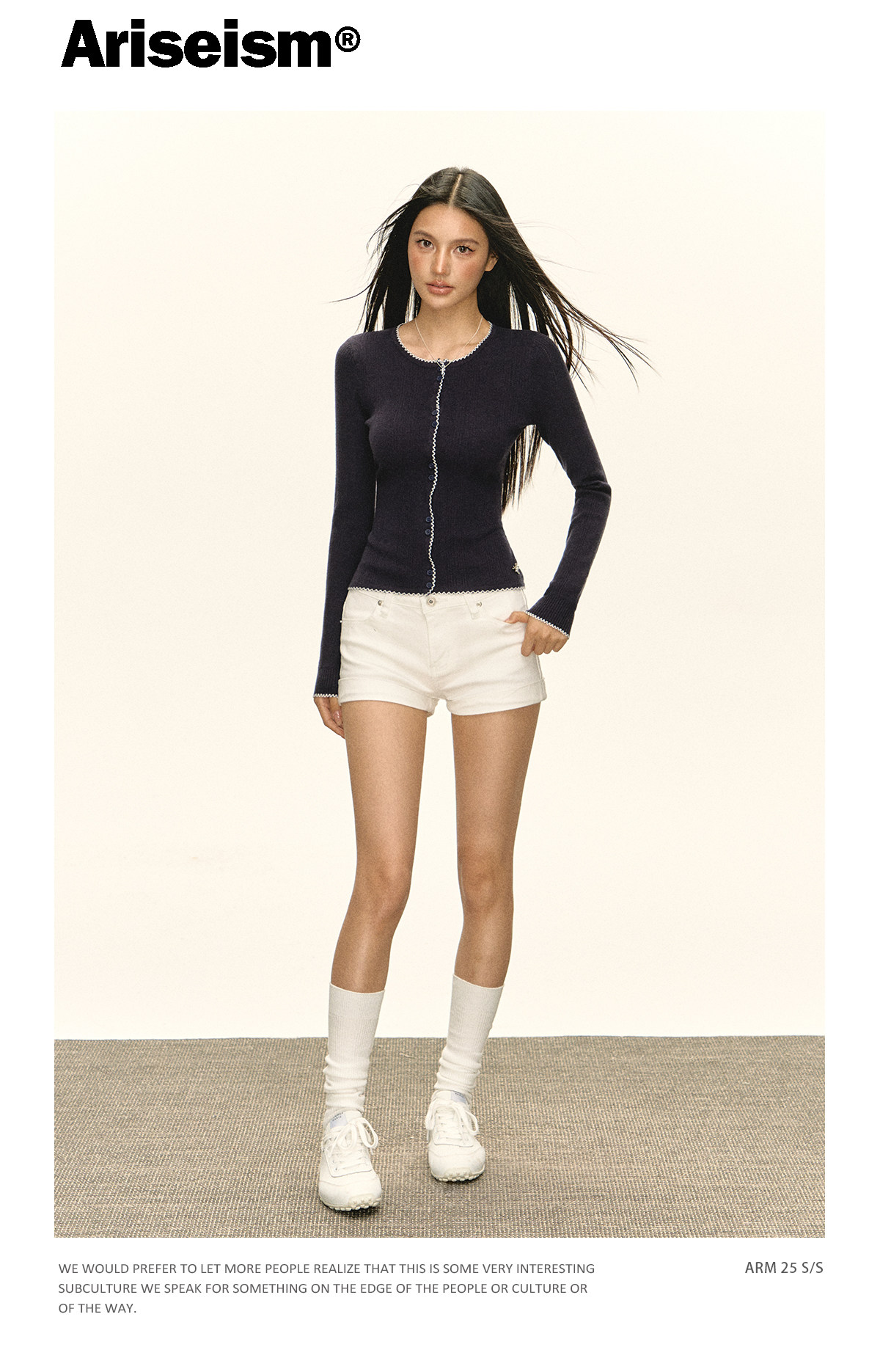 Ariseism 美式复古设计感圆领针织开衫女秋冬新款内搭修身上衣