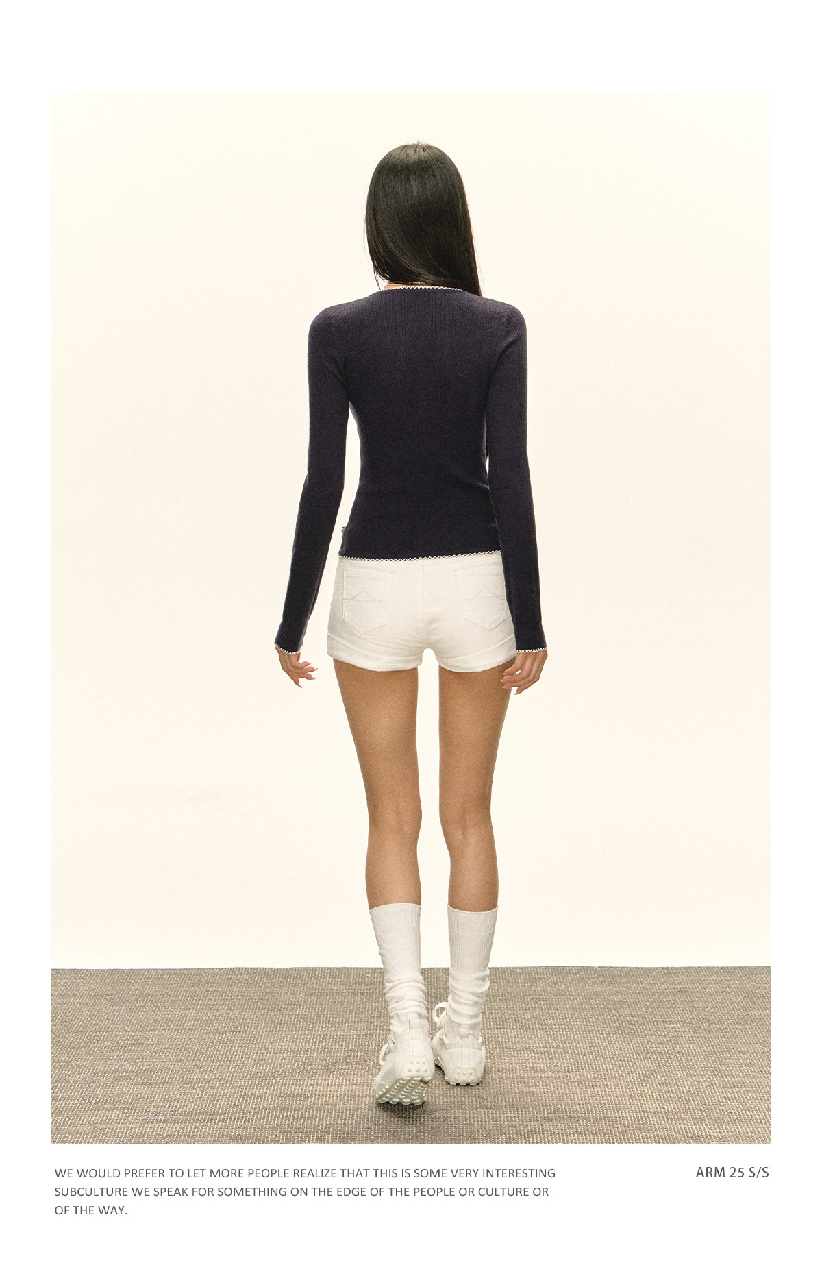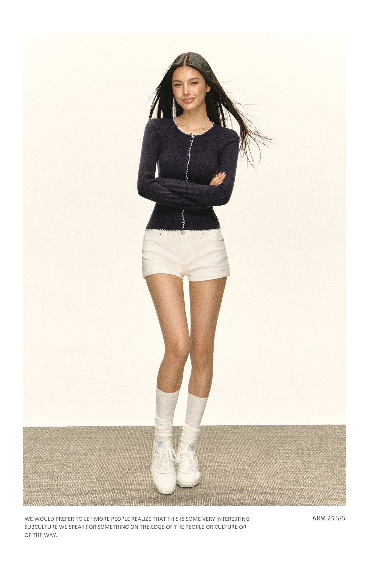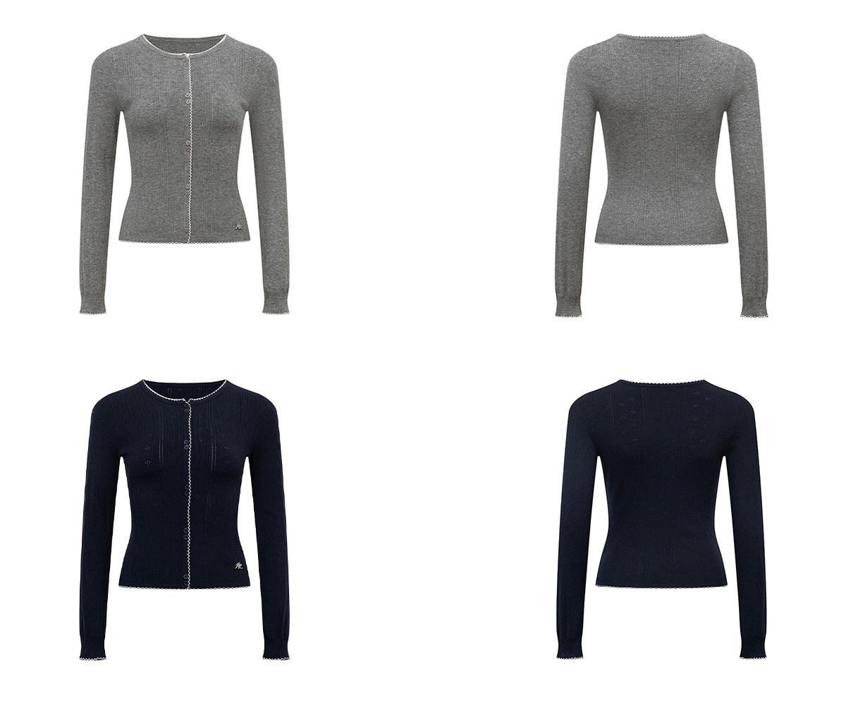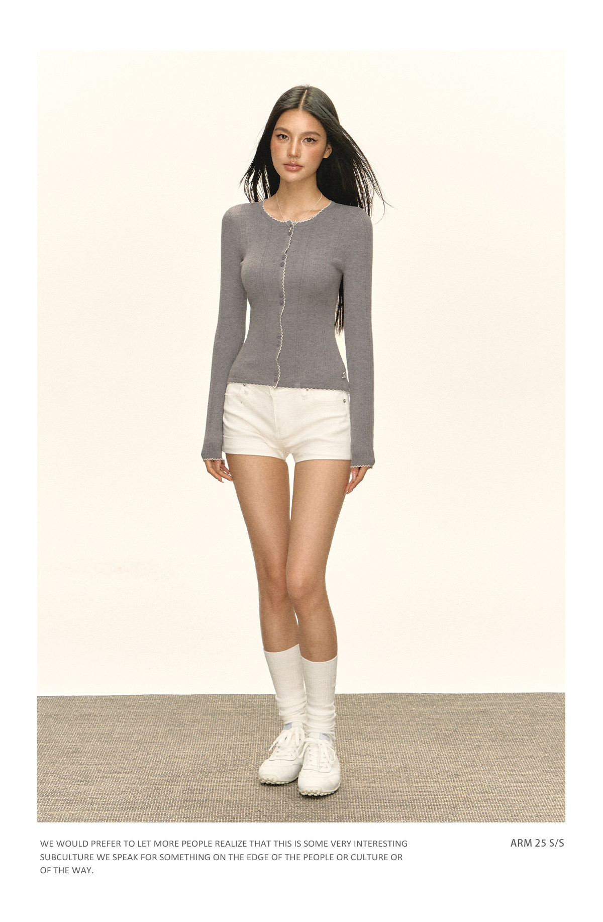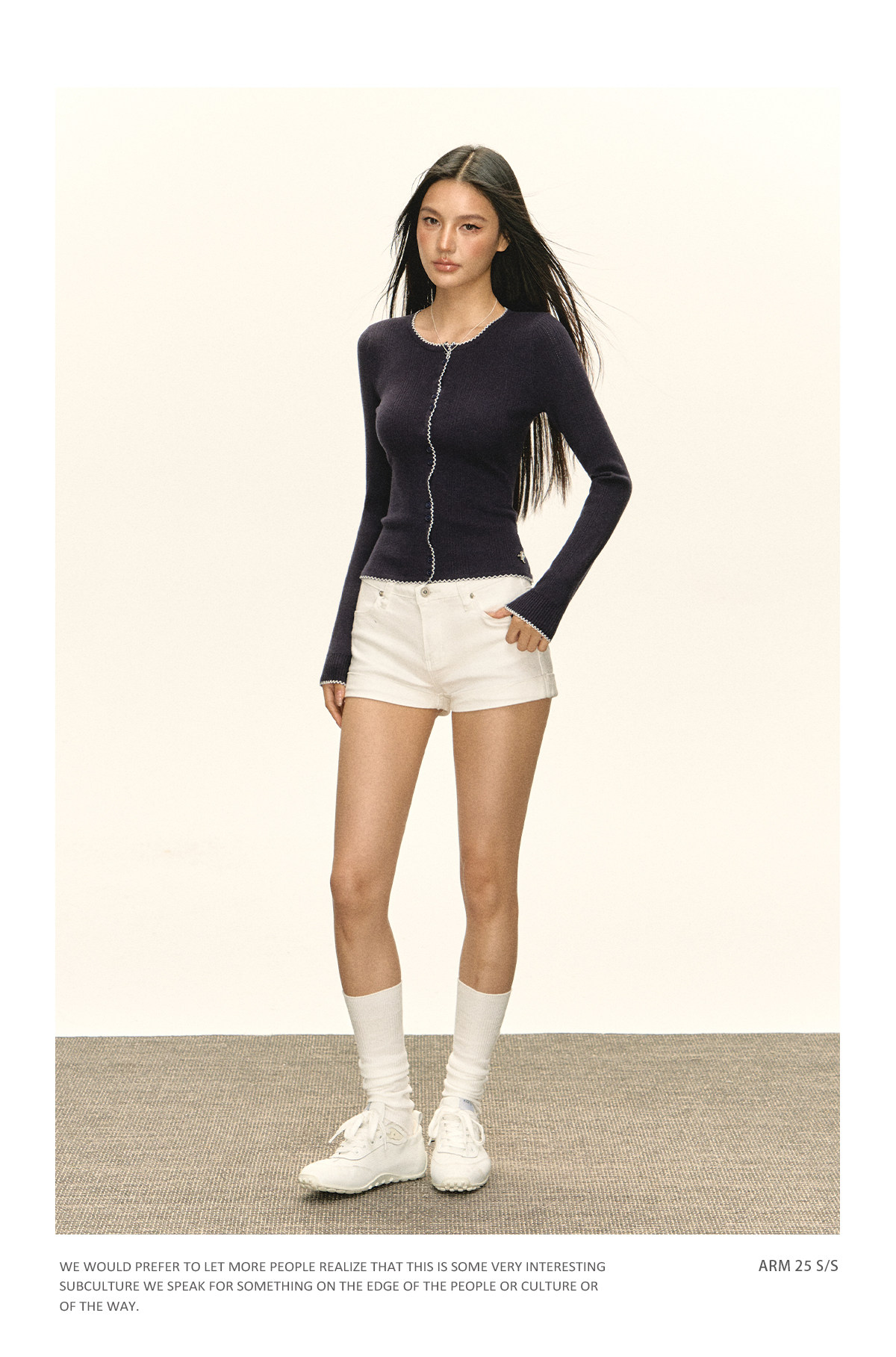 Ariseism 美式复古设计感圆领针织开衫女秋冬新款内搭修身上衣