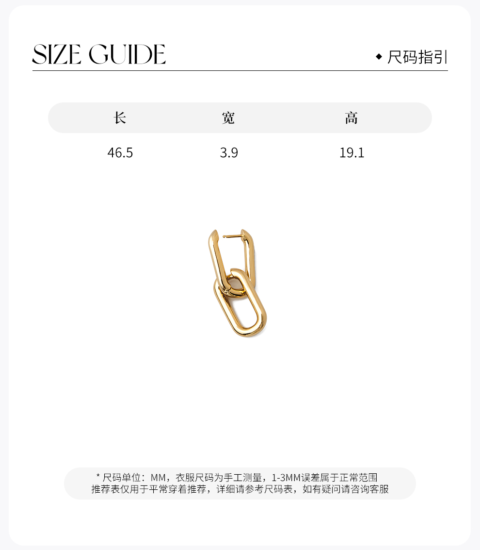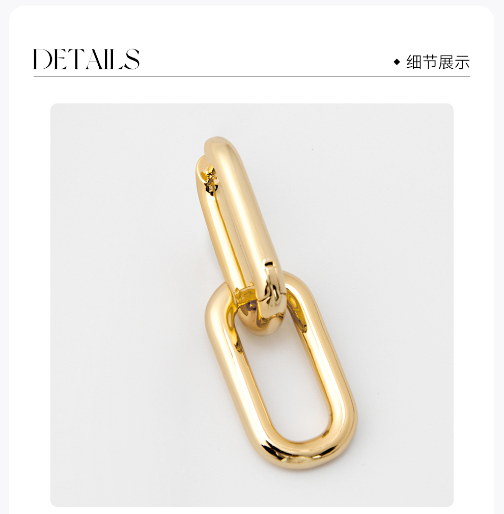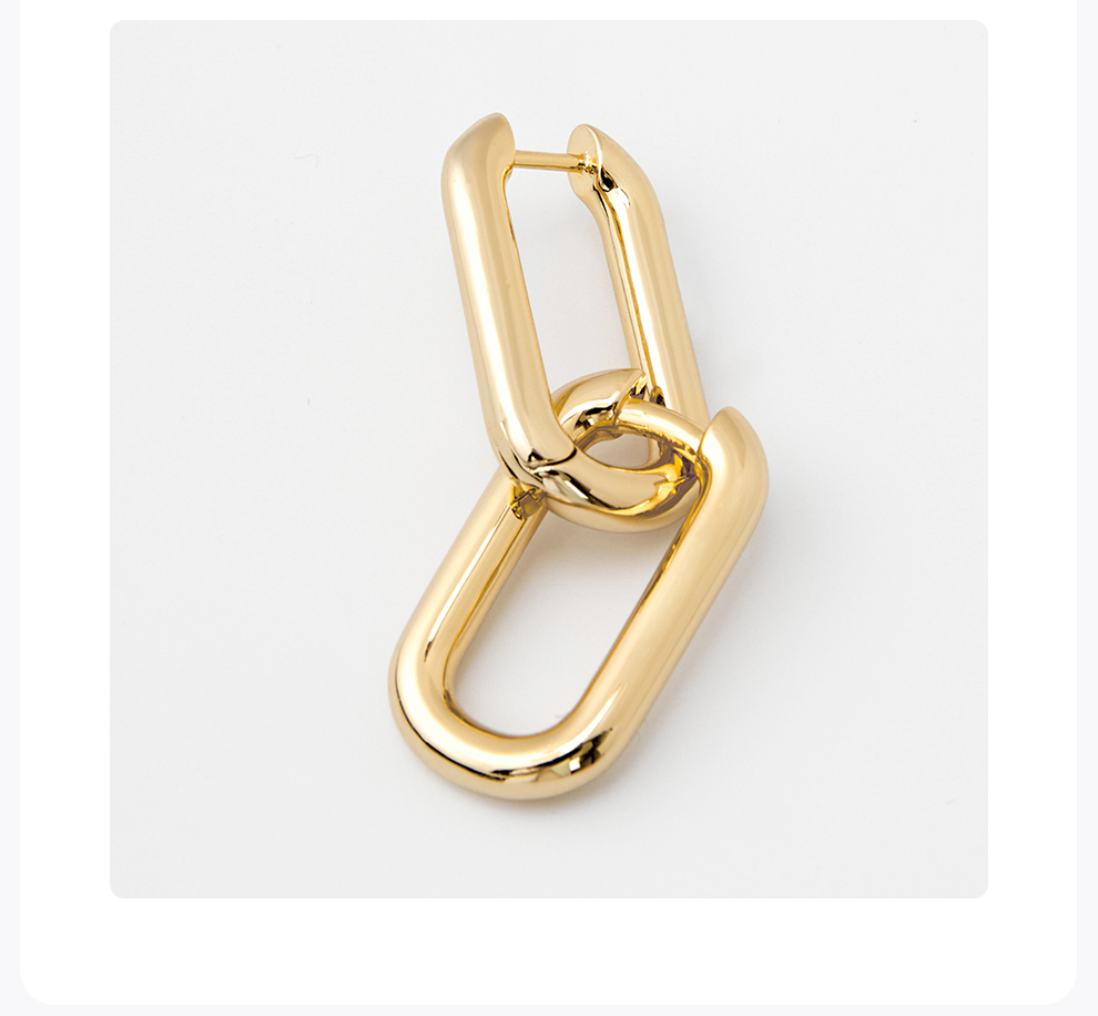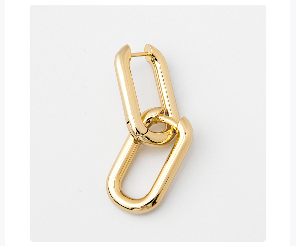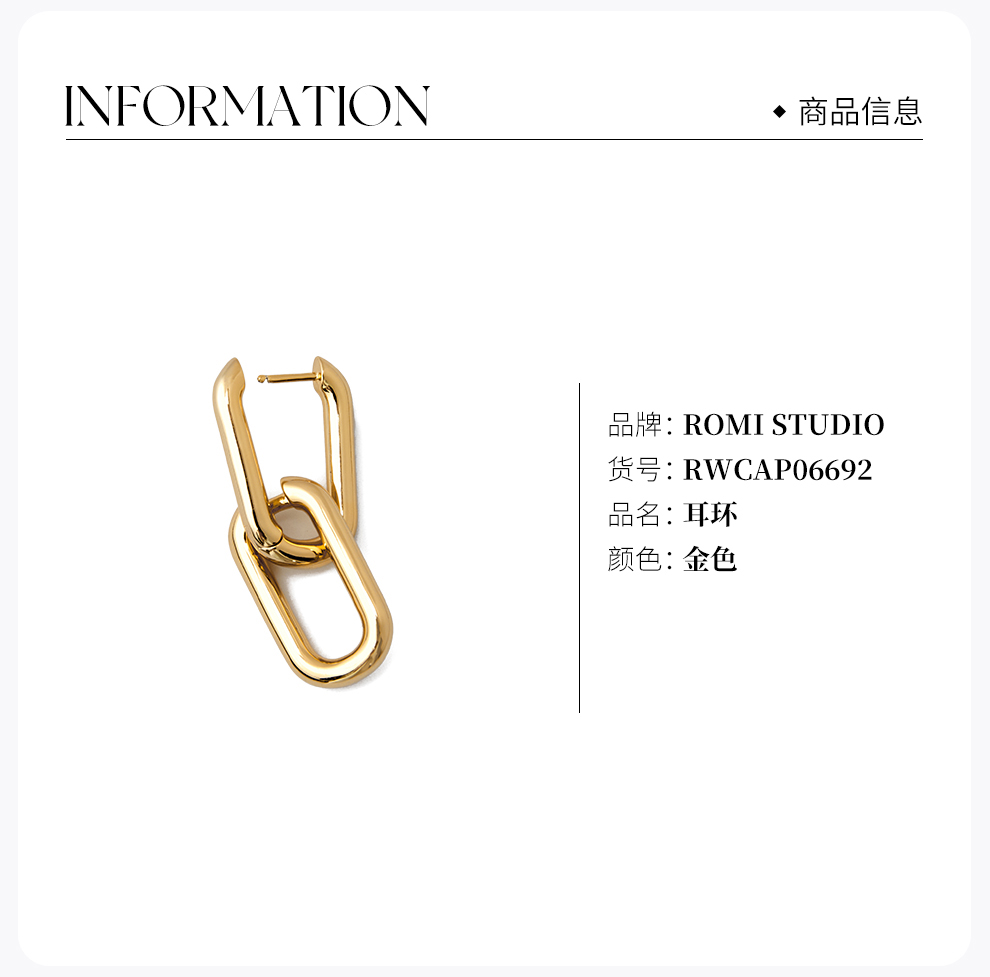 ROMI STUDIO 铜合金耳饰 金色双环耳饰椭圆形复古耳环RWCAP06692