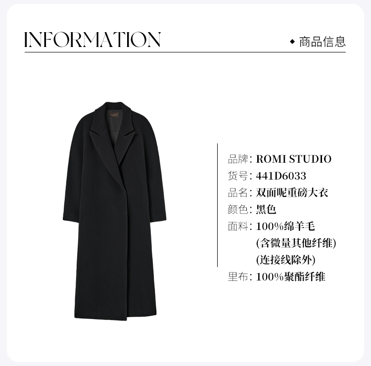 ROMI STUDIO“棕标甄选”100绵羊毛双面呢高克重毛呢大衣 441D6033