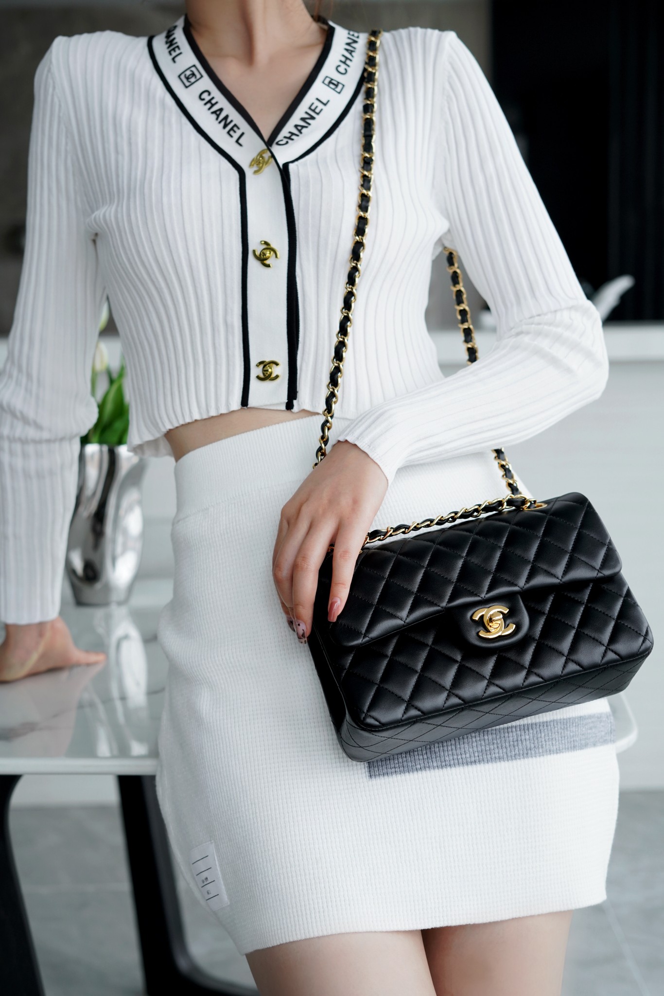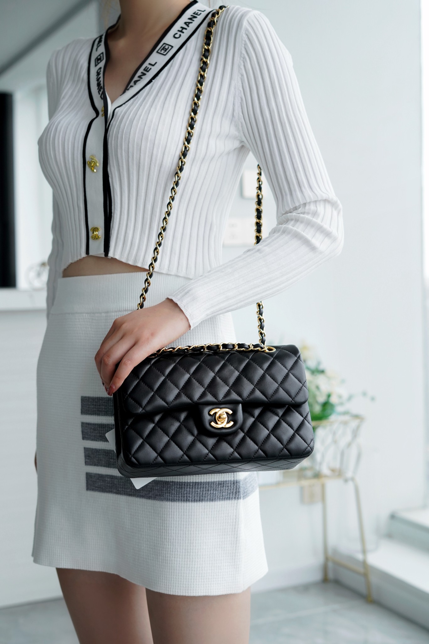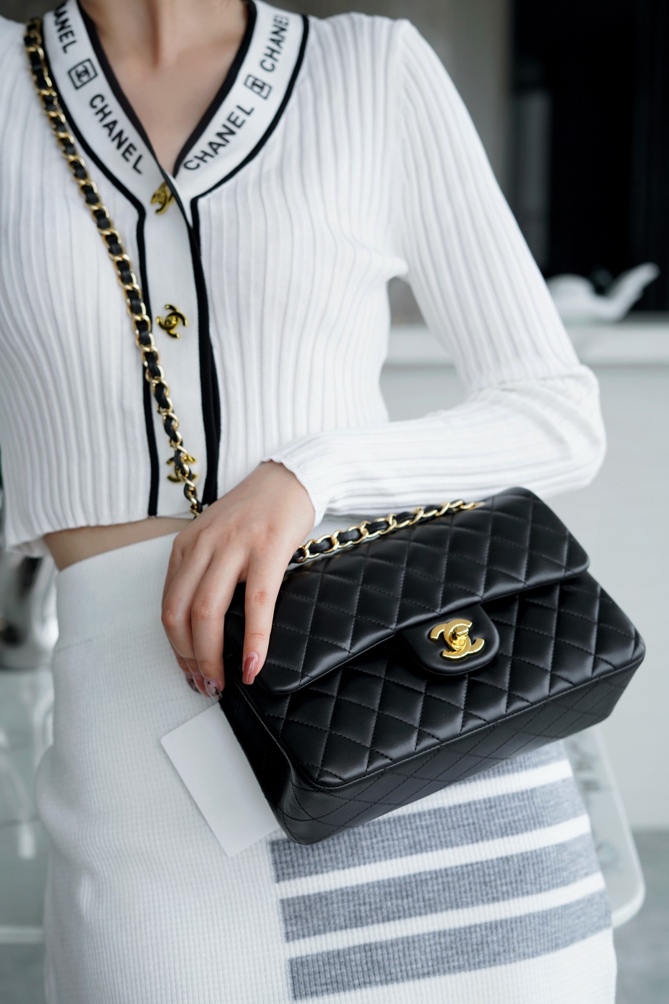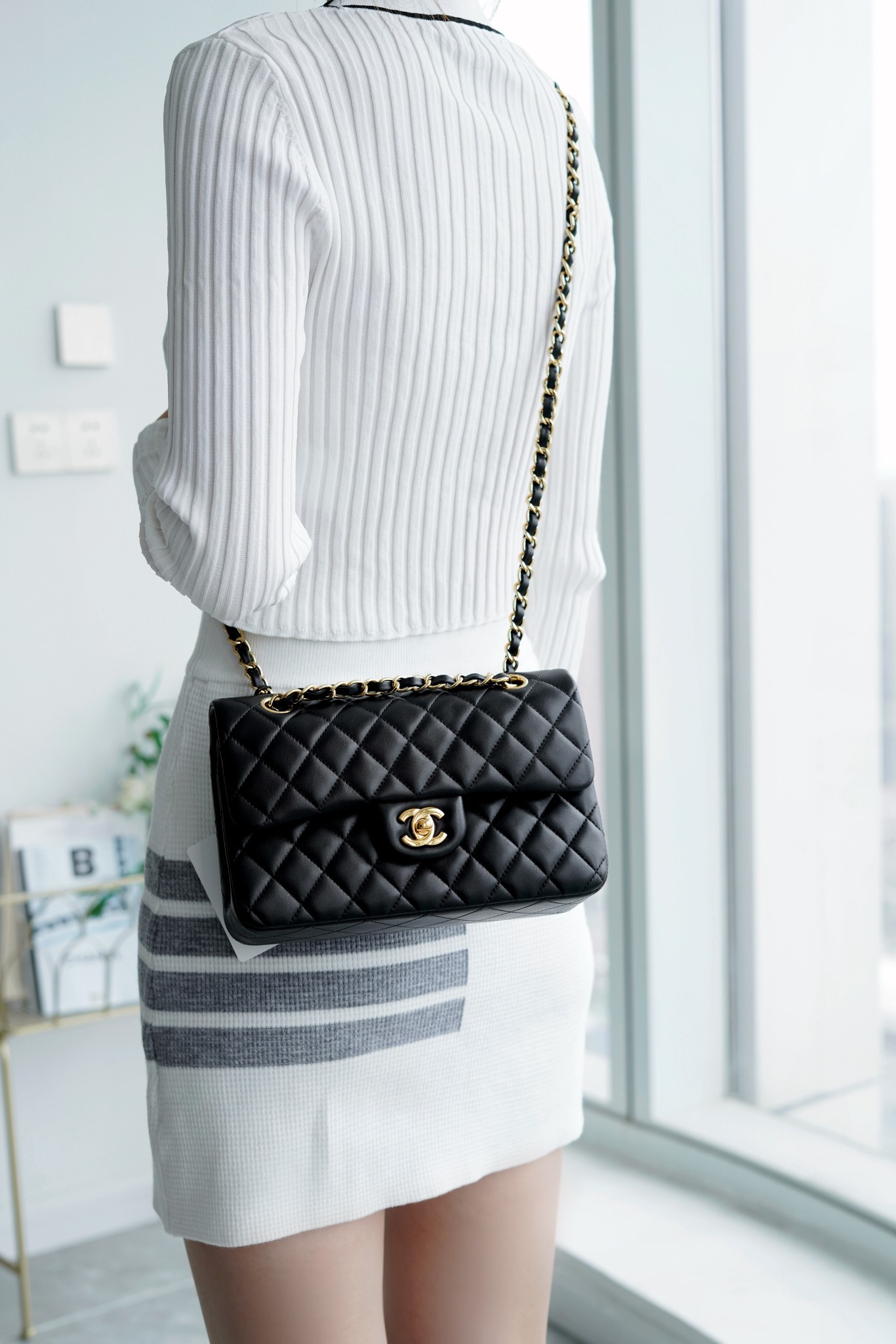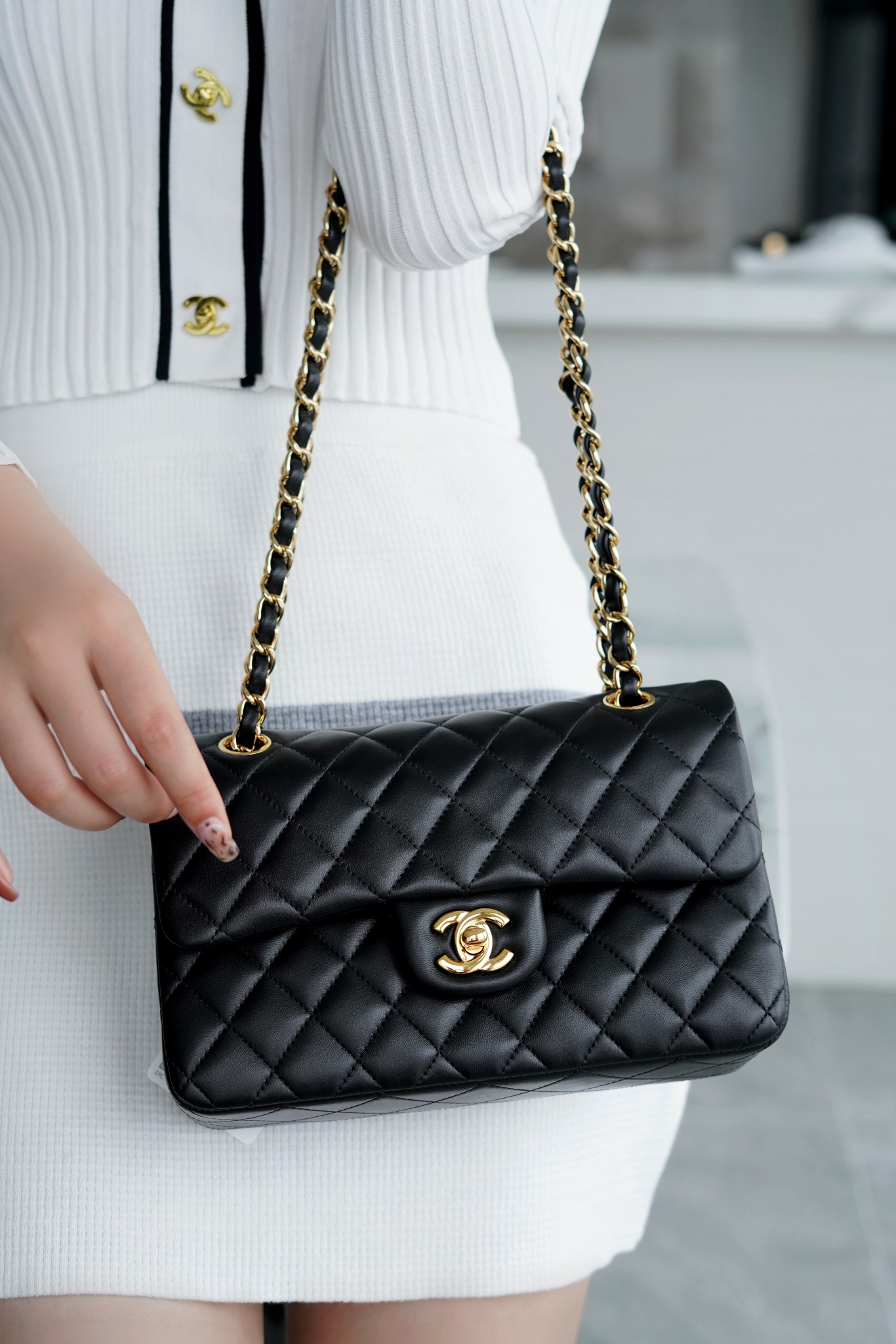 香奶奶 Classic Flap 经典口盖包 黑羊金 小号