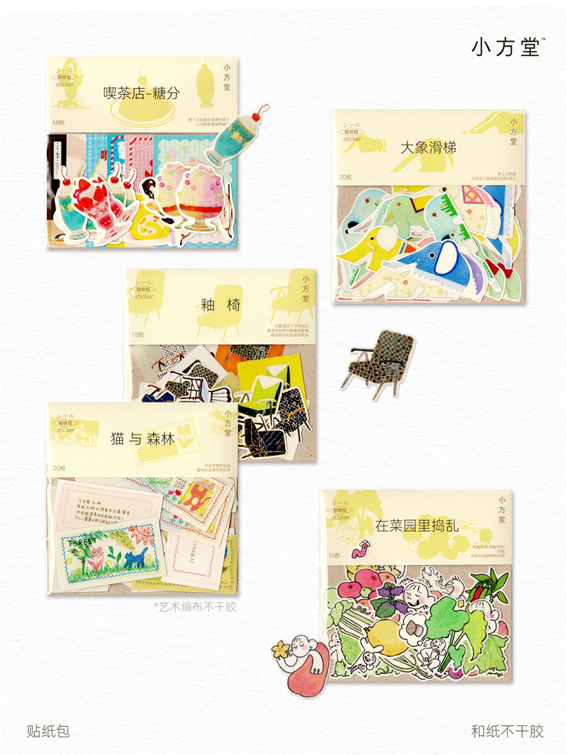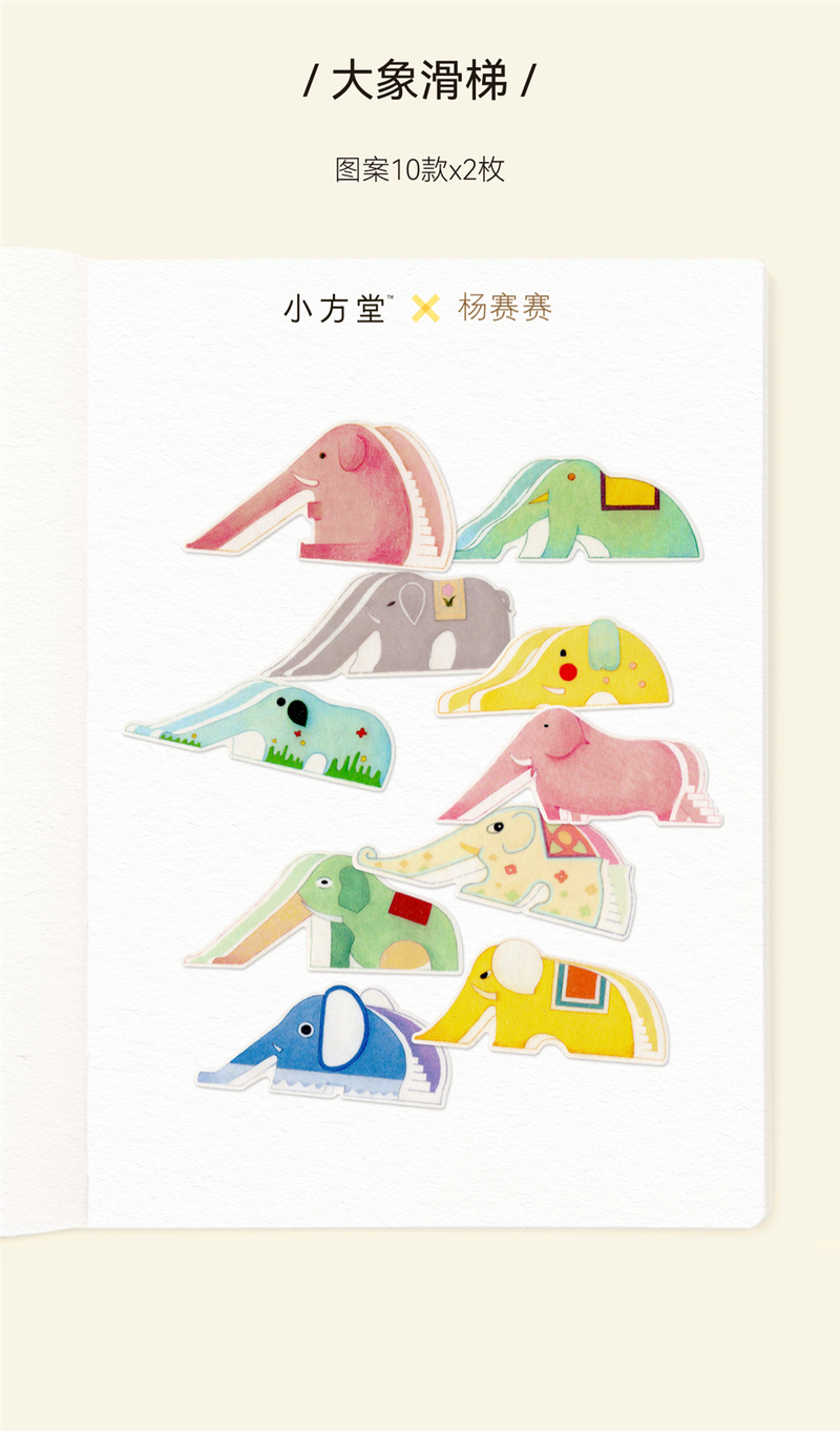 小方堂 贴纸包 手帐异形贴纸和纸布贴手账甜品可爱大象滑梯