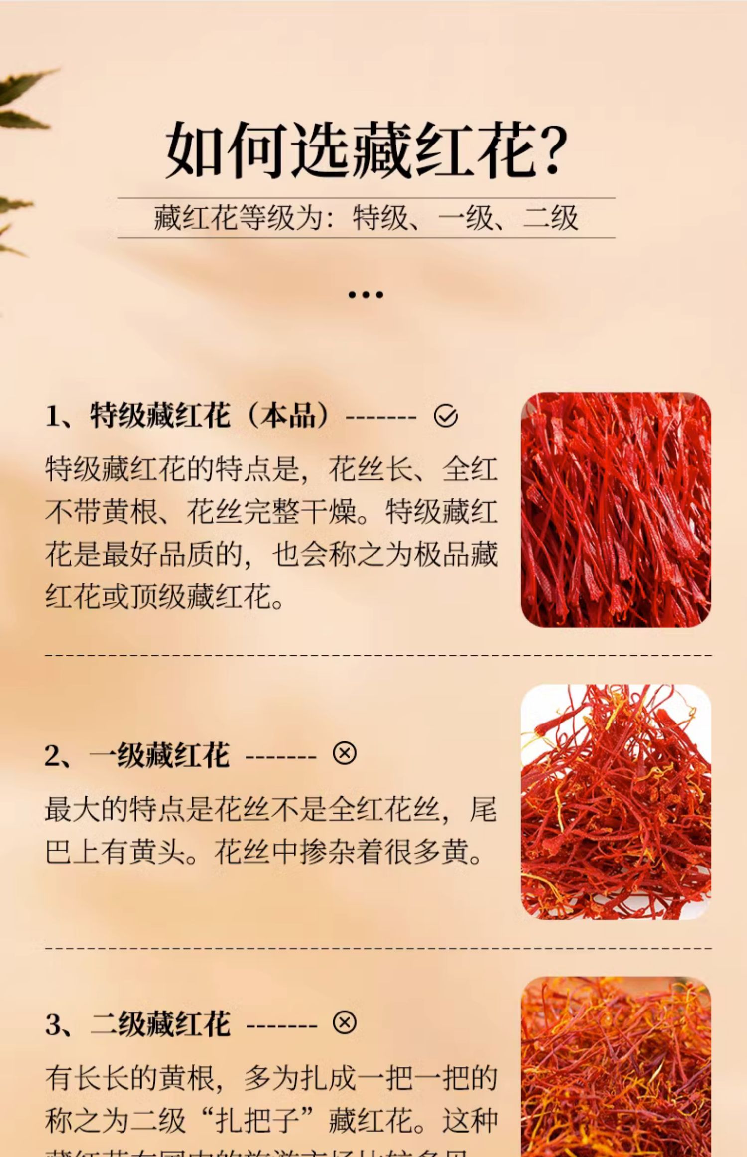 藏红花官方正品特级西藏西红花中药材泡水喝伊朗进口臧红花茶养生