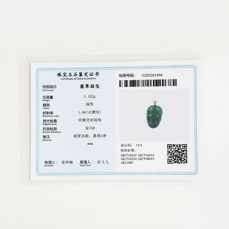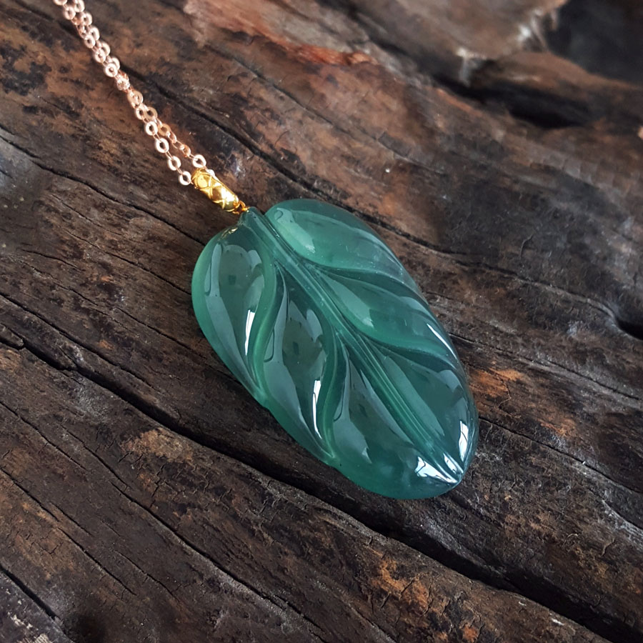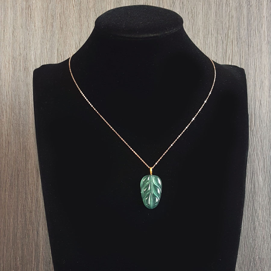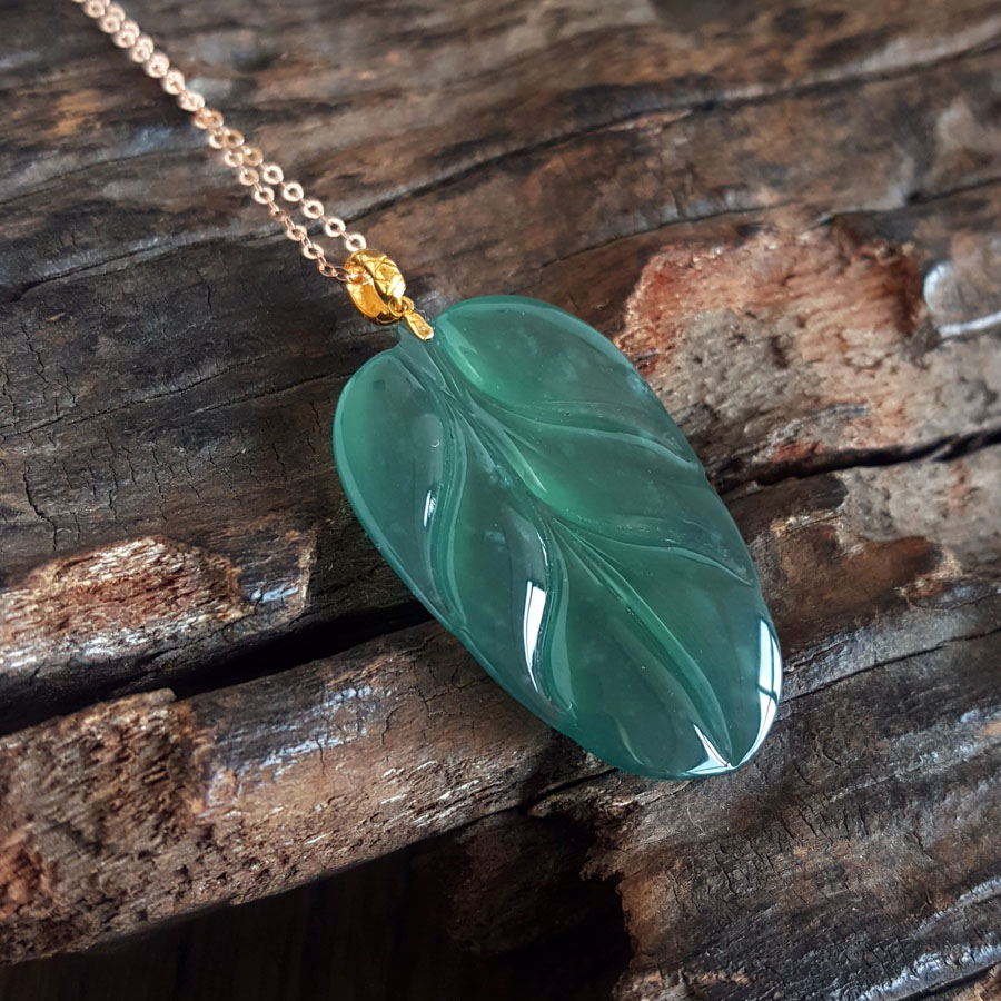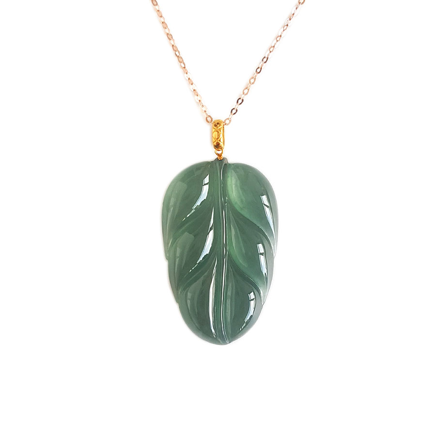 名称 | AU750黄金镶冰种蓝水叶子造型翡翠(金枝玉叶)吊坠项链 |