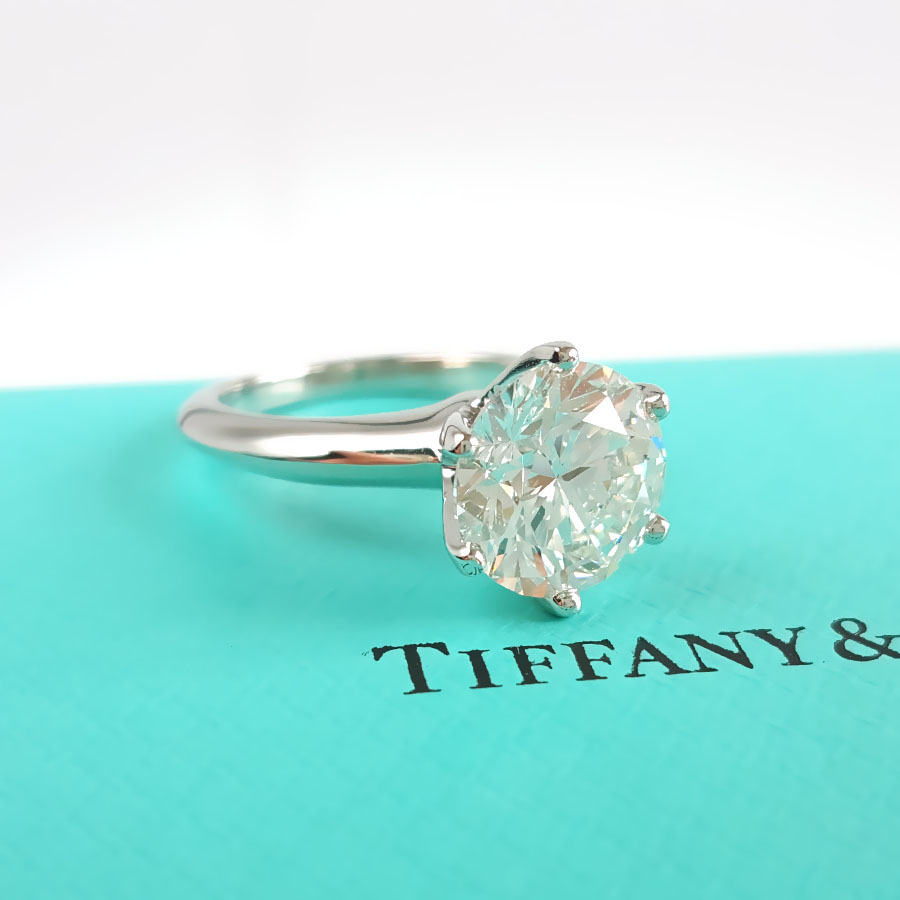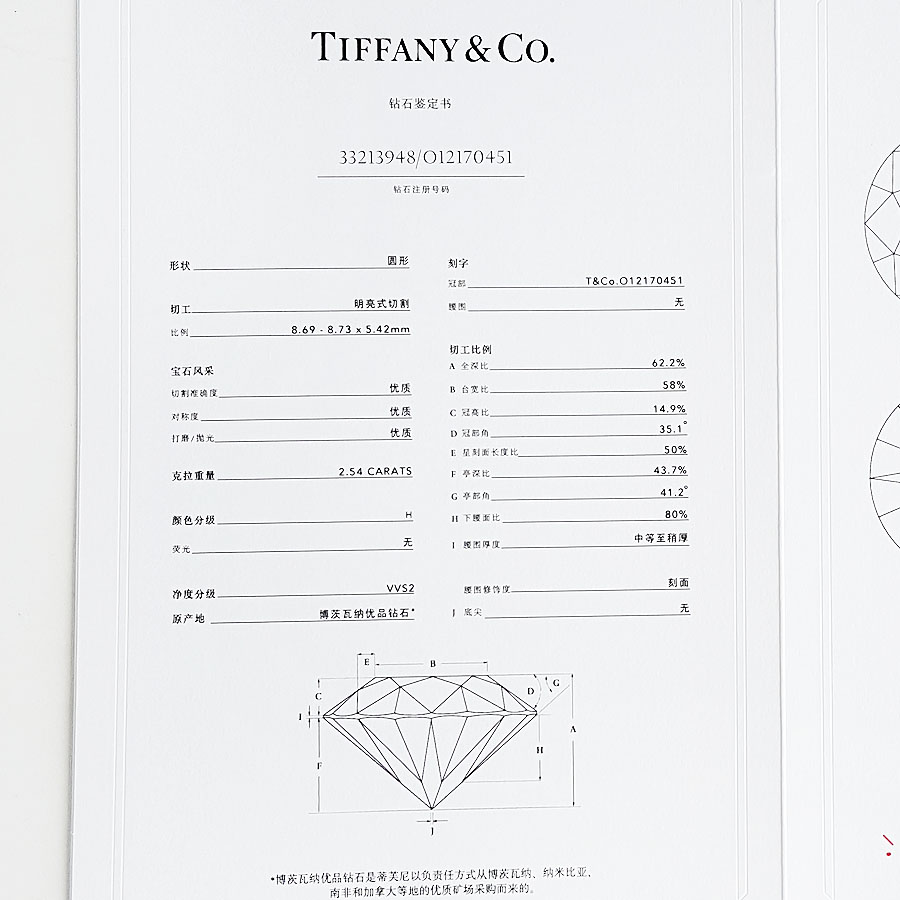 【95新】Tiffany & Co.蒂芙尼铂金六爪2.54ct钻戒约46号,戒圈大小支持修改Pt950,钻石女士现售价:189300!160525KM01