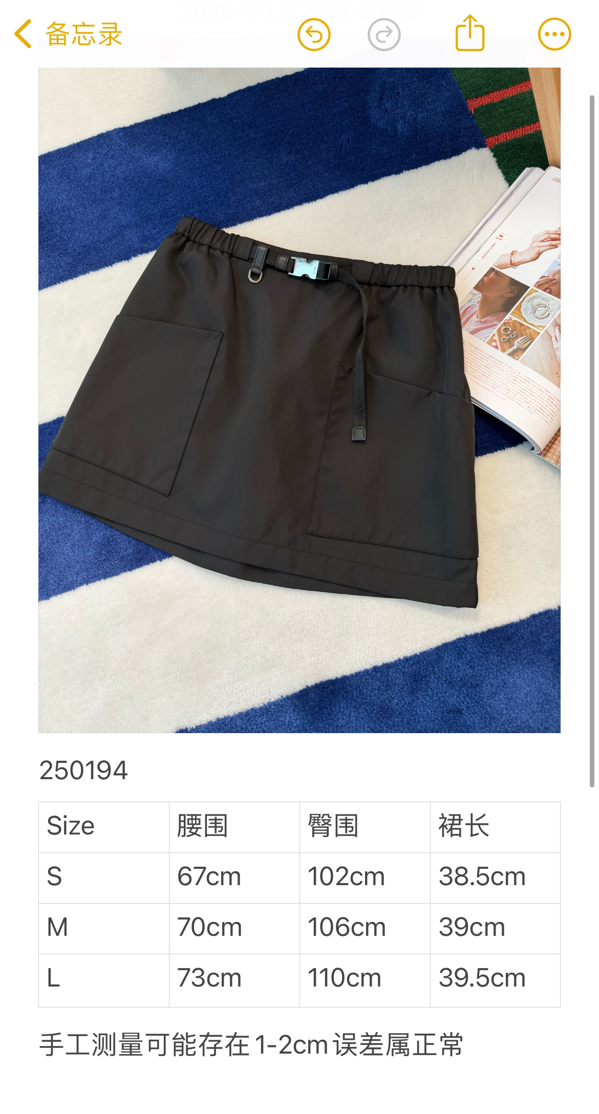 【新款上线】2026早春最最最新款🆕尼龙休闲半裙,这款真是绝绝子✨永远心动💗经久不衰的时尚态度〰️高腰显瘦💫视觉拉长比例,更显身材修长‼️小个子也可以妥妥的入✨工艺很讲究😜超级重工‼️YB定制尼龙面料😆非常百搭☑️高级感满满哒~腰部抽绳设计有弹力'上身非常舒适⭐️随意搭配气质马上就来了👍🏻简约时尚又显气质的单品🔝答应我,这裙子一定要收🉑️码数 SML