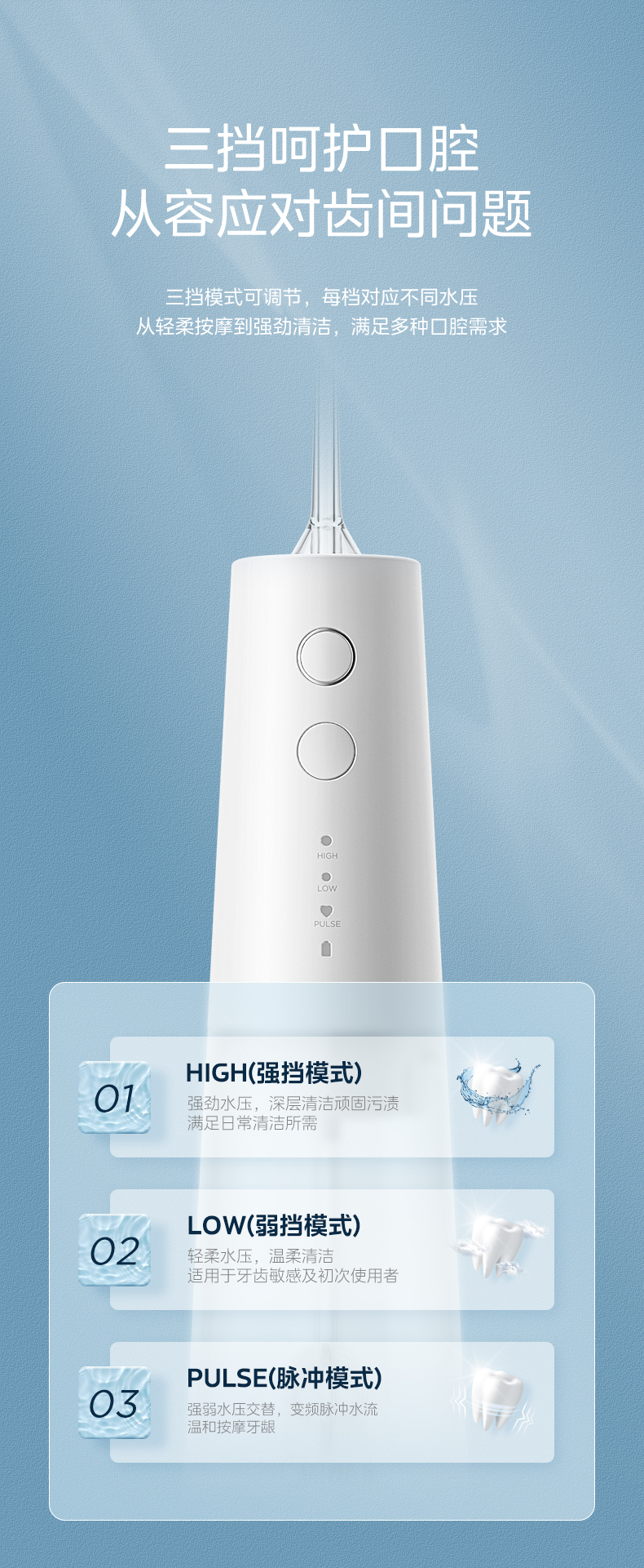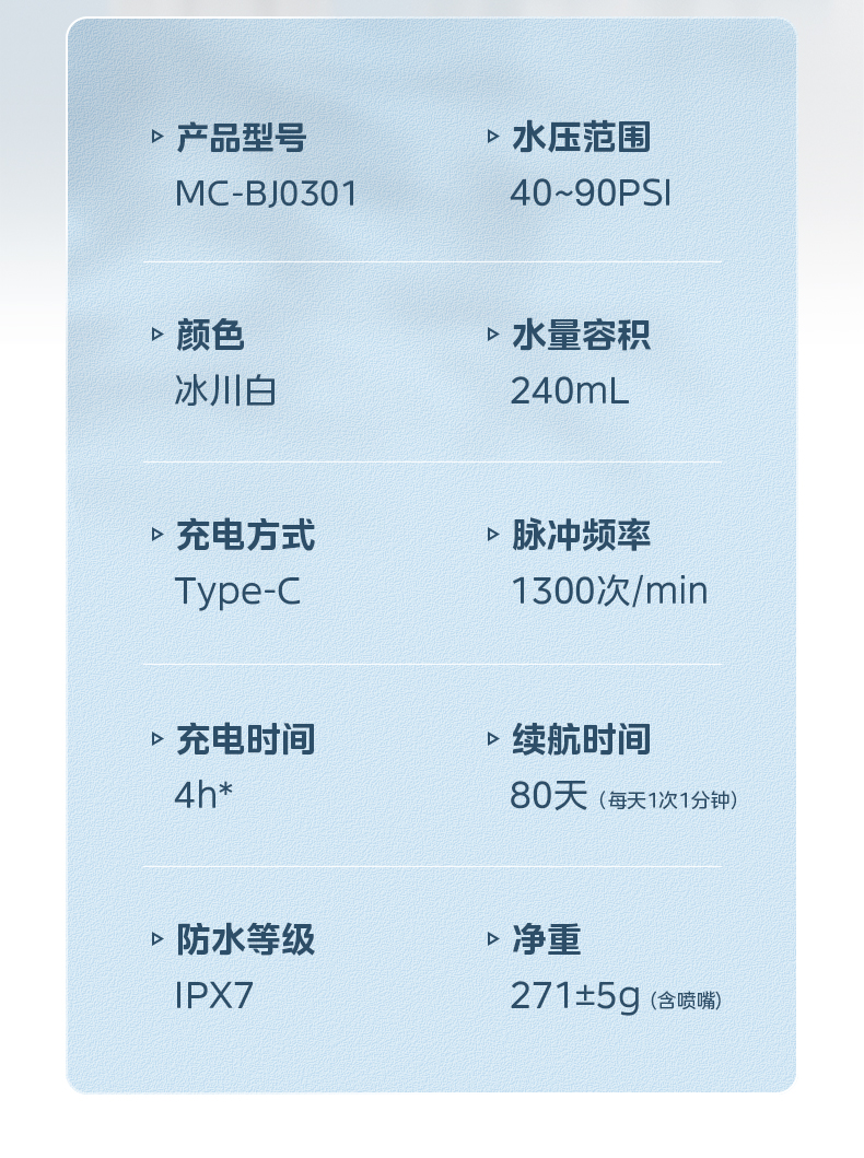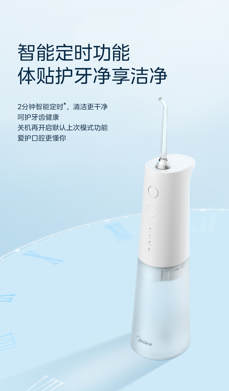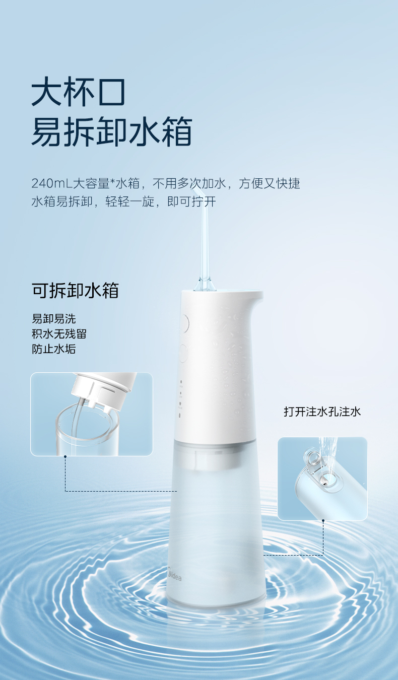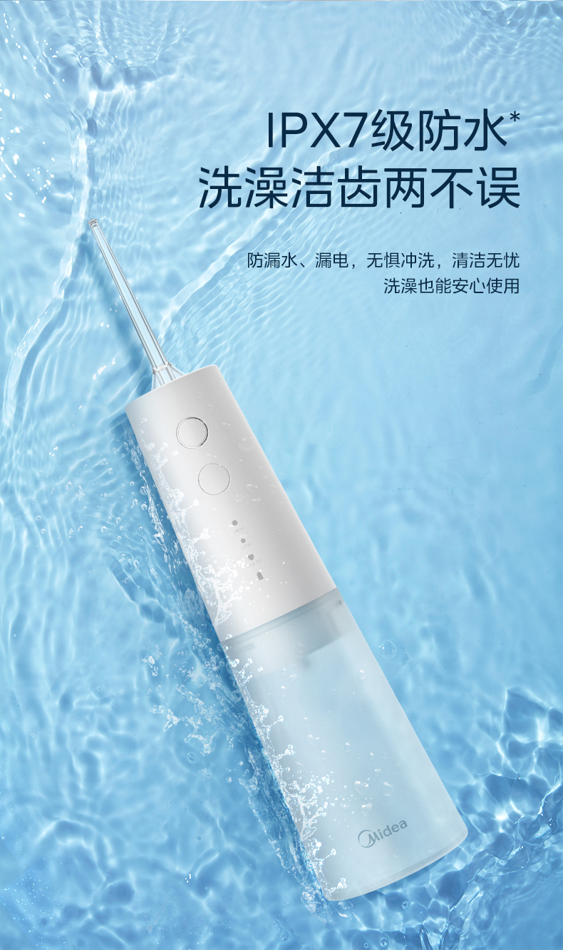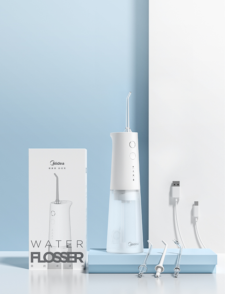 美的(Midea)冲牙器便携洗牙器水牙线可拆卸水箱80天长续航家用正畸喷嘴送礼男女情侣老师节日生日礼物小白瓶MC-BJ0301-3支喷头