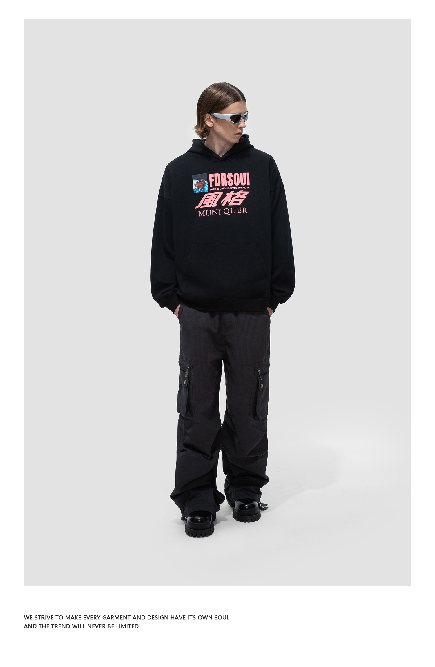 FDR原创国潮基础款印花重磅连帽卫衣复古美式高街情侣帽衫