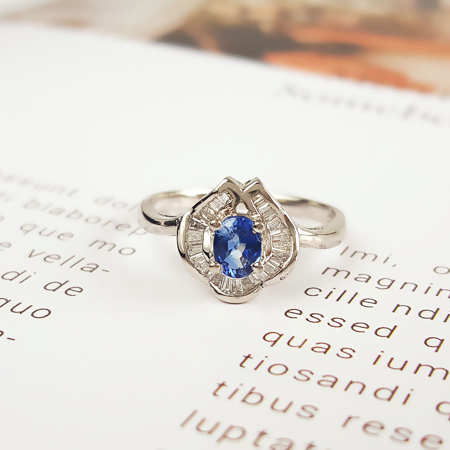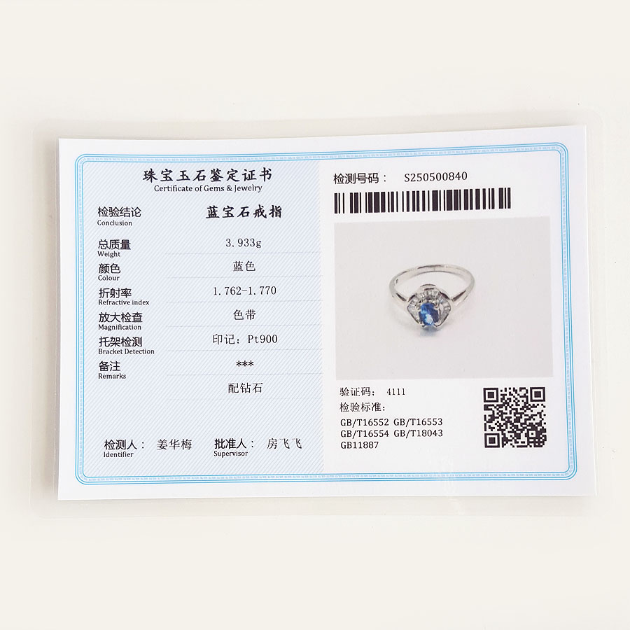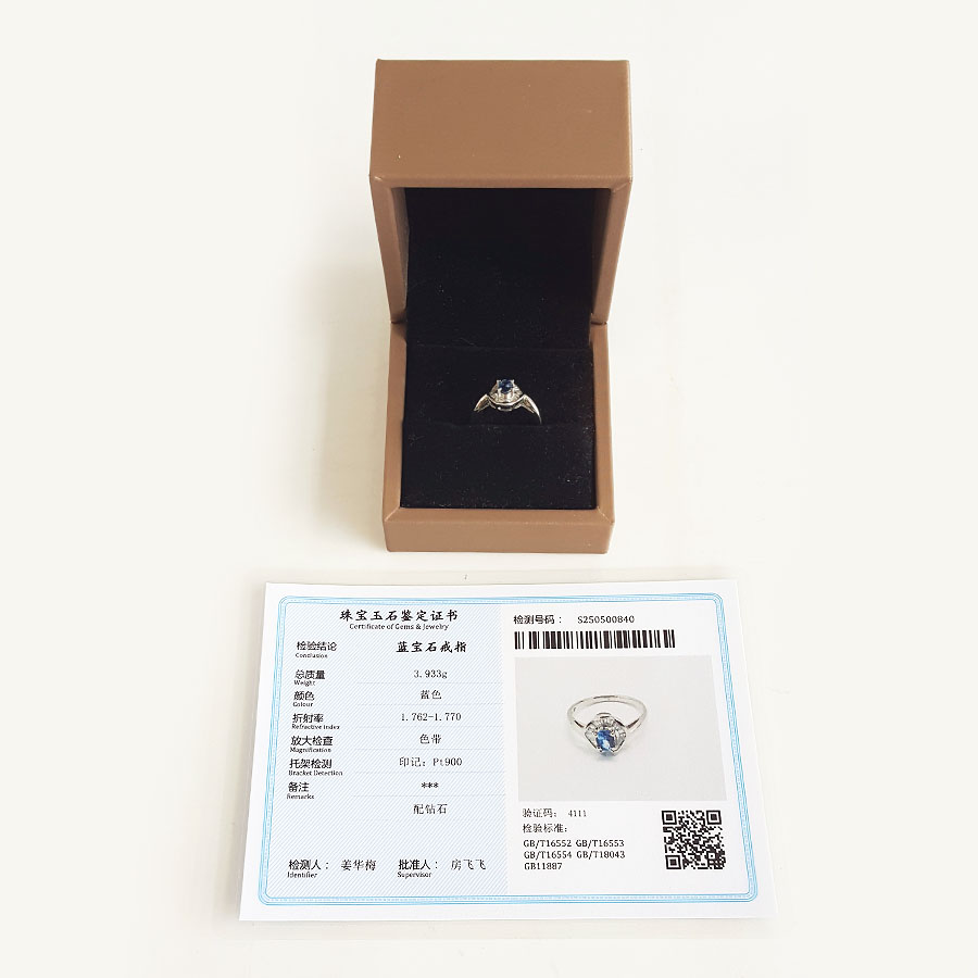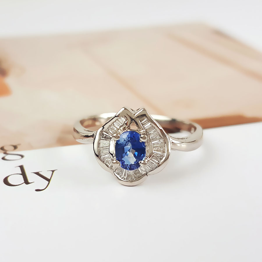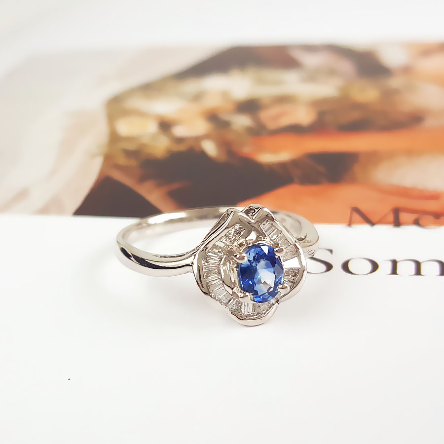 名称 | PT900铂金镶钻镶天然近50分矢车菊蓝宝石戒指 |