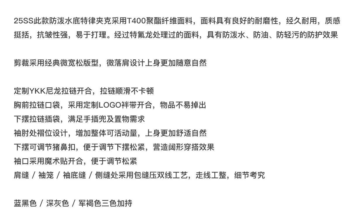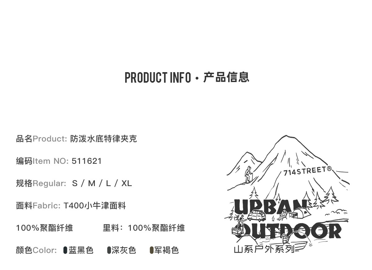 714street户外耐磨抗皱底特律夹克男士2025春季新款三防宽松外套