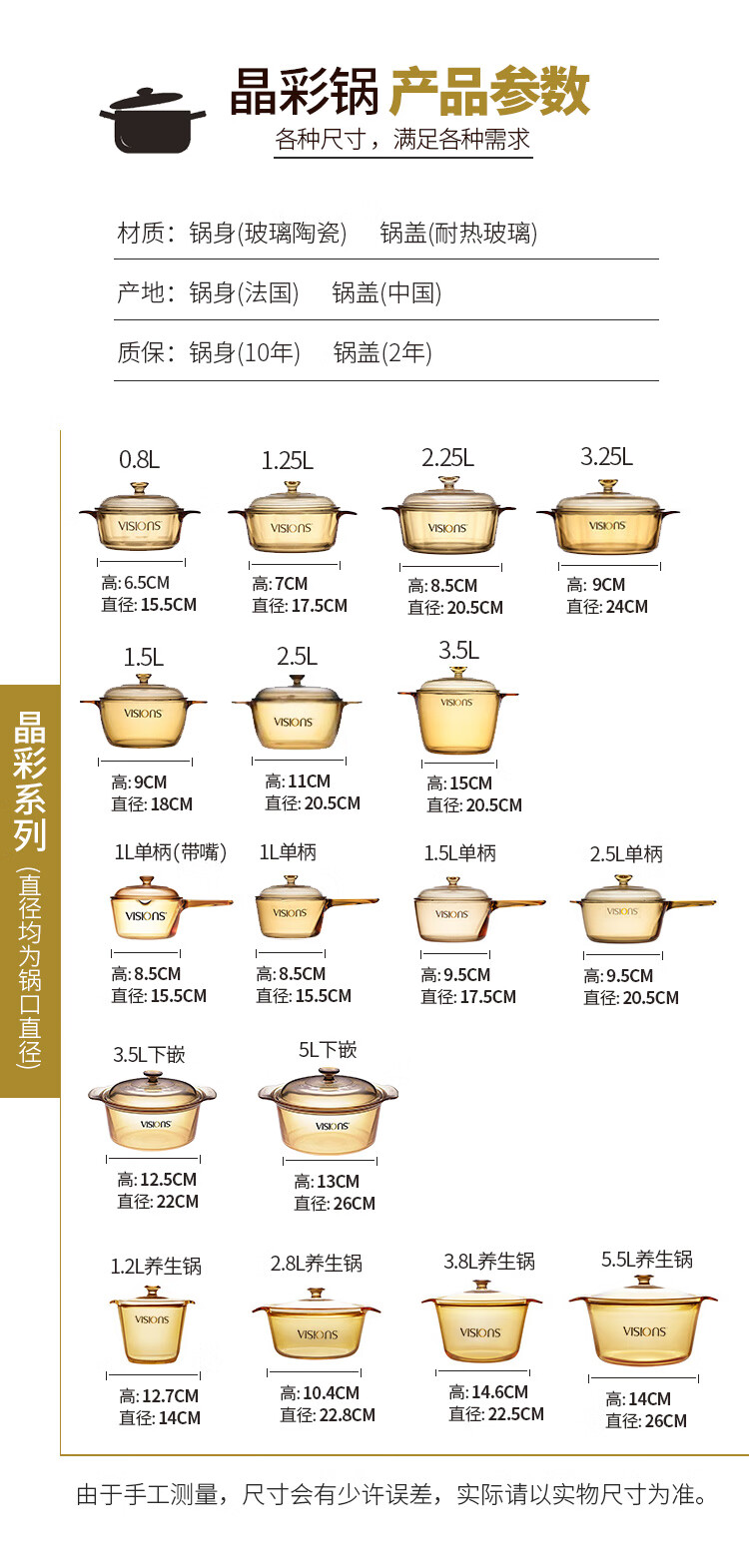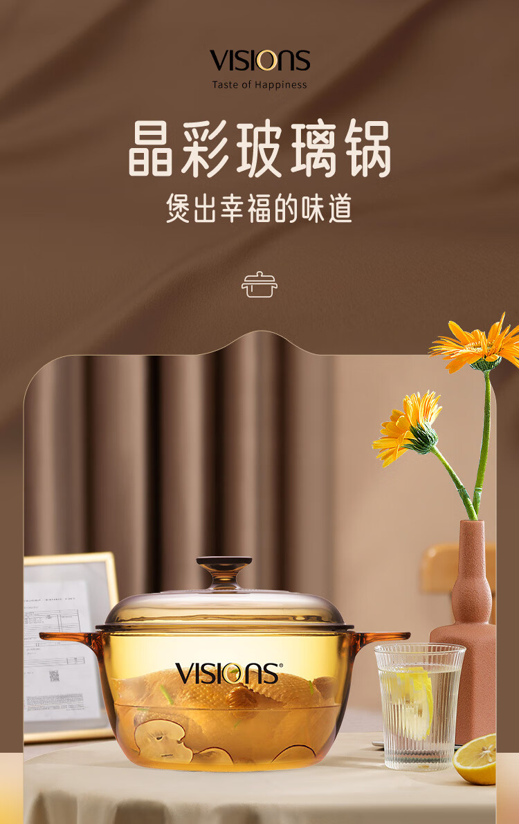 康宁(VISIONS)玻璃煲汤锅 家用炖熬煮汤锅 美国康宁双耳晶彩透明高汤锅火锅煲锅 2.5L晶彩锅