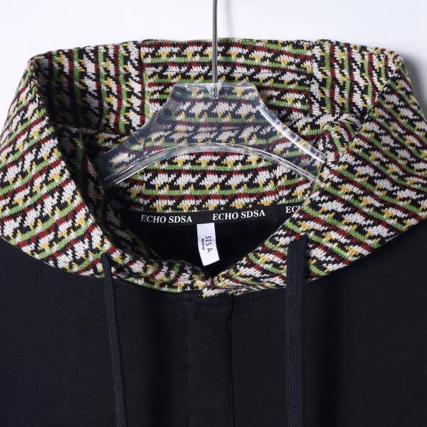 WY1198SDSA男士秋冬新款痞帅男装潮牌绒面撞色格子抽绳连帽卫衣百搭时尚