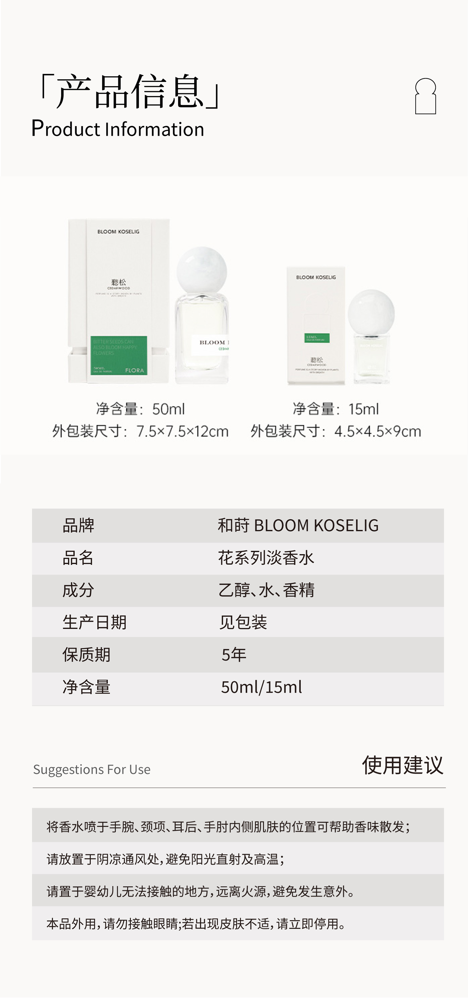 和莳听松50ML木质馥奇调花系列香水