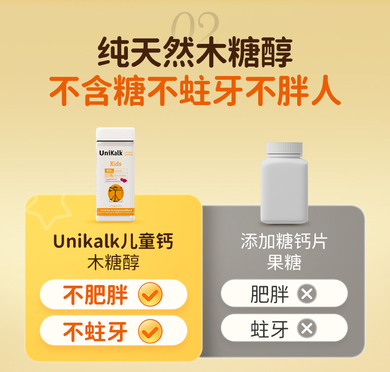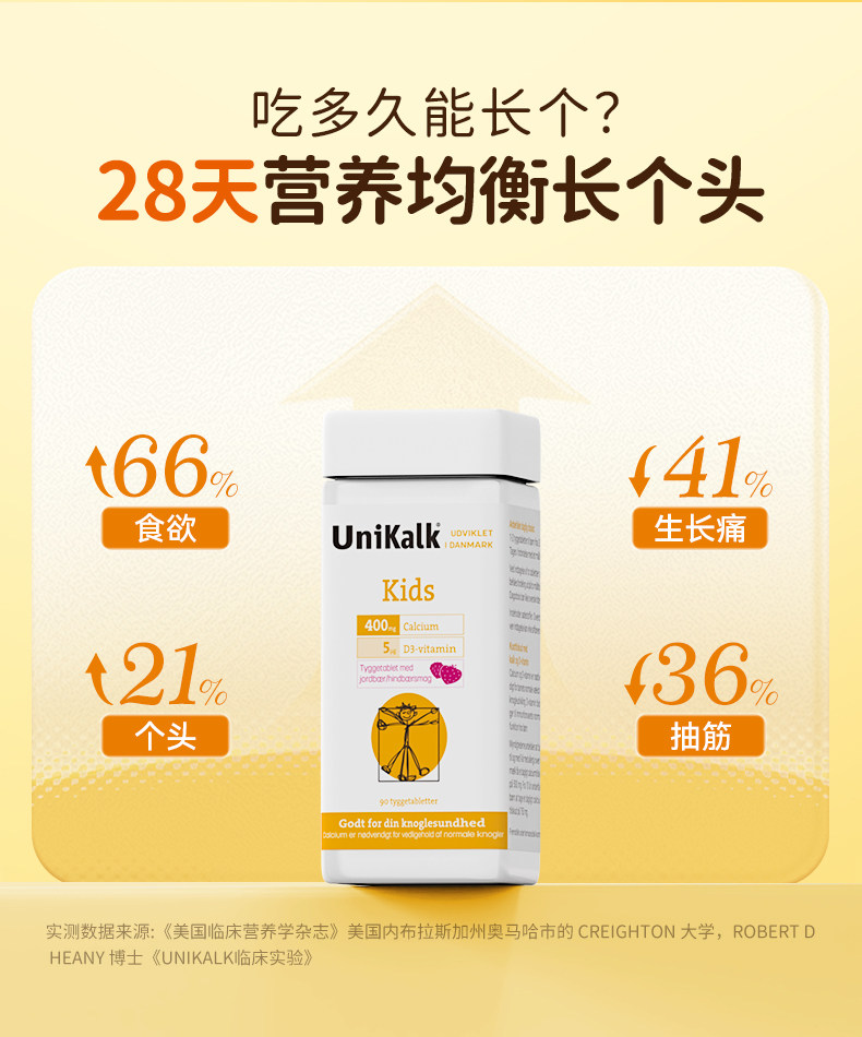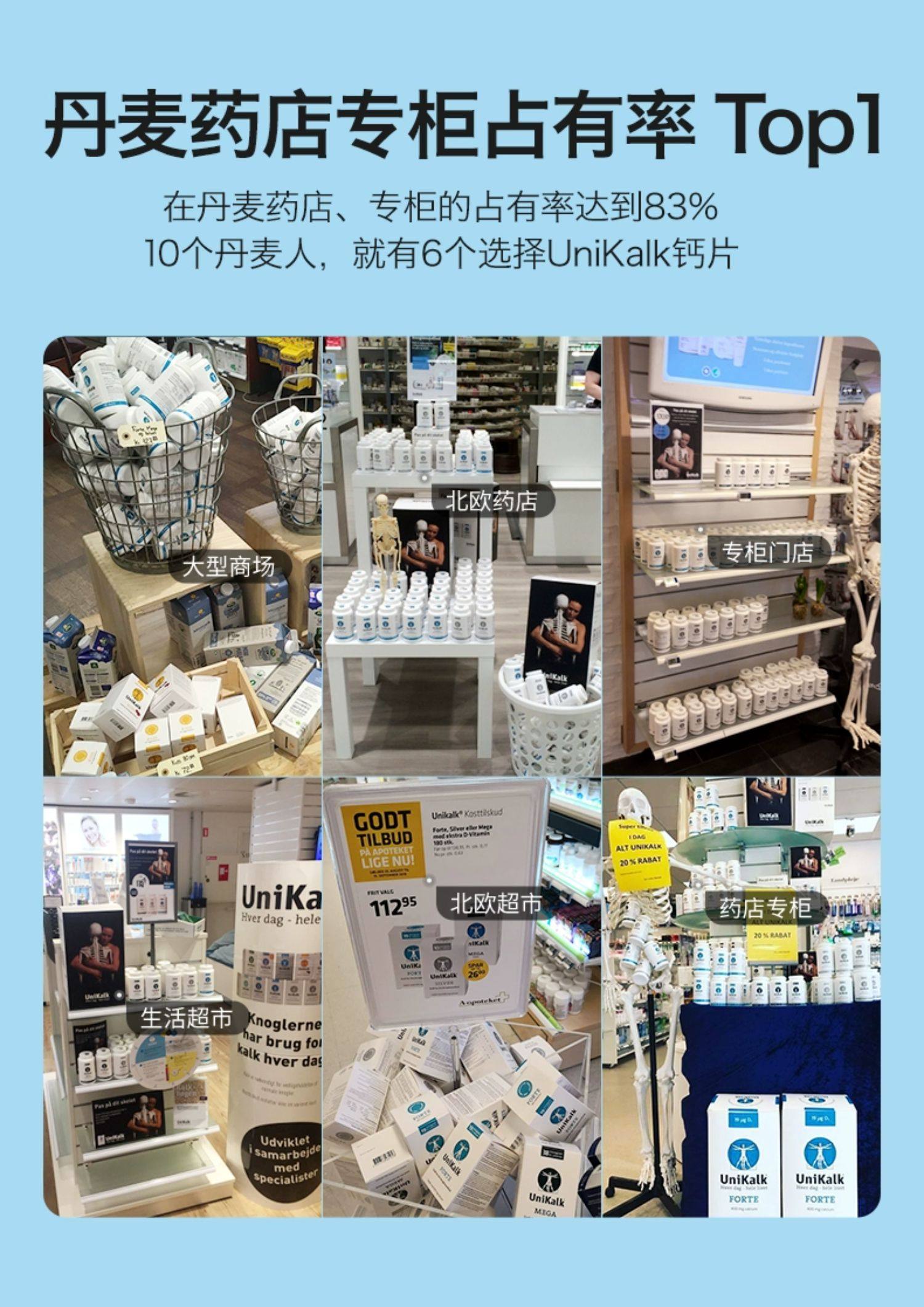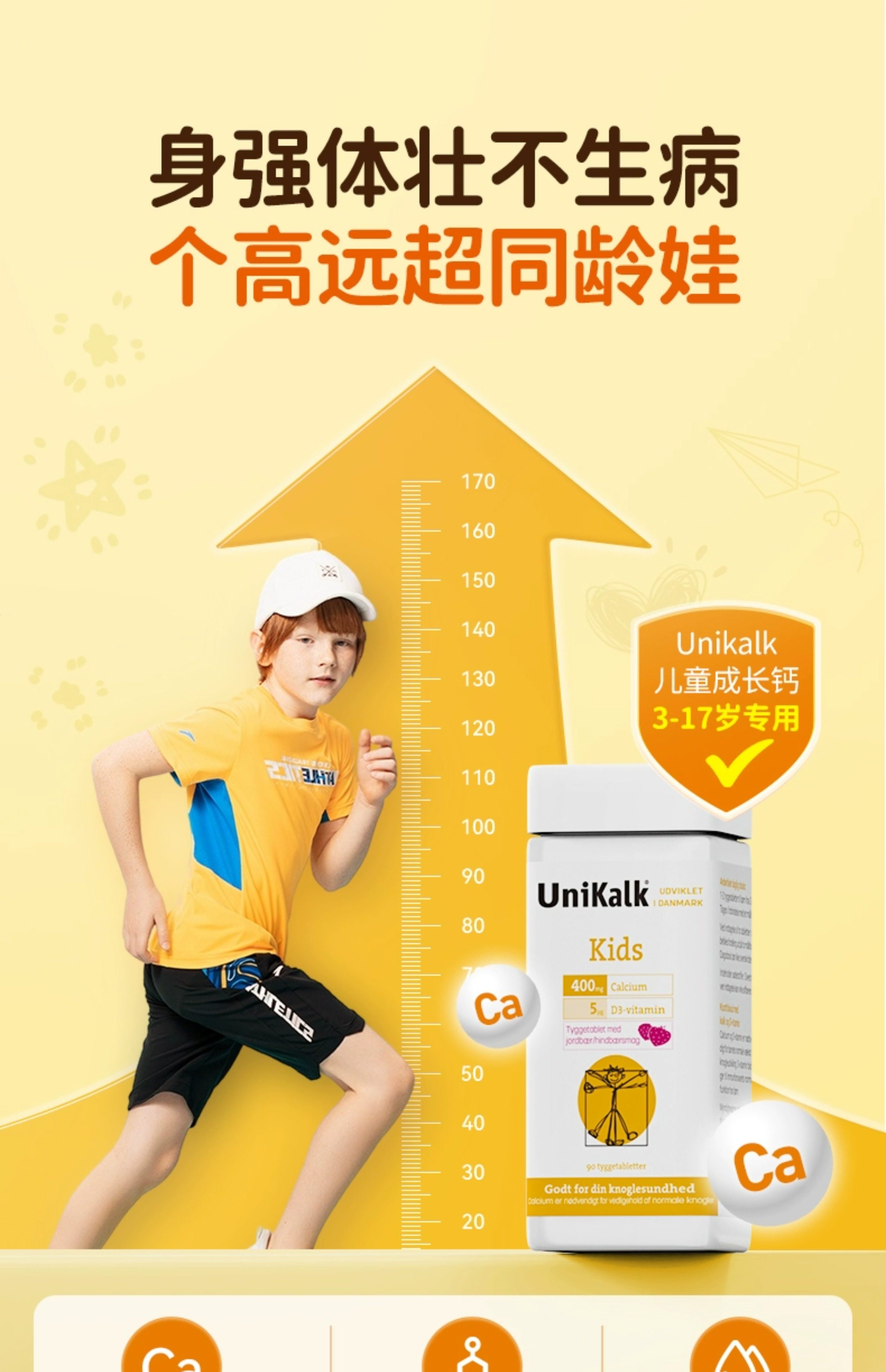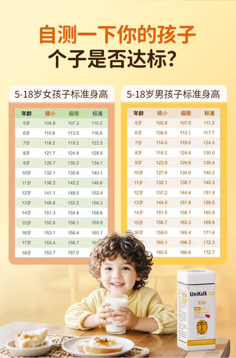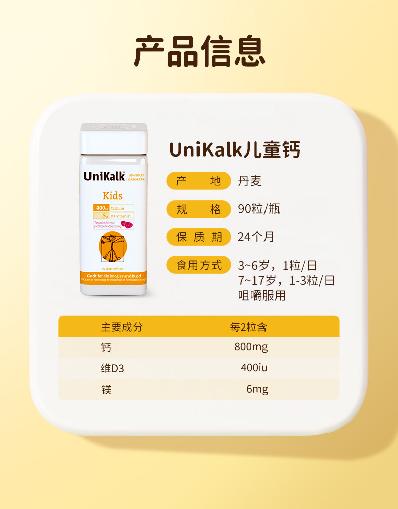 丹麦进口Unikalk儿童钙片成长小儿青少年补钙镁维生素D3助力高