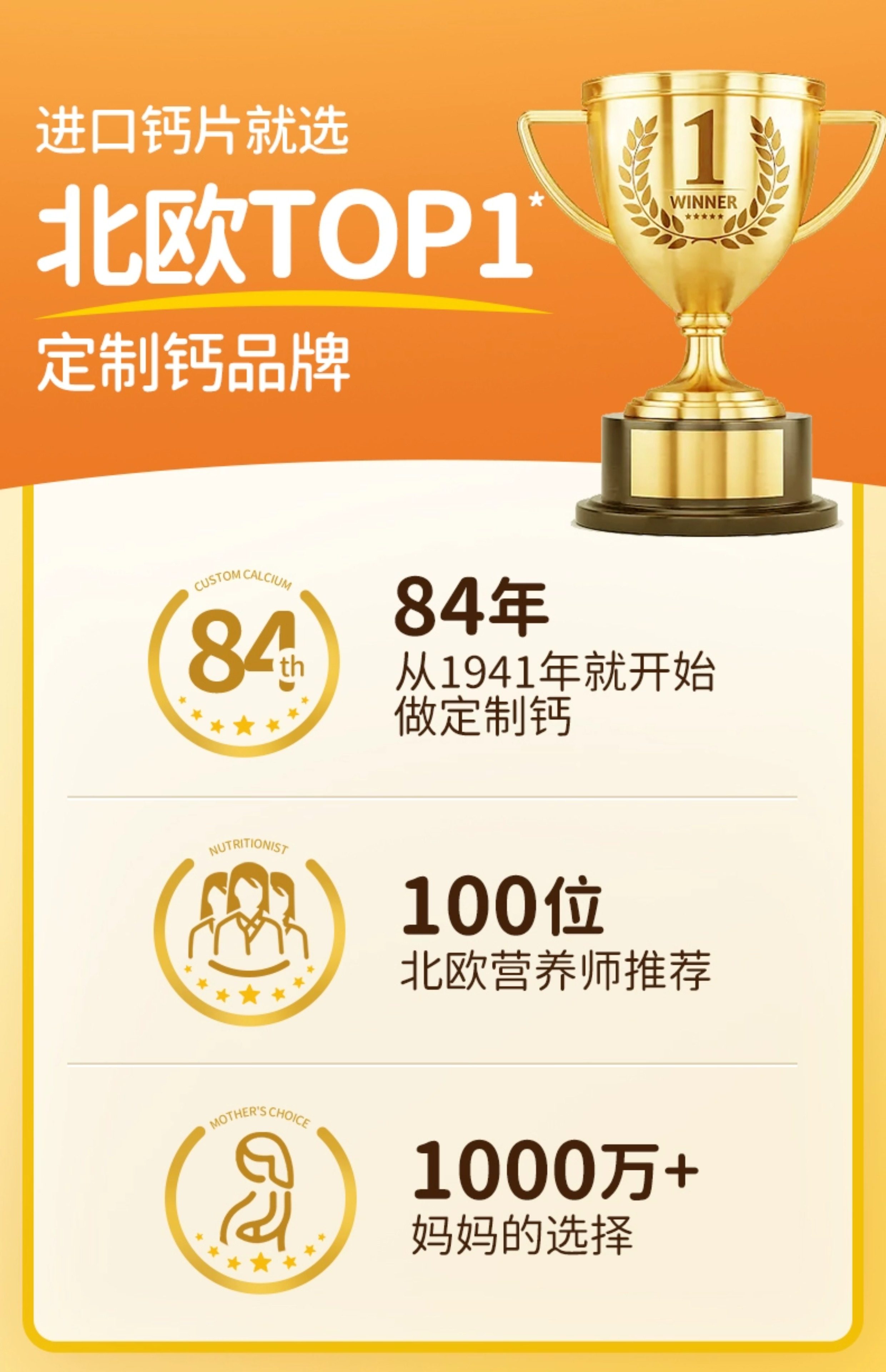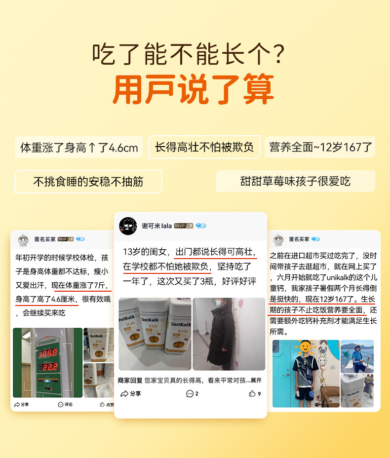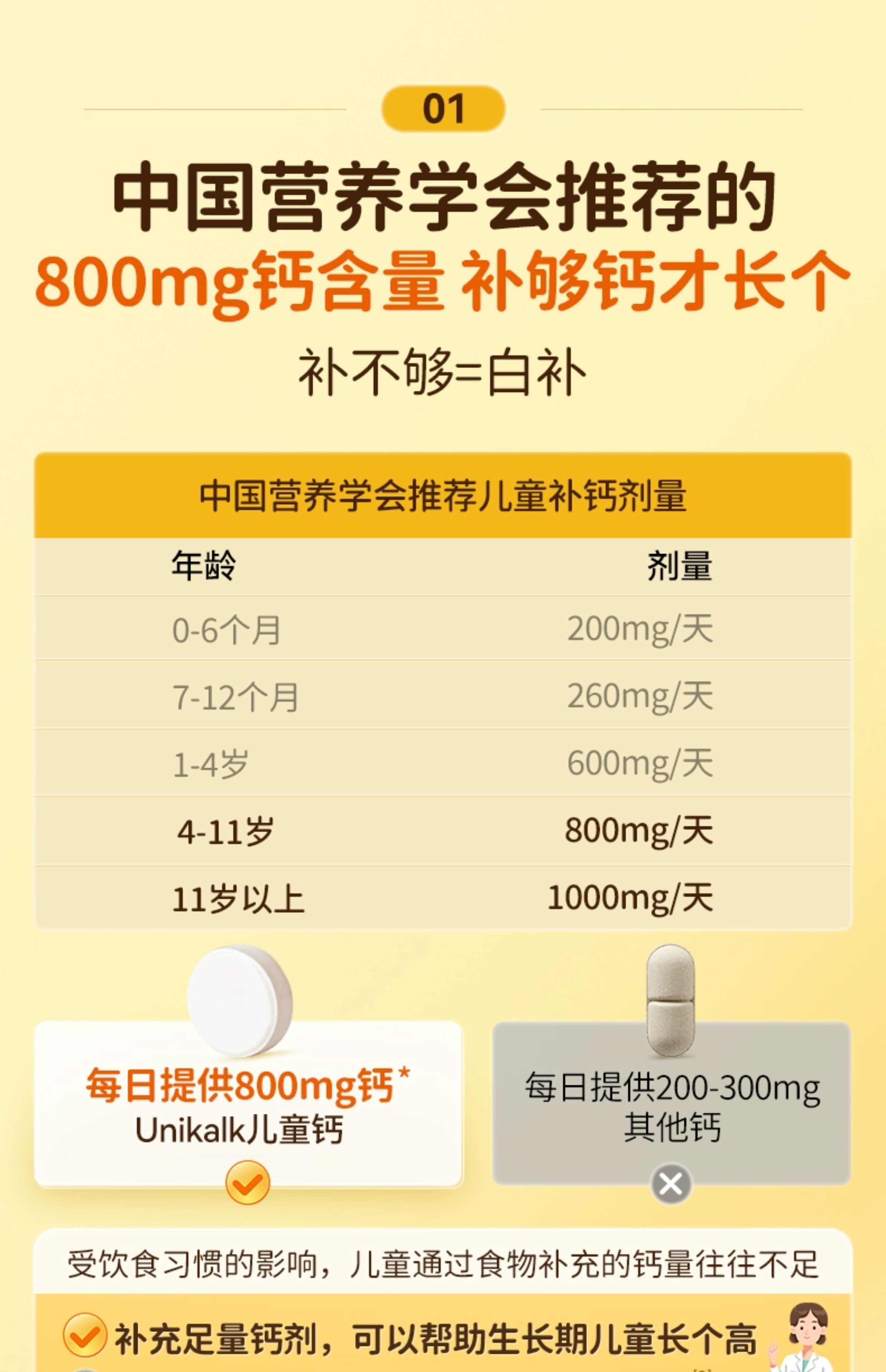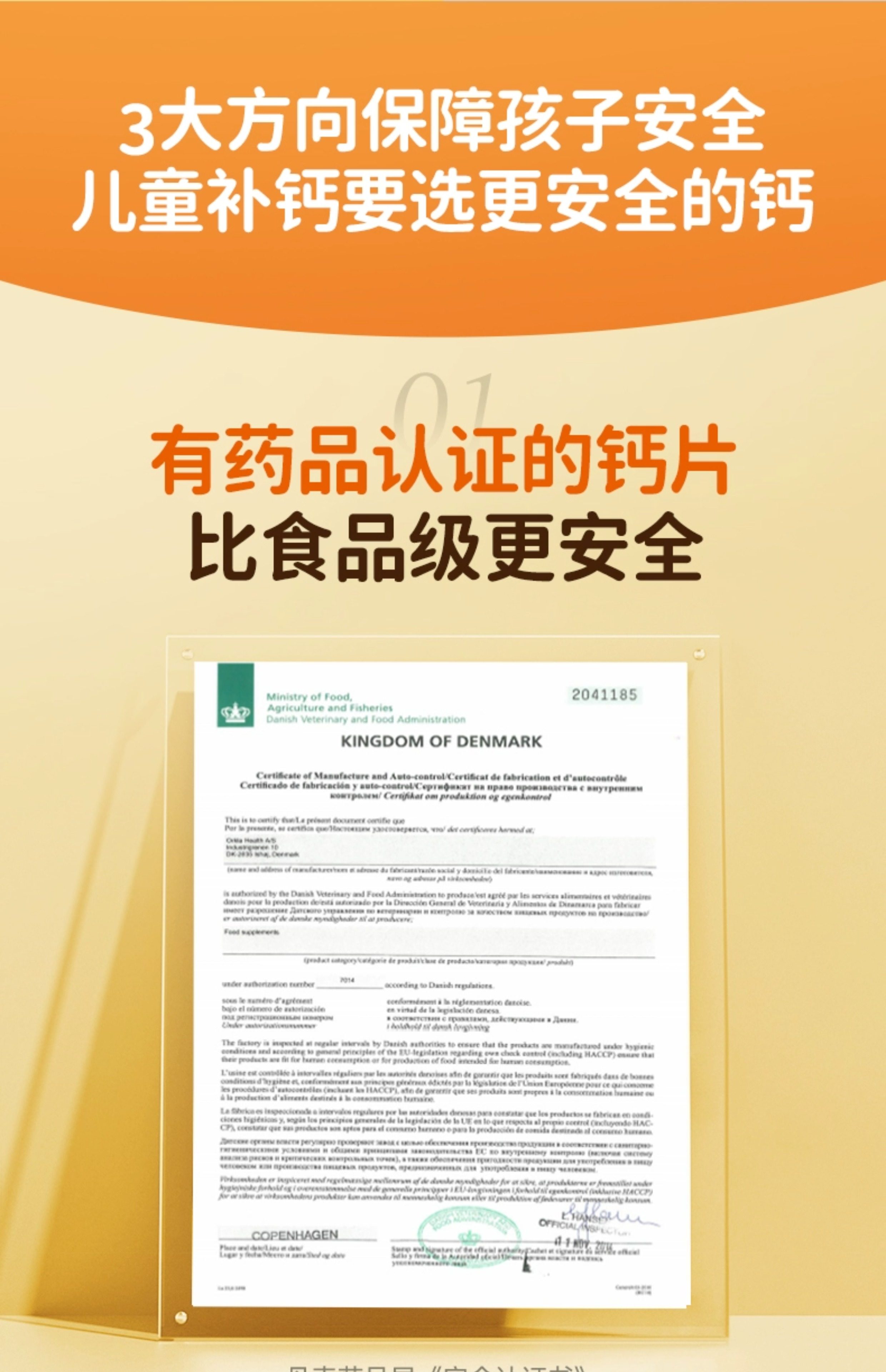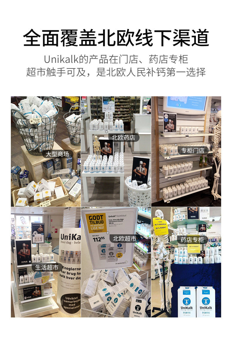丹麦进口Unikalk儿童钙片成长小儿青少年补钙镁维生素D3助力高