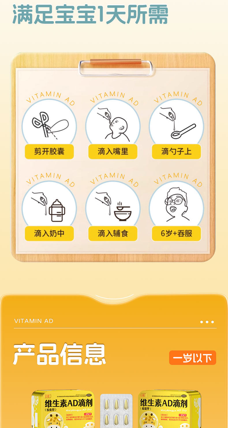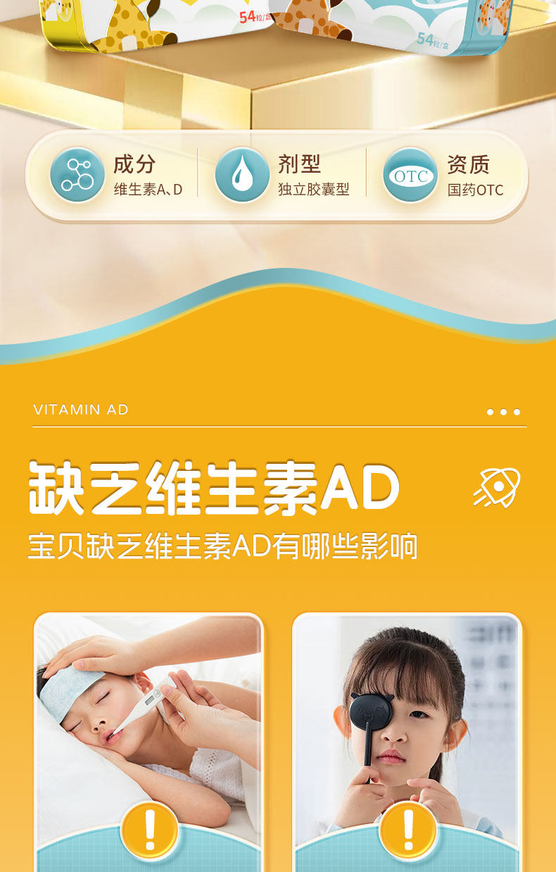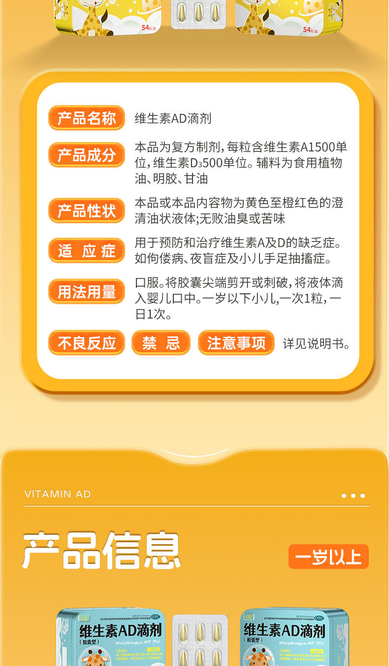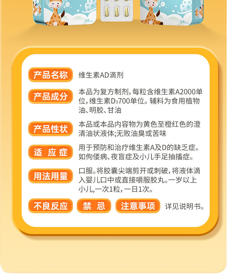维生素AD滴剂54粒婴幼儿一岁以上佝偻病夜盲症宝宝正品官方旗舰店