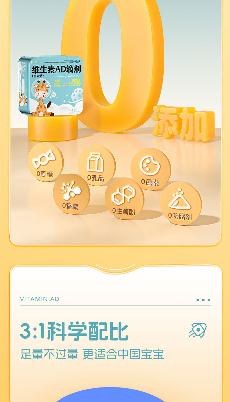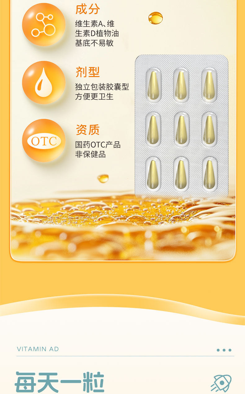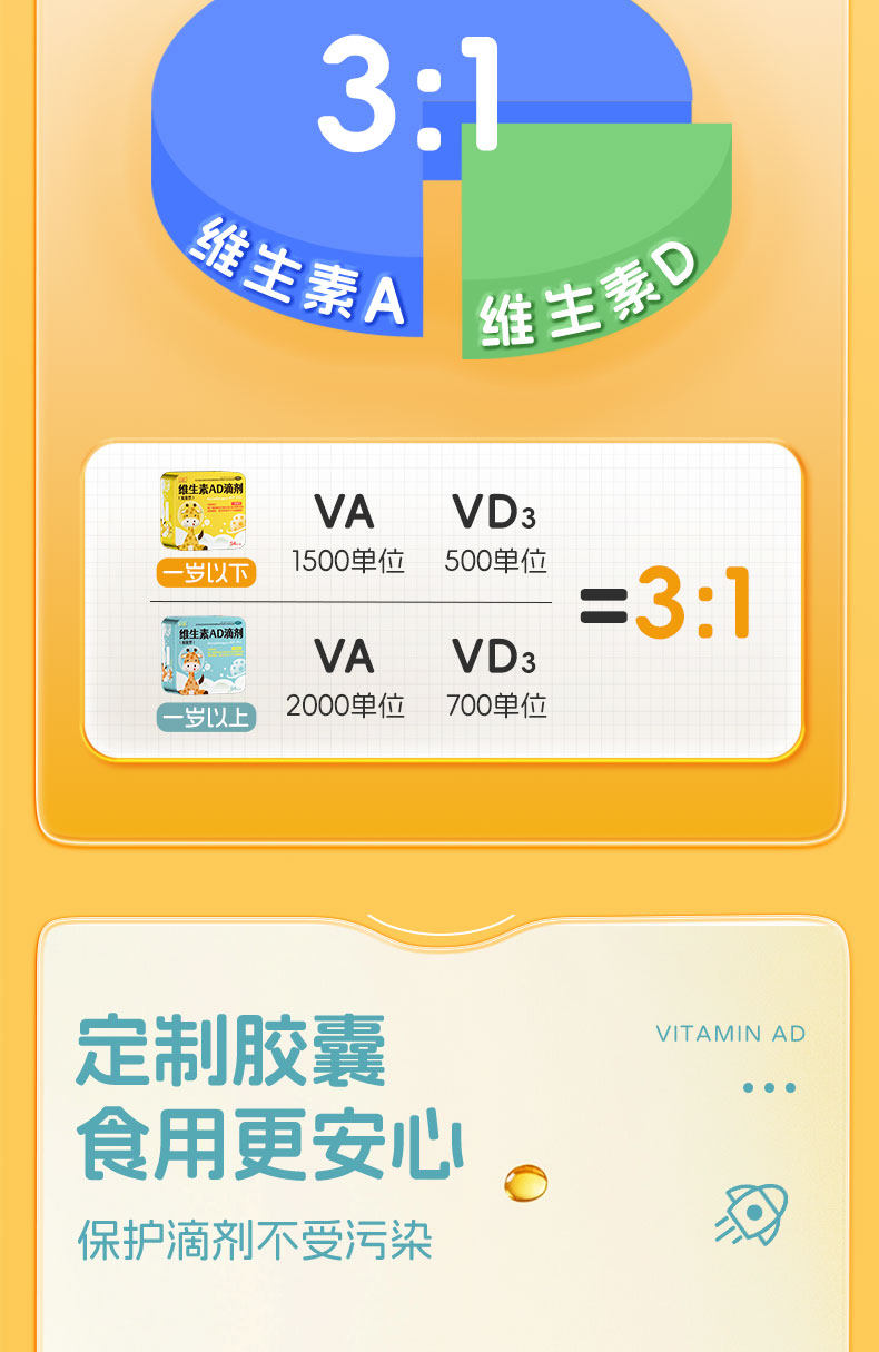 维生素AD滴剂54粒婴幼儿一岁以上佝偻病夜盲症宝宝正品官方旗舰店