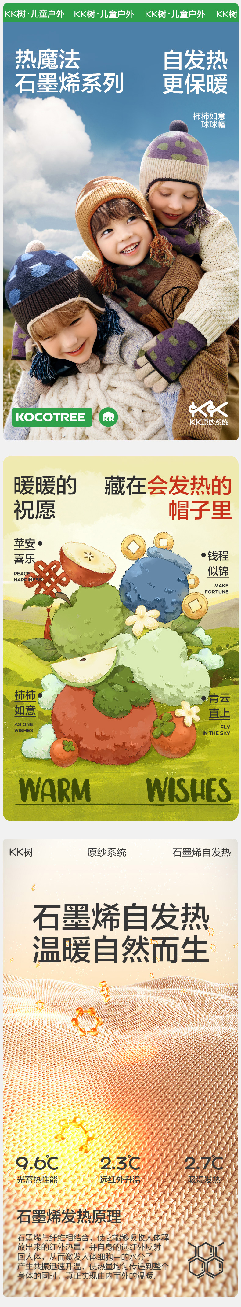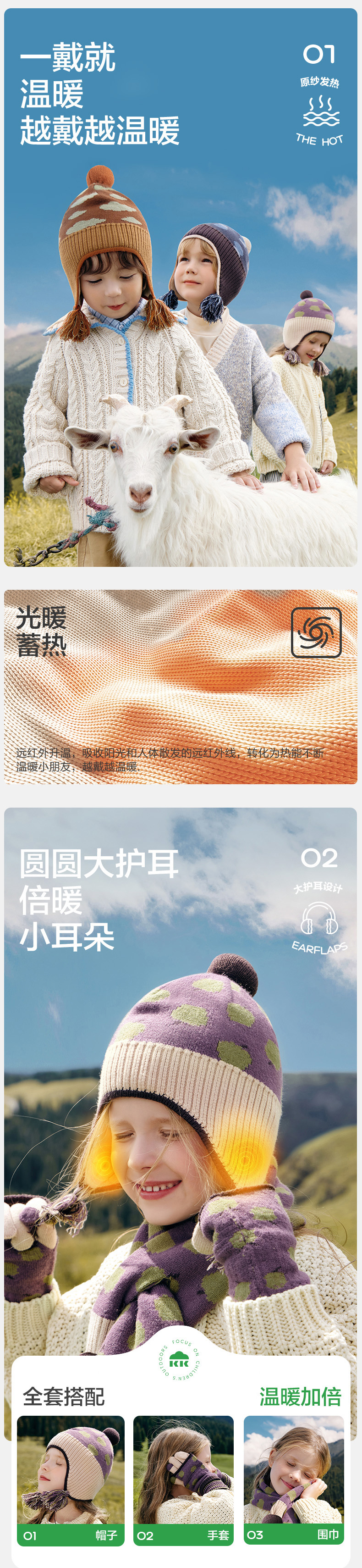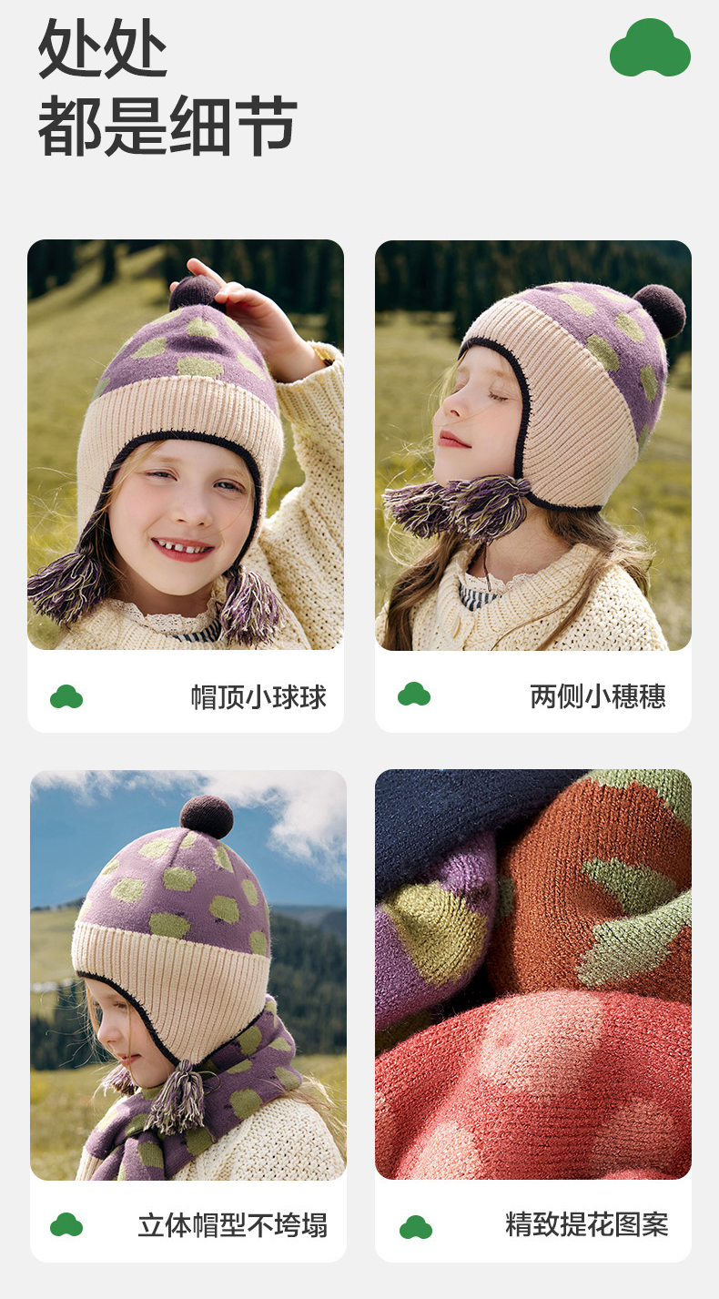 KK树儿童帽子秋冬季男孩女童宝宝毛线护耳帽围巾手套2024新款保暖柿柿如意球球帽