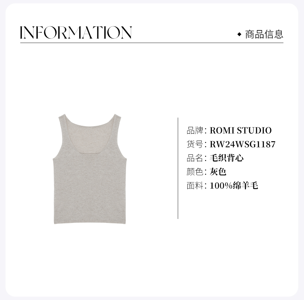 ROMI STUDIO“自然舒适”100%绵羊毛轻薄柔软吊带背心 RW24WSG1187