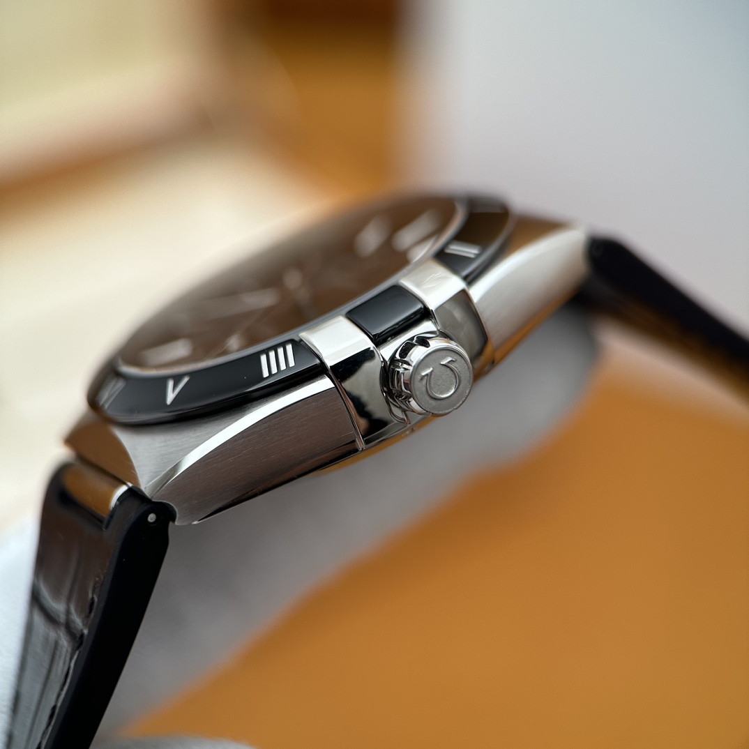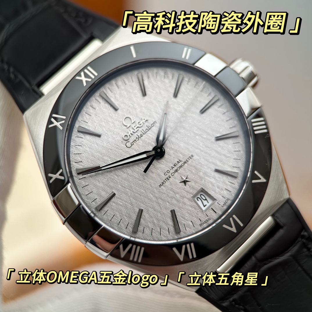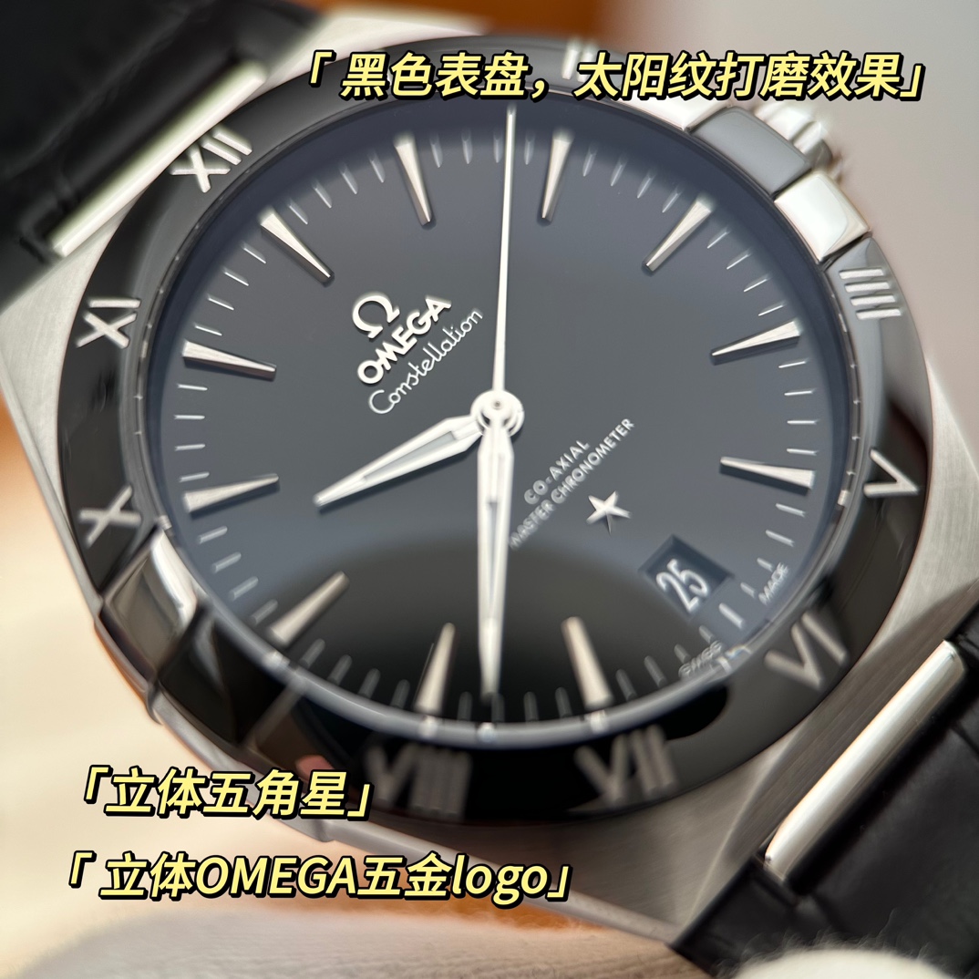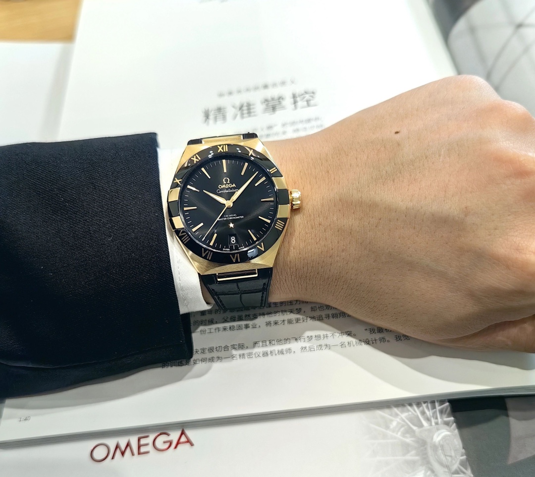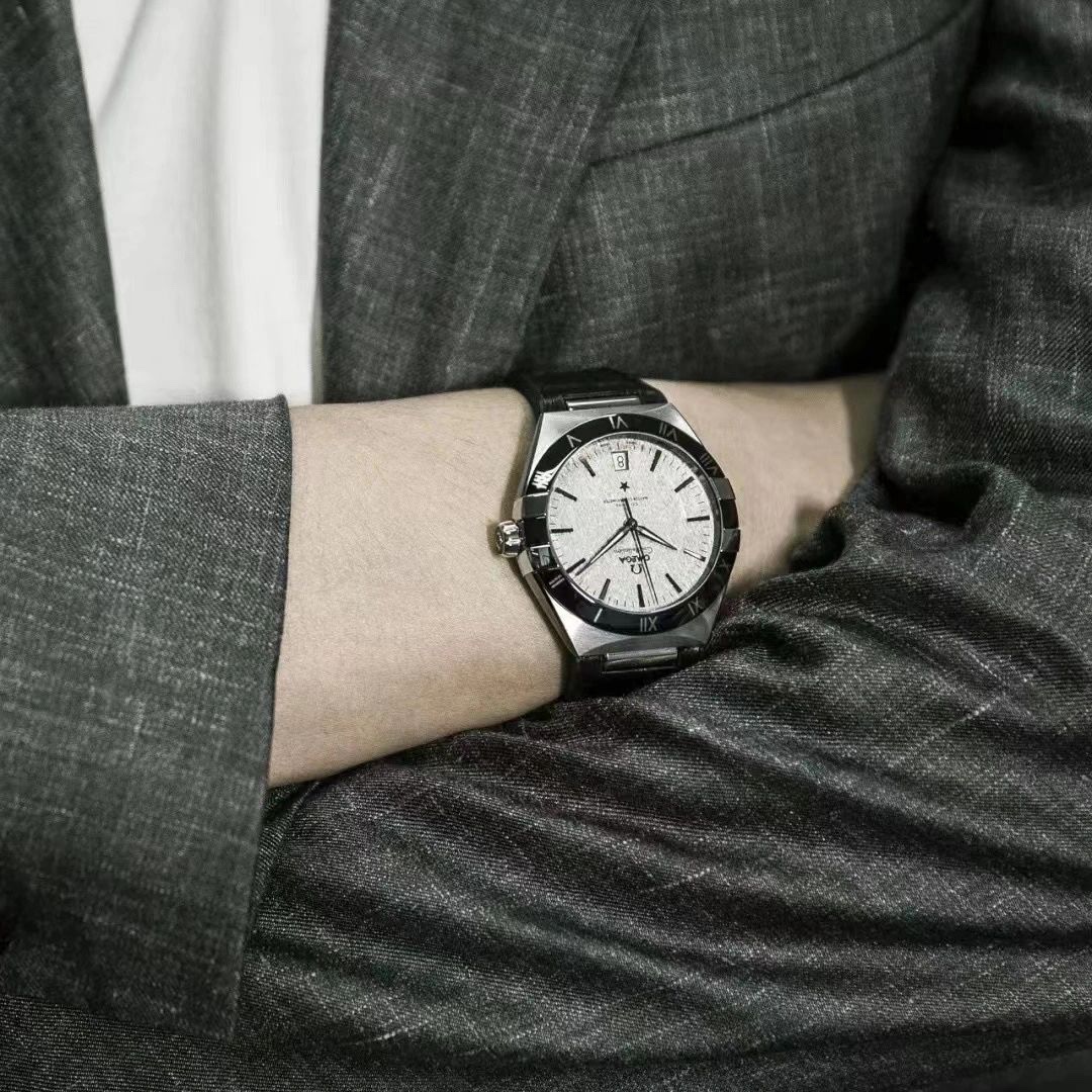欧米茄星座,造型迷人,黑色陶瓷表圈和罗马数字时标科技感满满。戴上去感觉非常时尚,内部机芯,一切都尽显品质和美感