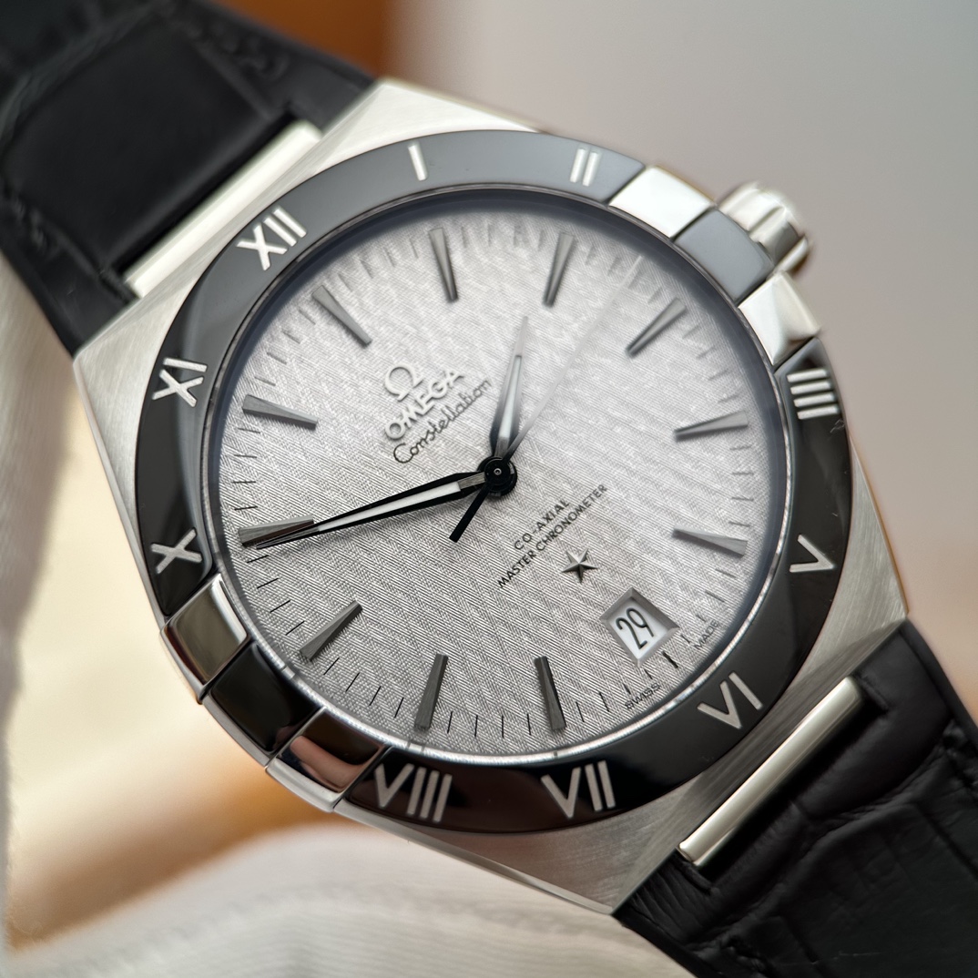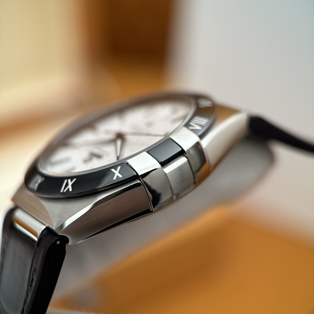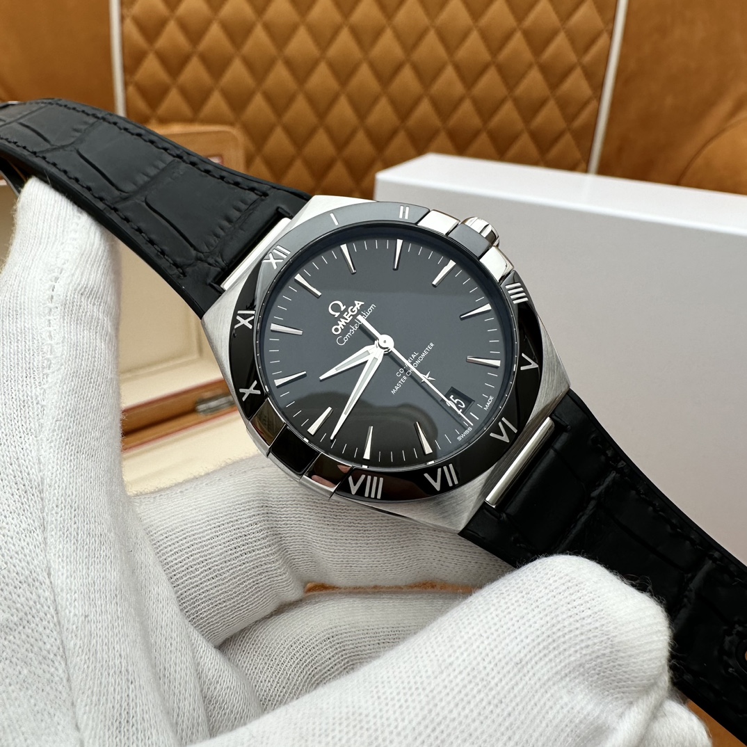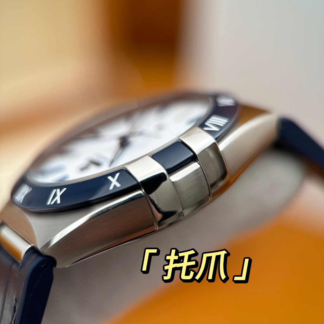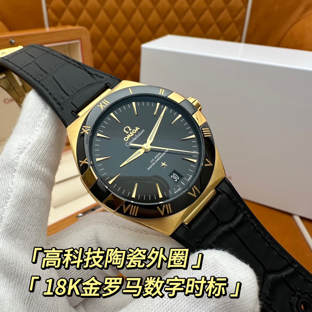 欧米茄星座,造型迷人,黑色陶瓷表圈和罗马数字时标科技感满满。戴上去感觉非常时尚,内部机芯,一切都尽显品质和美感