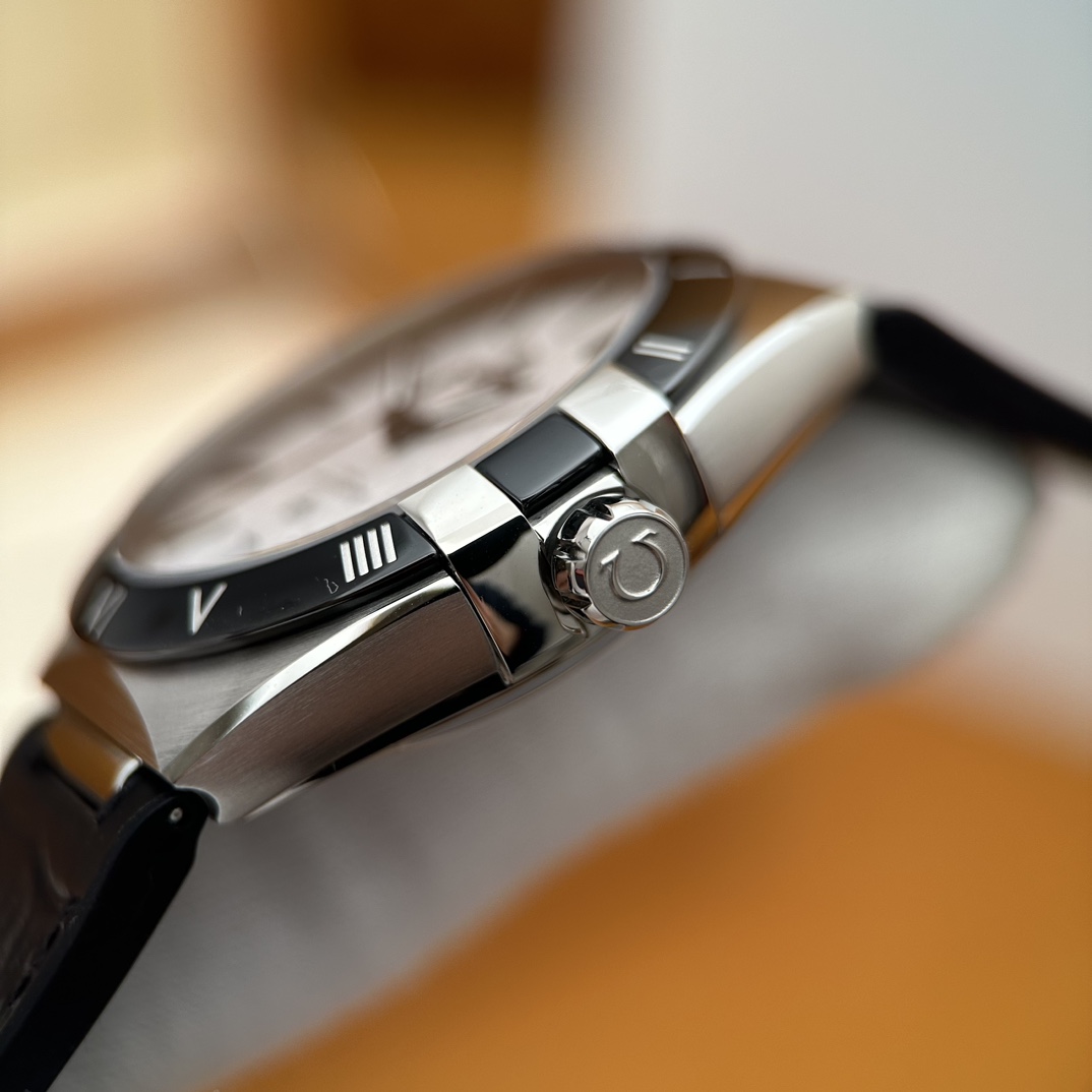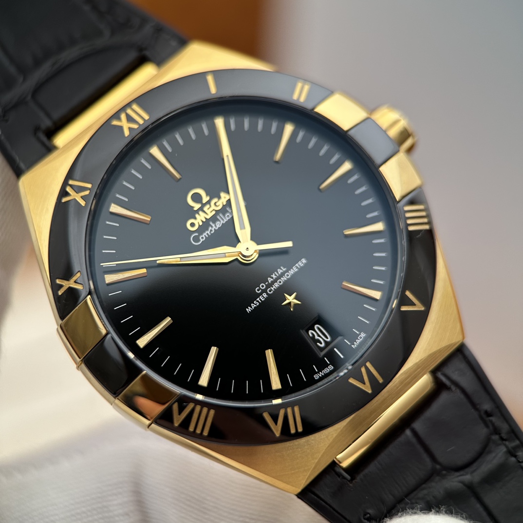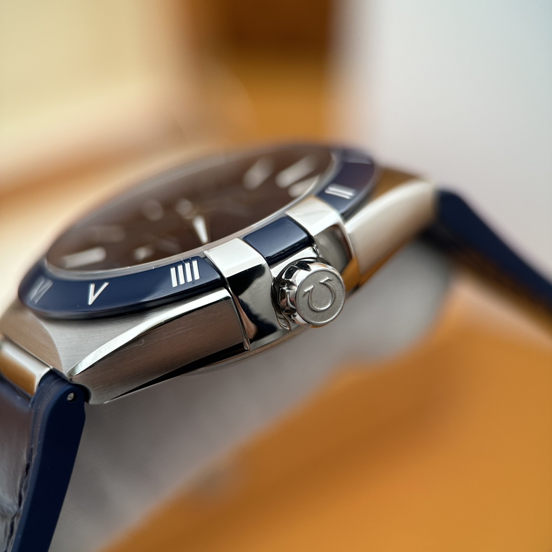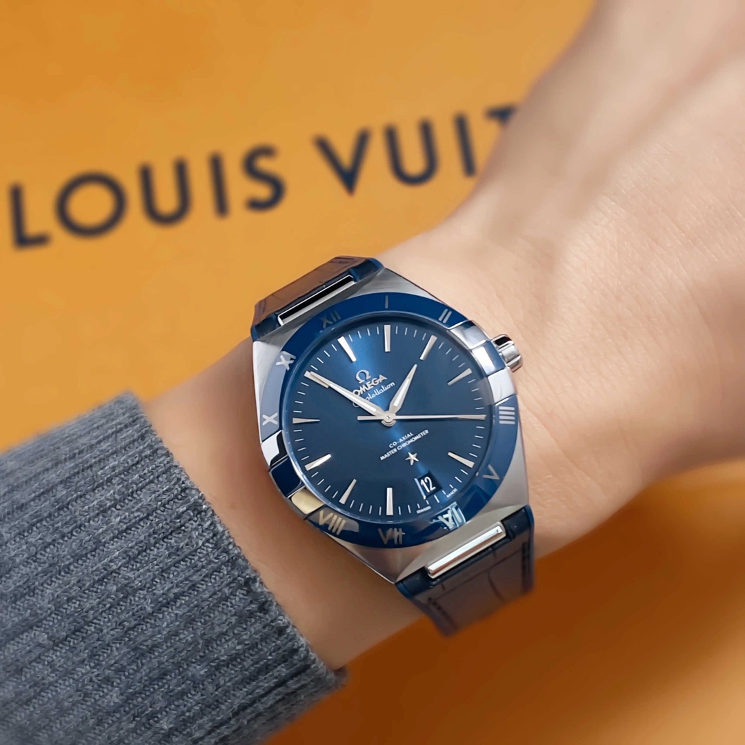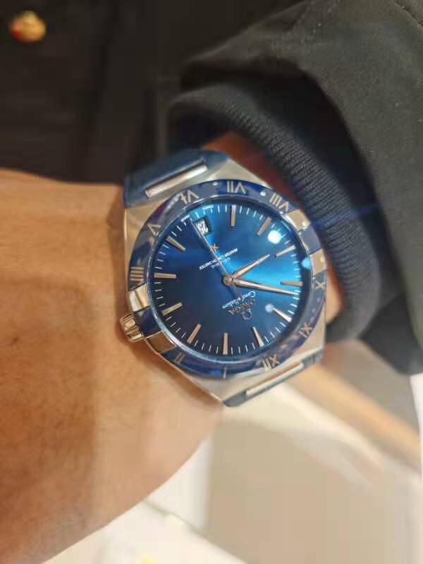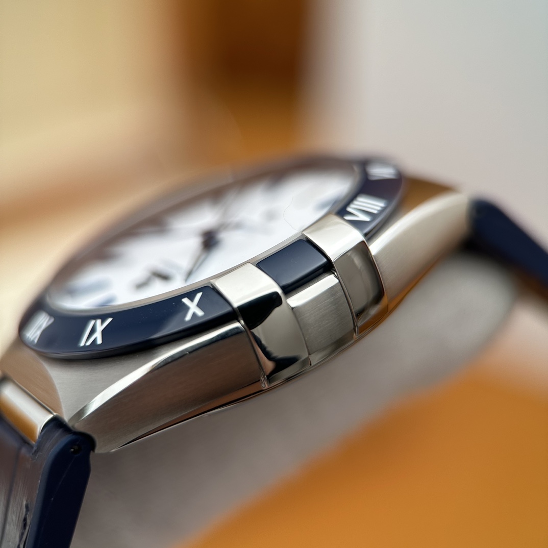 欧米茄星座,造型迷人,黑色陶瓷表圈和罗马数字时标科技感满满。戴上去感觉非常时尚,内部机芯,一切都尽显品质和美感