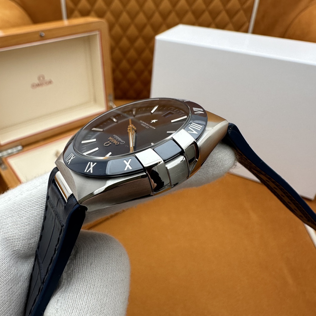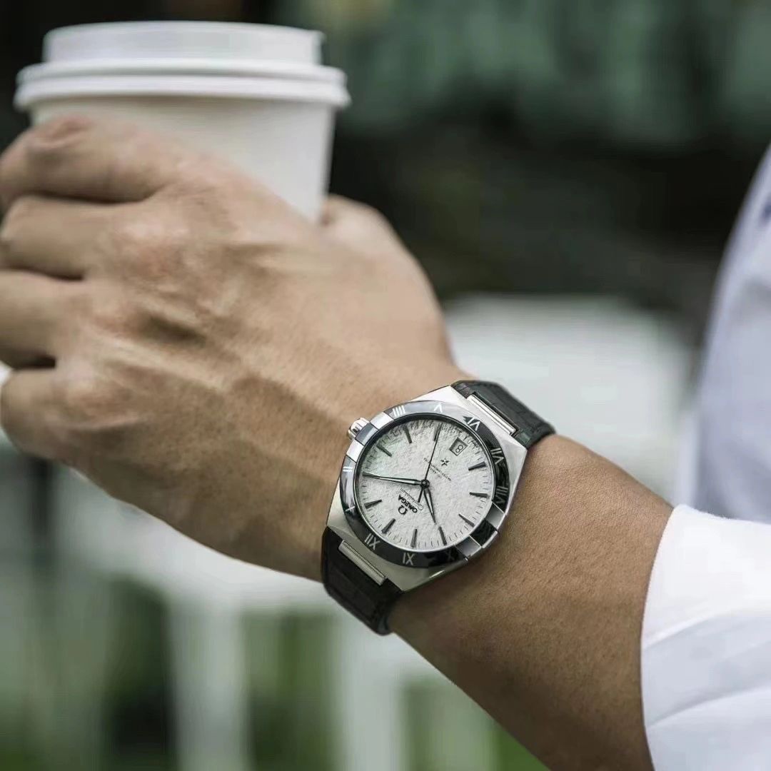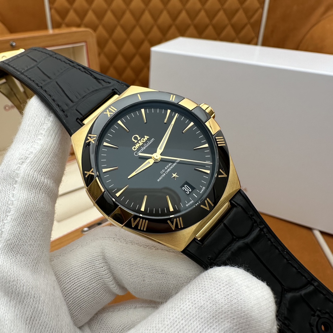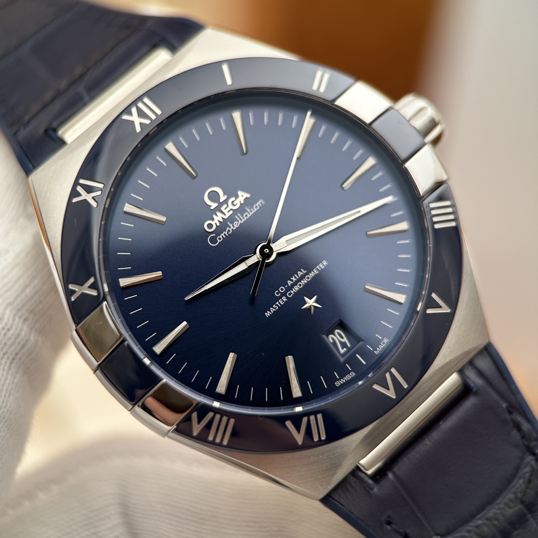 欧米茄星座,造型迷人,黑色陶瓷表圈和罗马数字时标科技感满满。戴上去感觉非常时尚,内部机芯,一切都尽显品质和美感