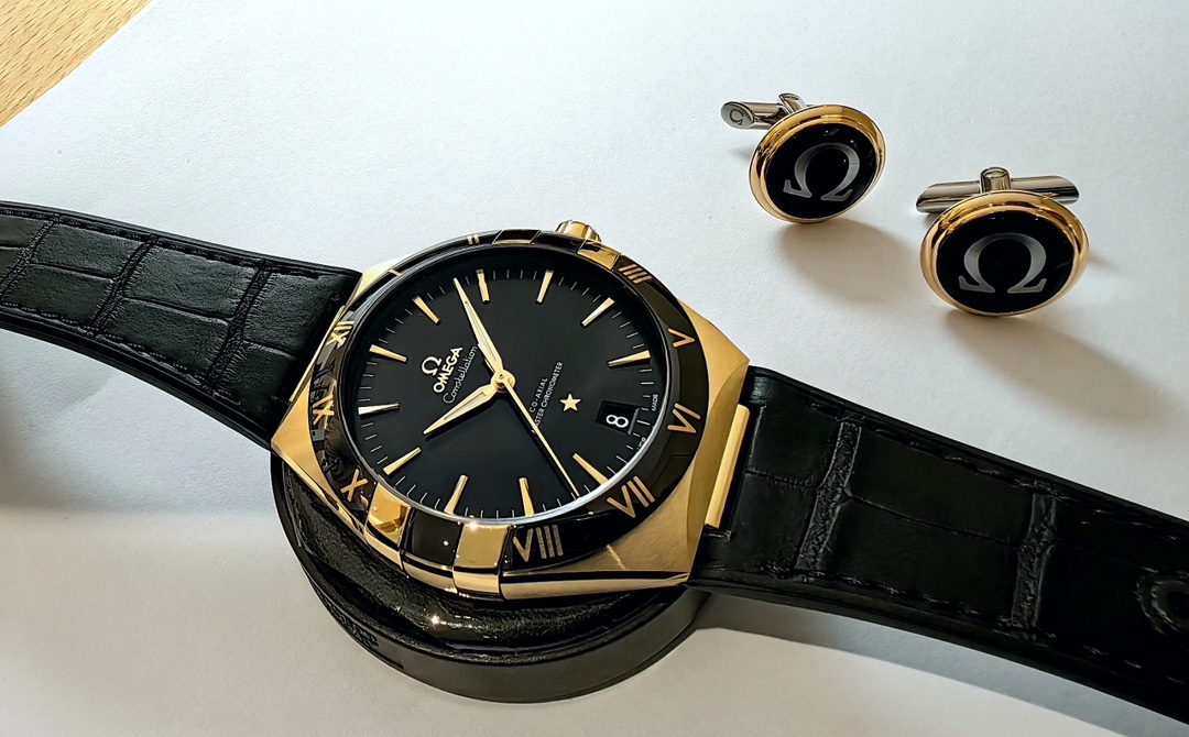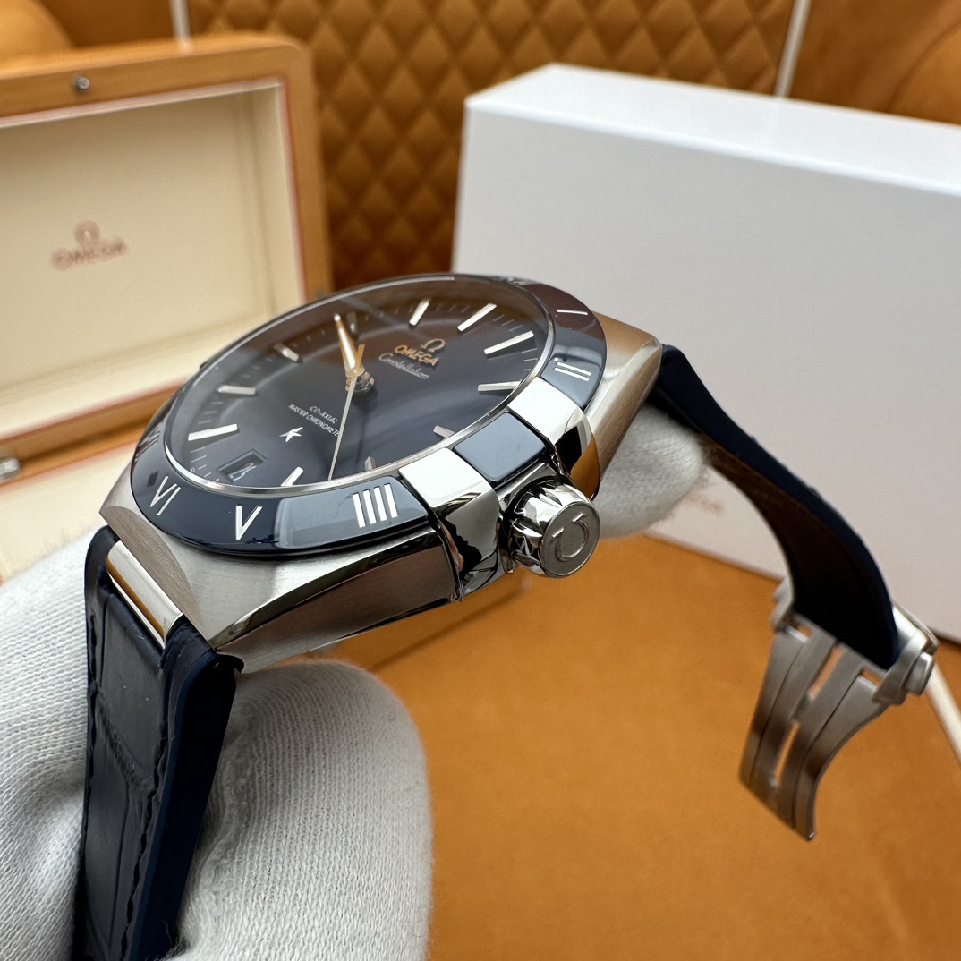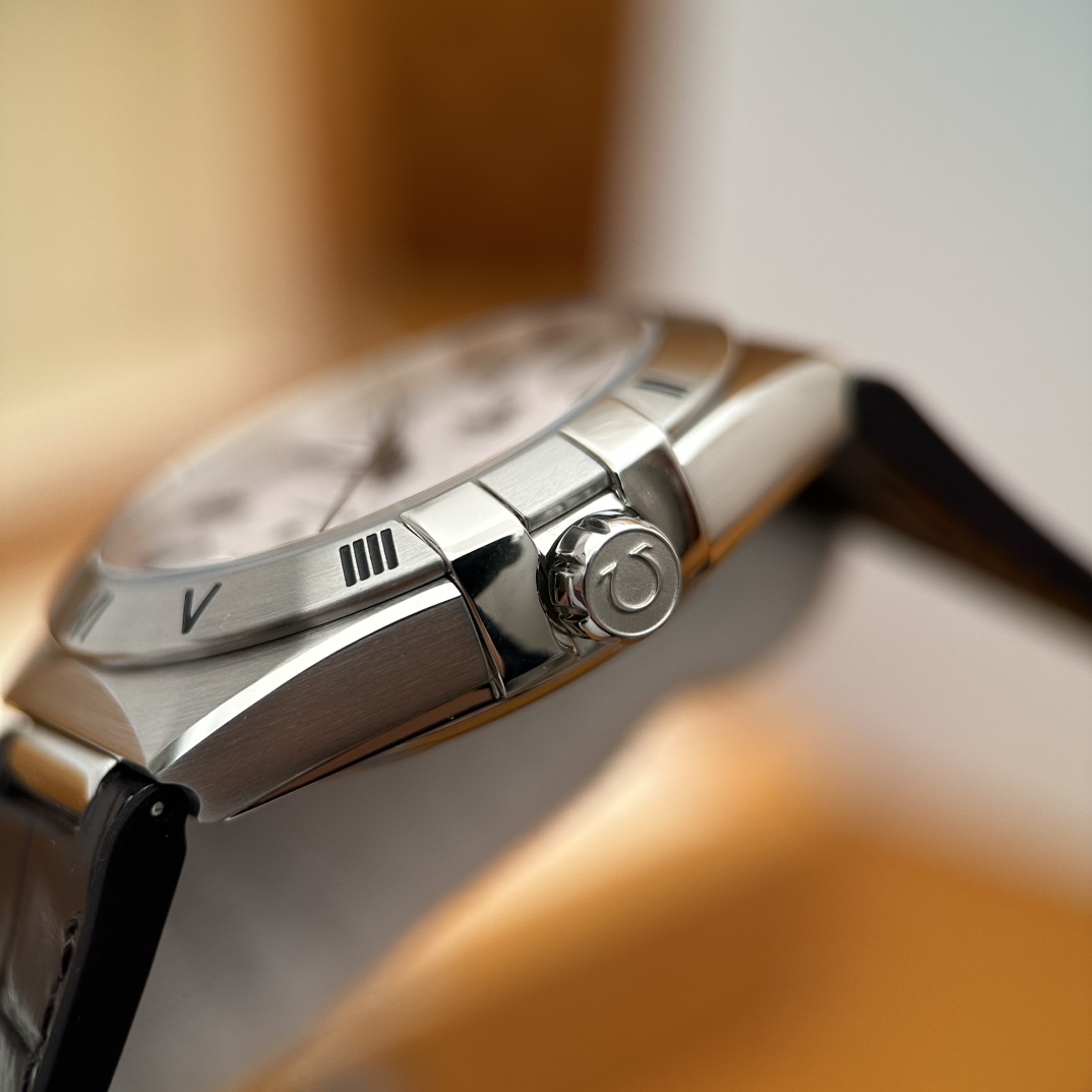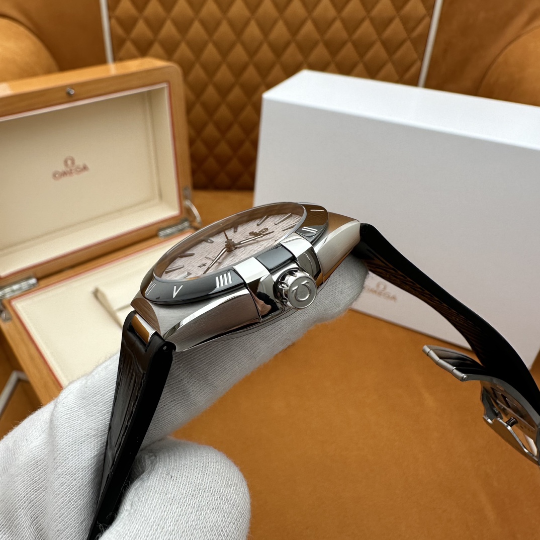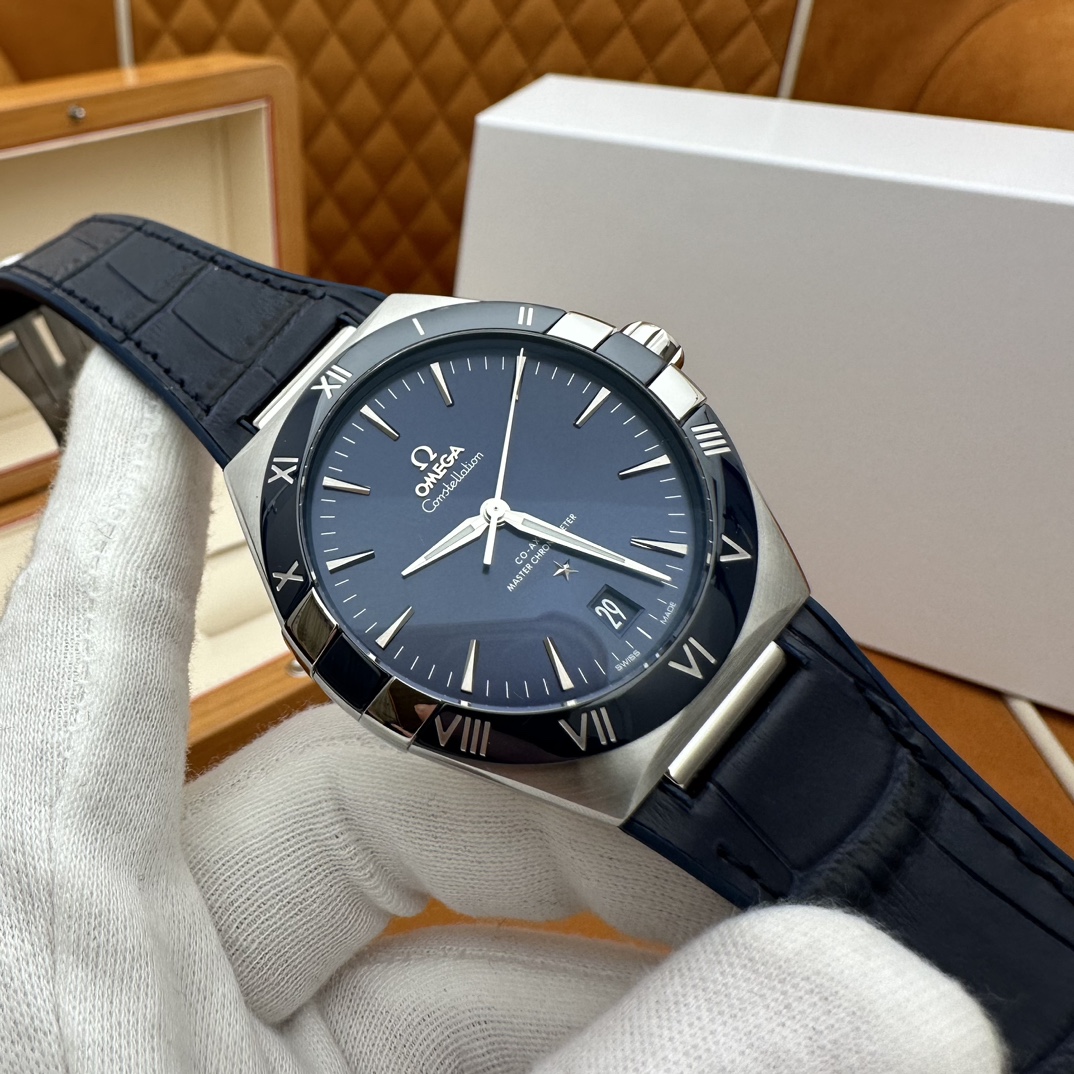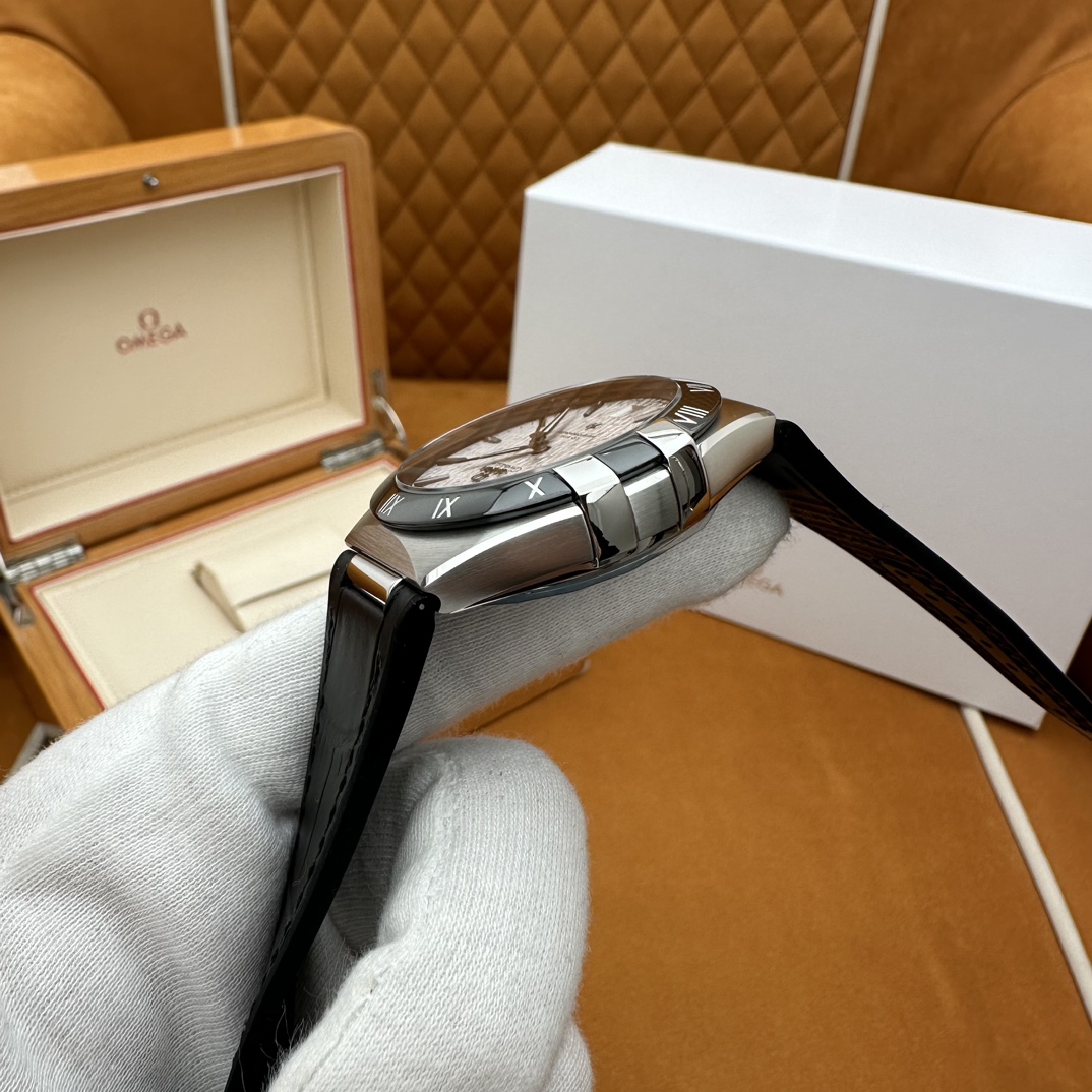 欧米茄星座,造型迷人,黑色陶瓷表圈和罗马数字时标科技感满满。戴上去感觉非常时尚,内部机芯,一切都尽显品质和美感