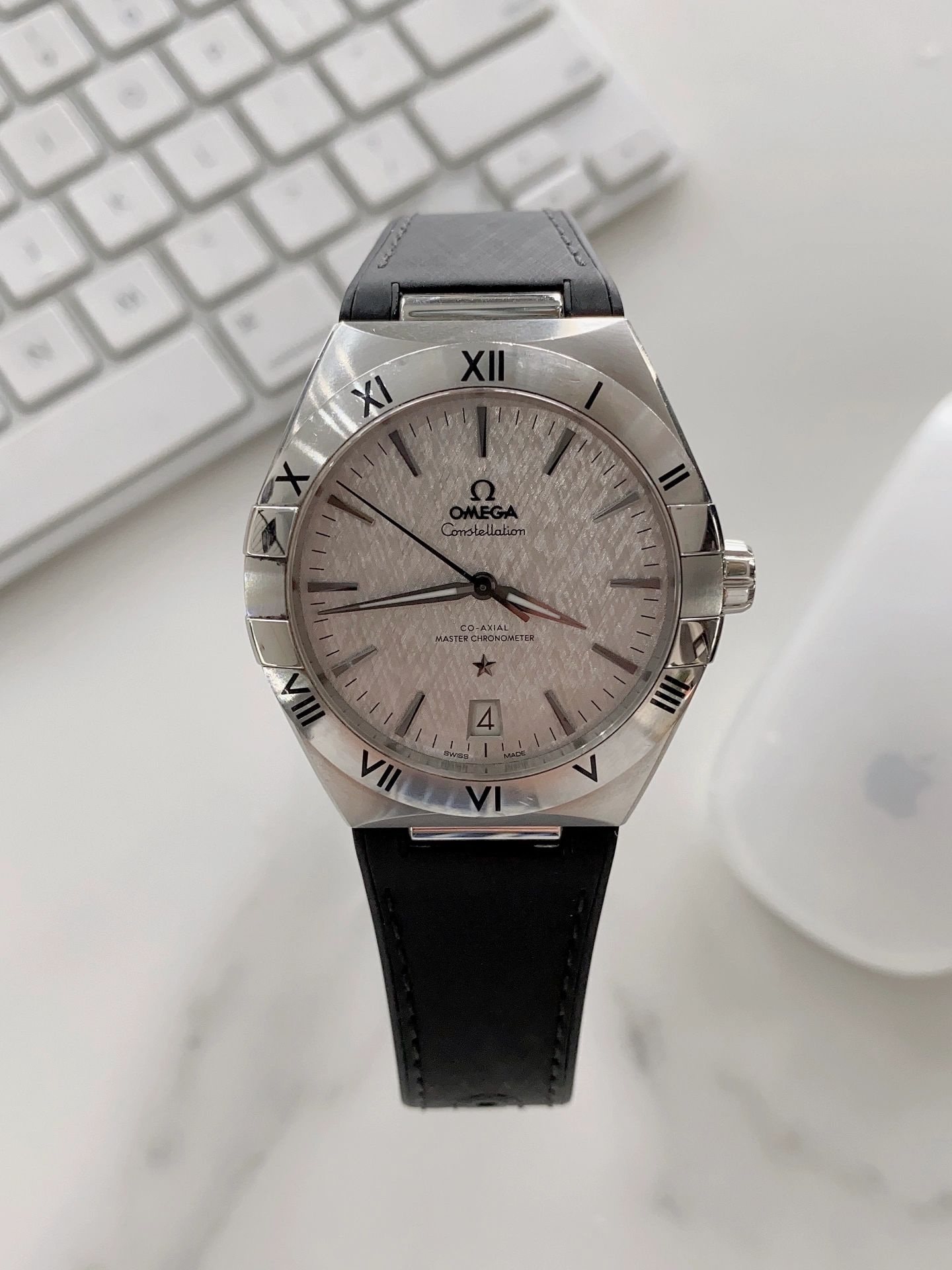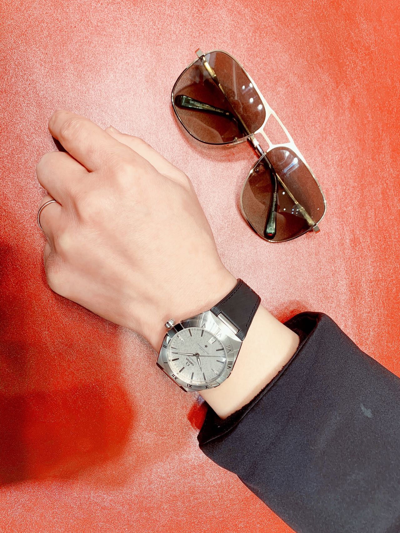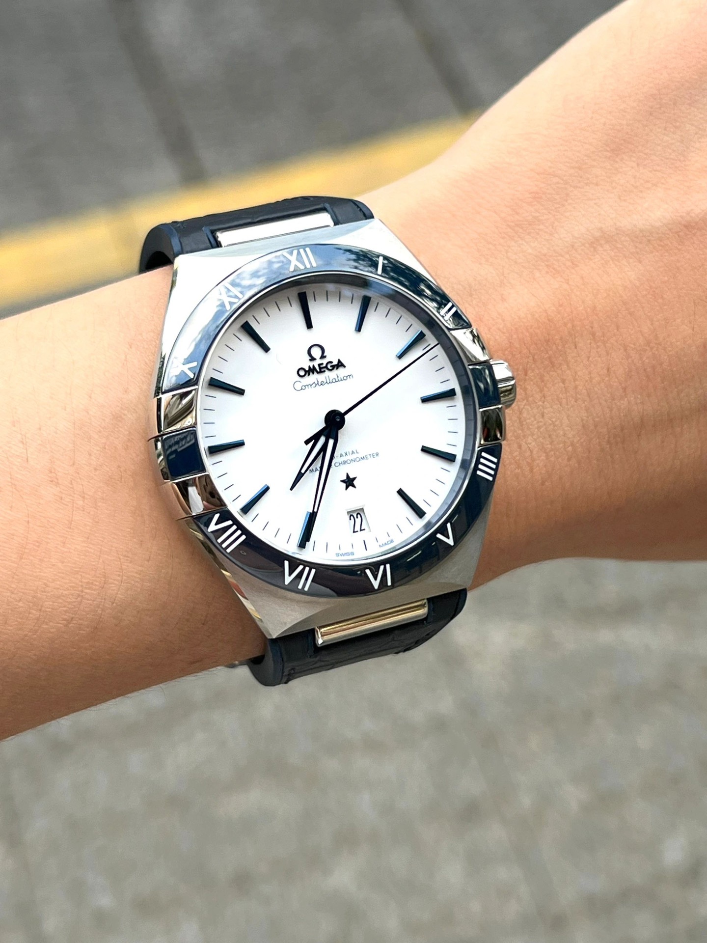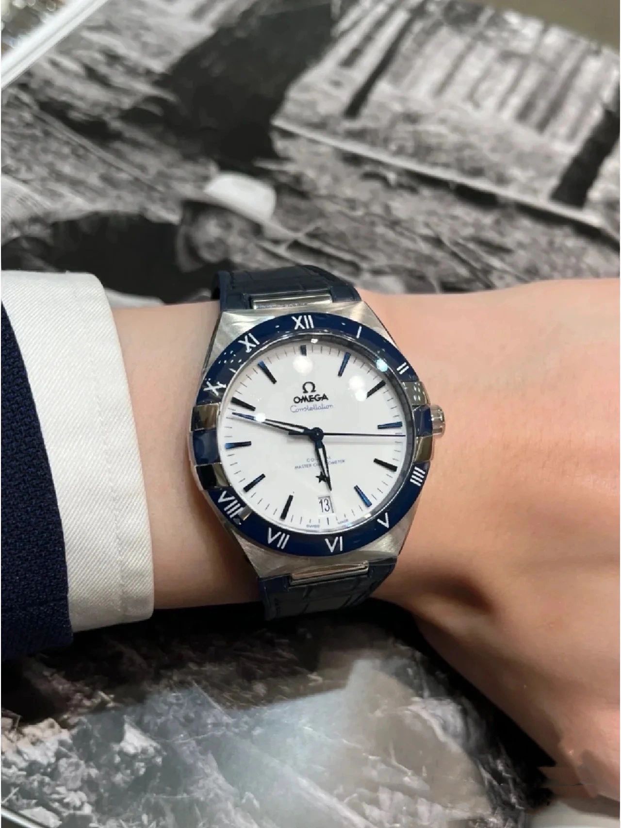 欧米茄星座,造型迷人,黑色陶瓷表圈和罗马数字时标科技感满满。戴上去感觉非常时尚,内部机芯,一切都尽显品质和美感