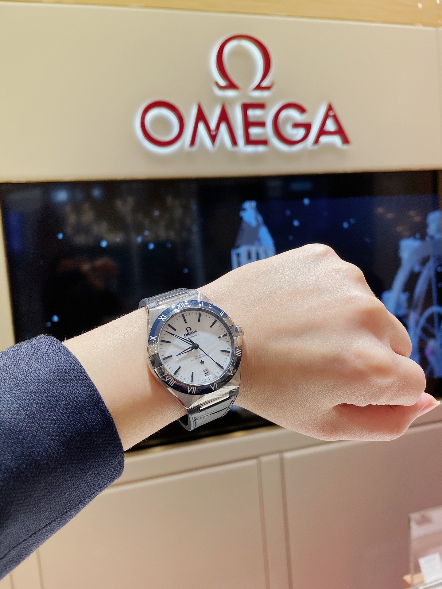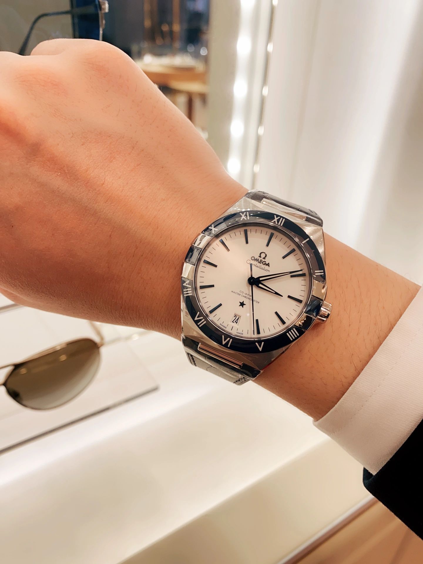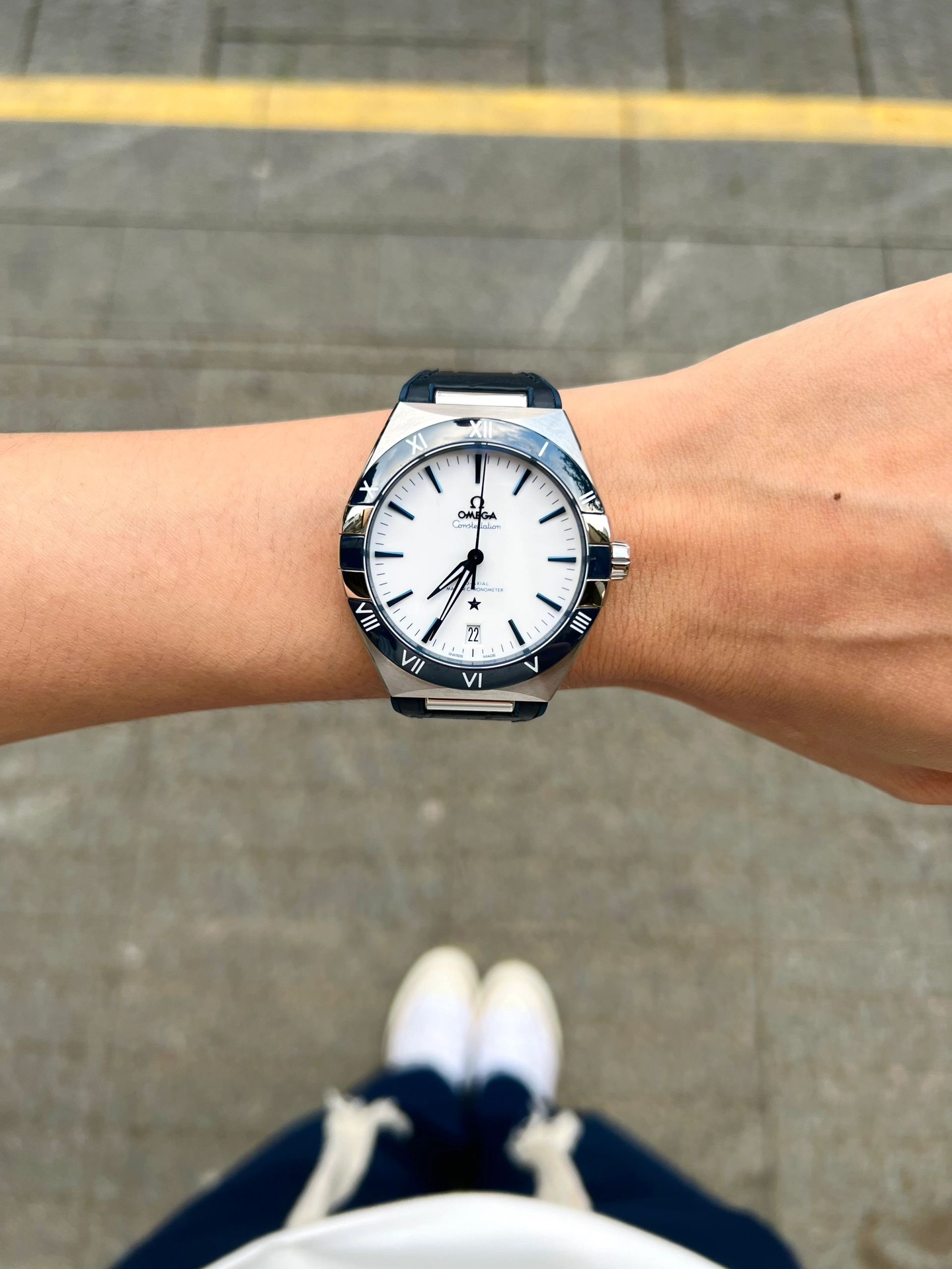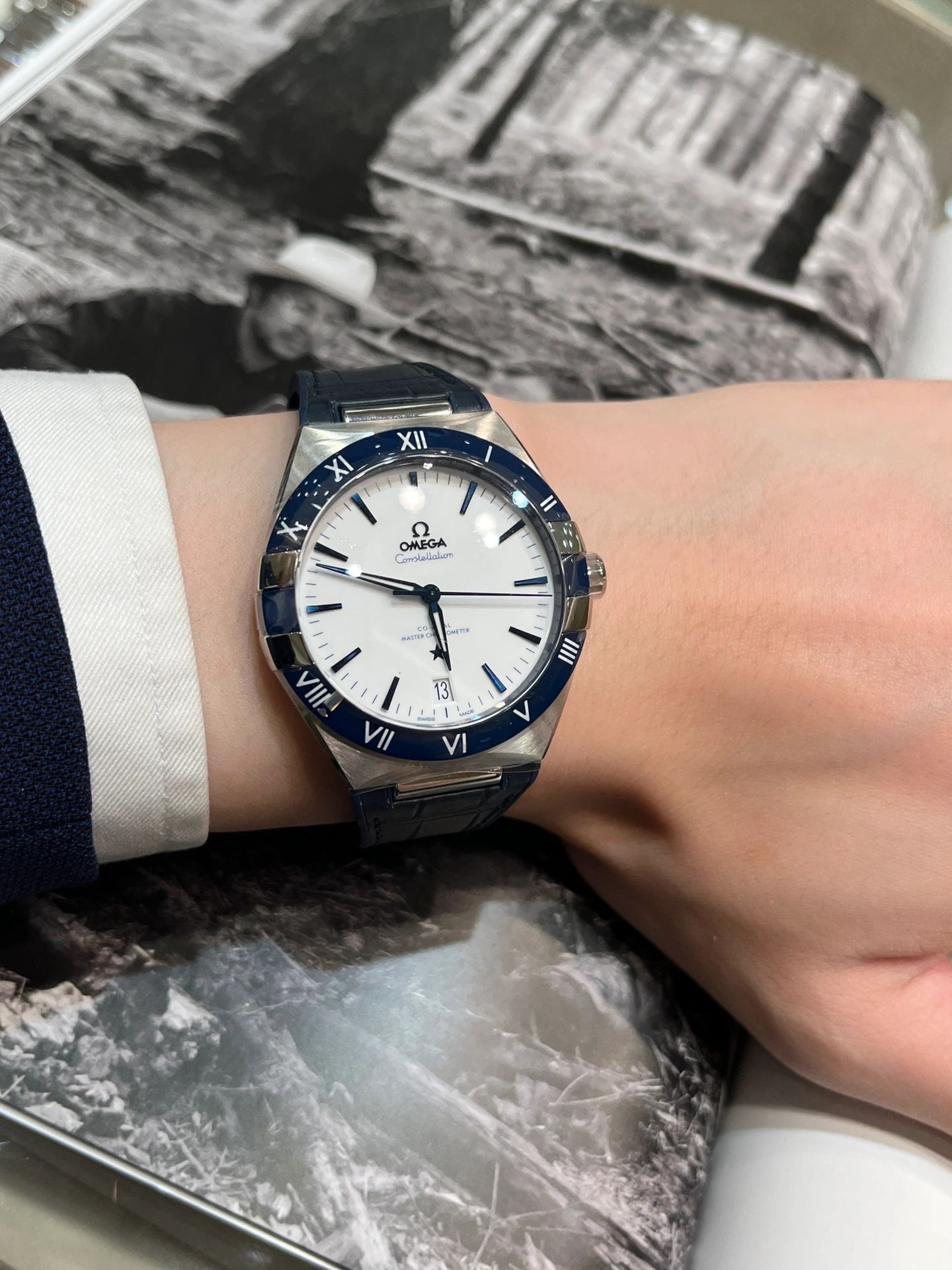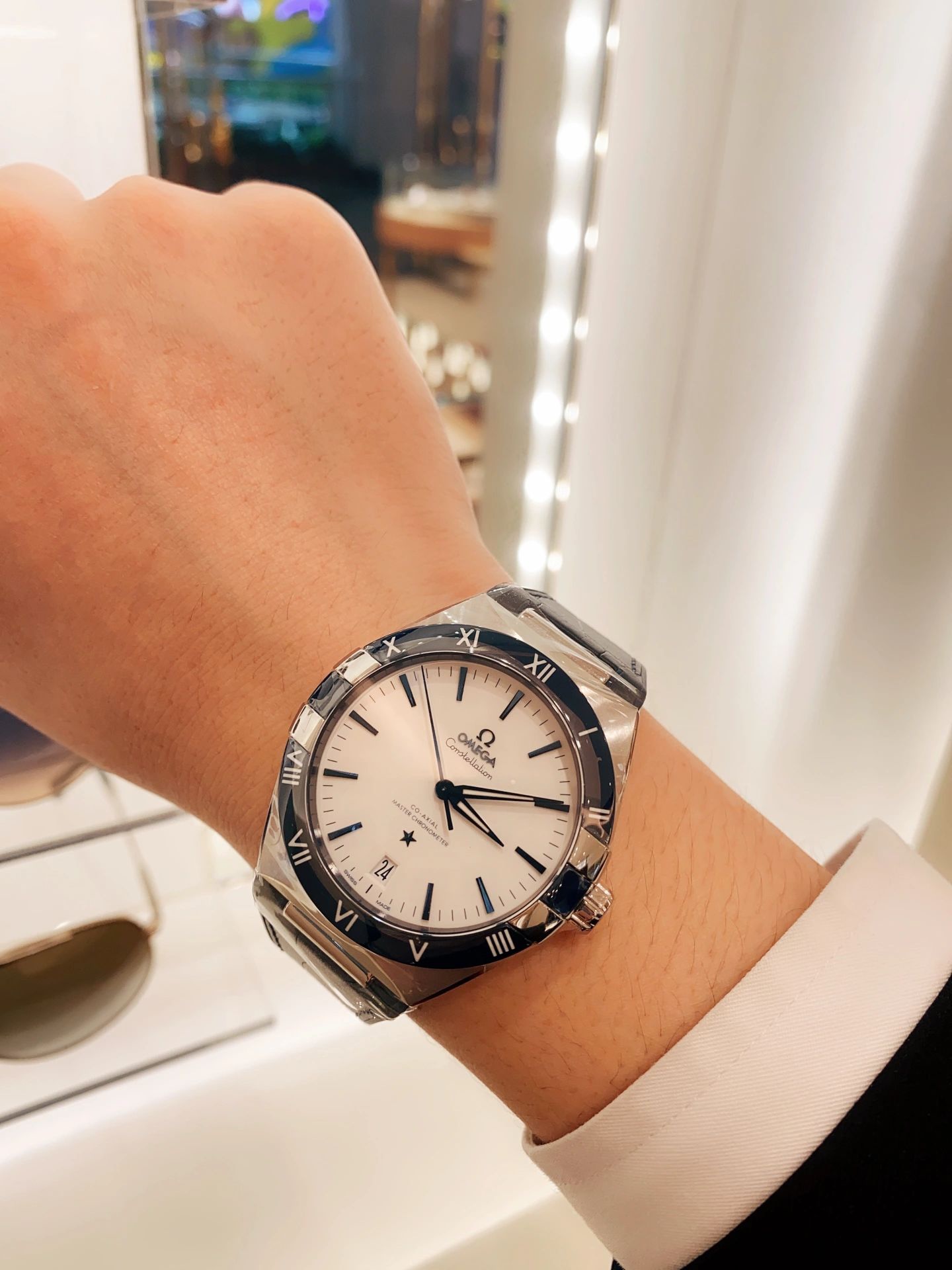 欧米茄星座,造型迷人,黑色陶瓷表圈和罗马数字时标科技感满满。戴上去感觉非常时尚,内部机芯,一切都尽显品质和美感