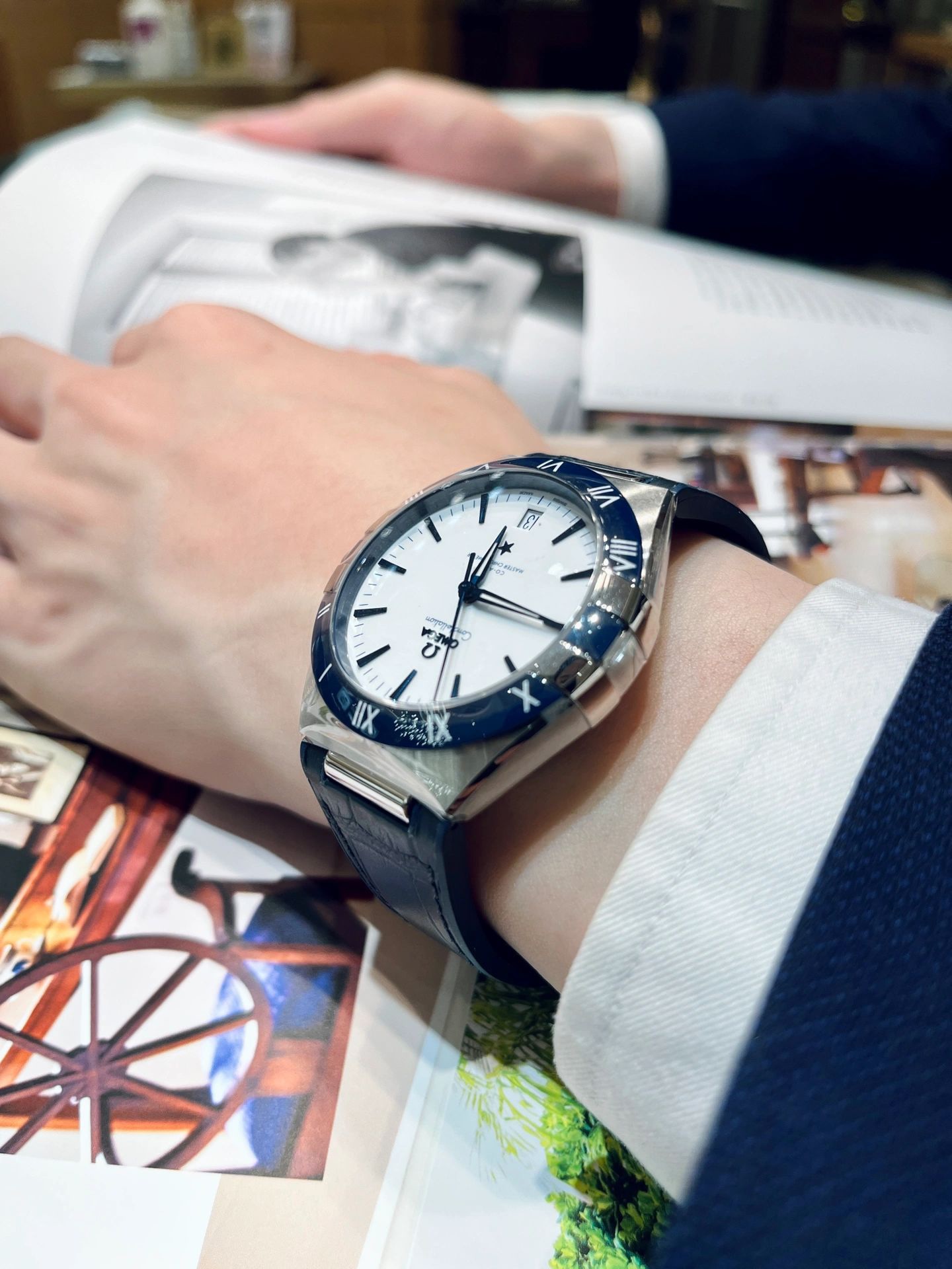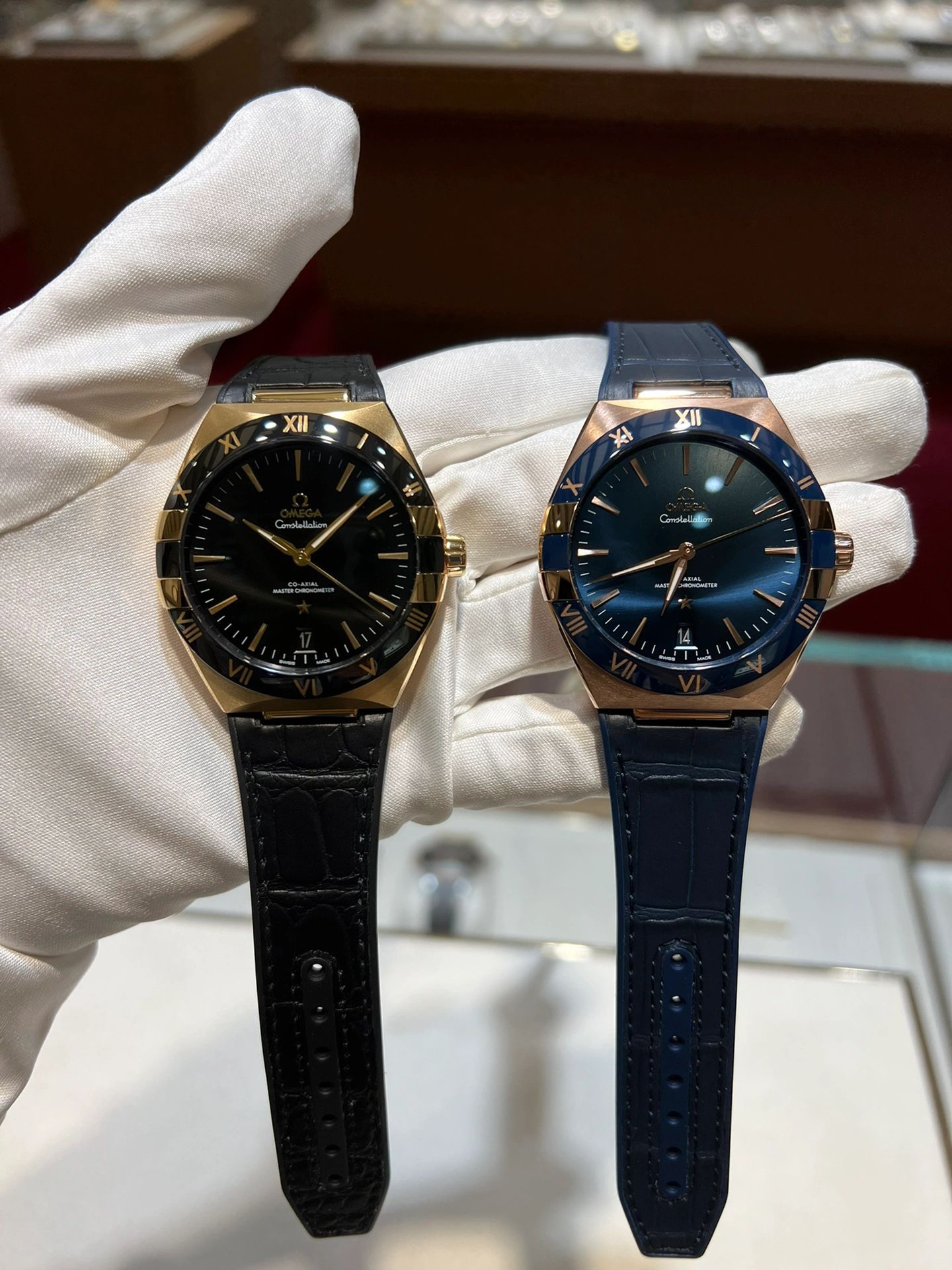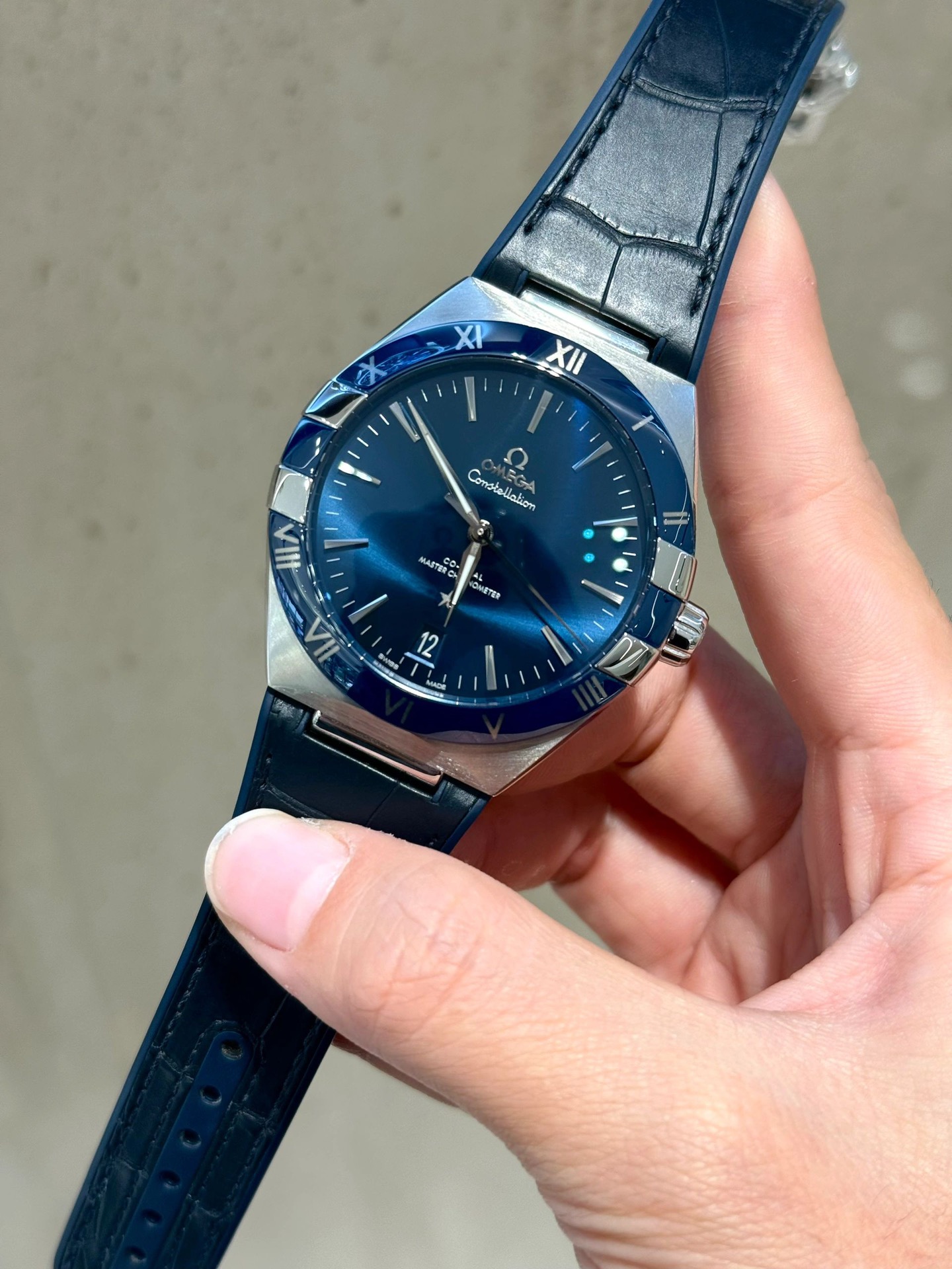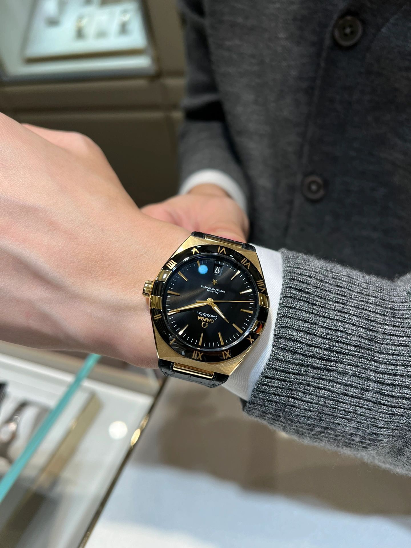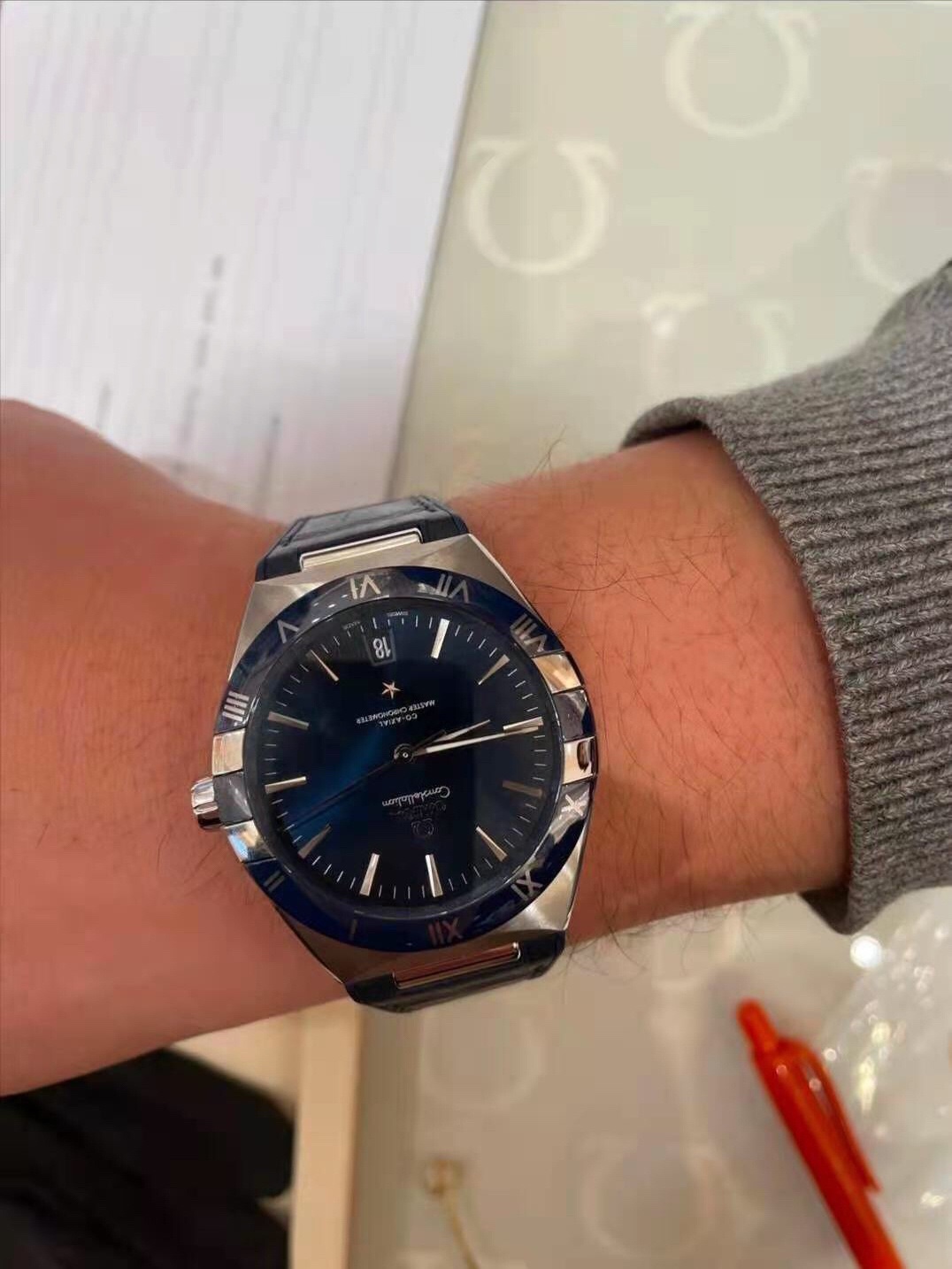 欧米茄星座,造型迷人,黑色陶瓷表圈和罗马数字时标科技感满满。戴上去感觉非常时尚,内部机芯,一切都尽显品质和美感