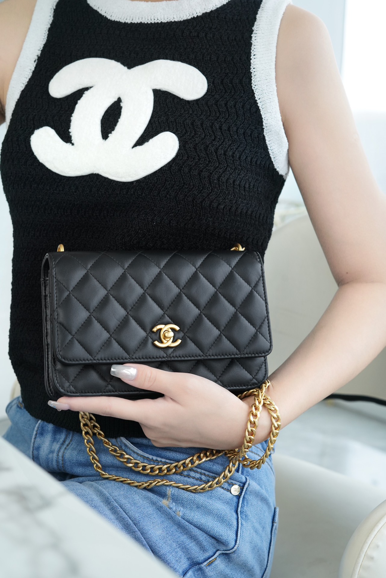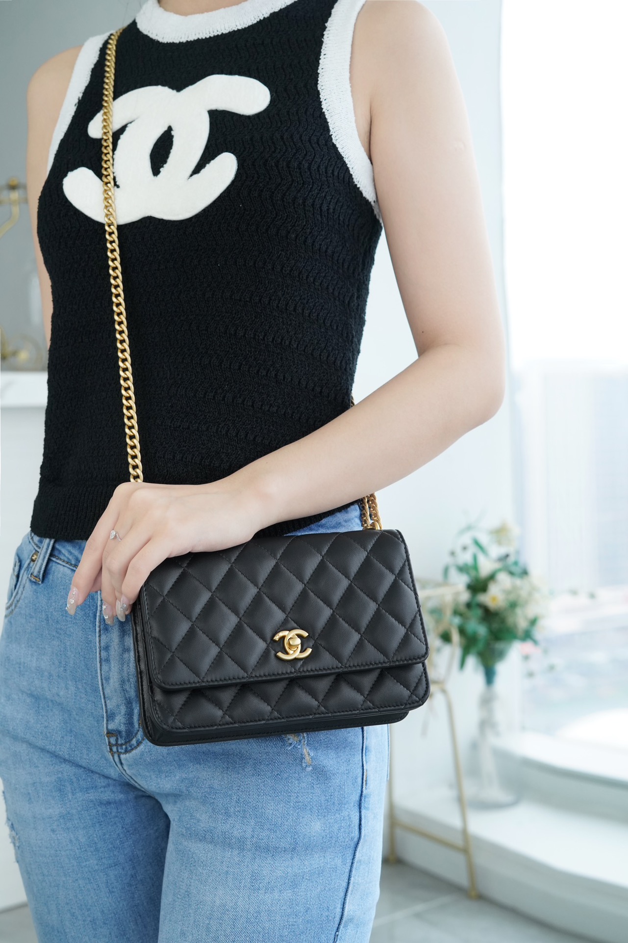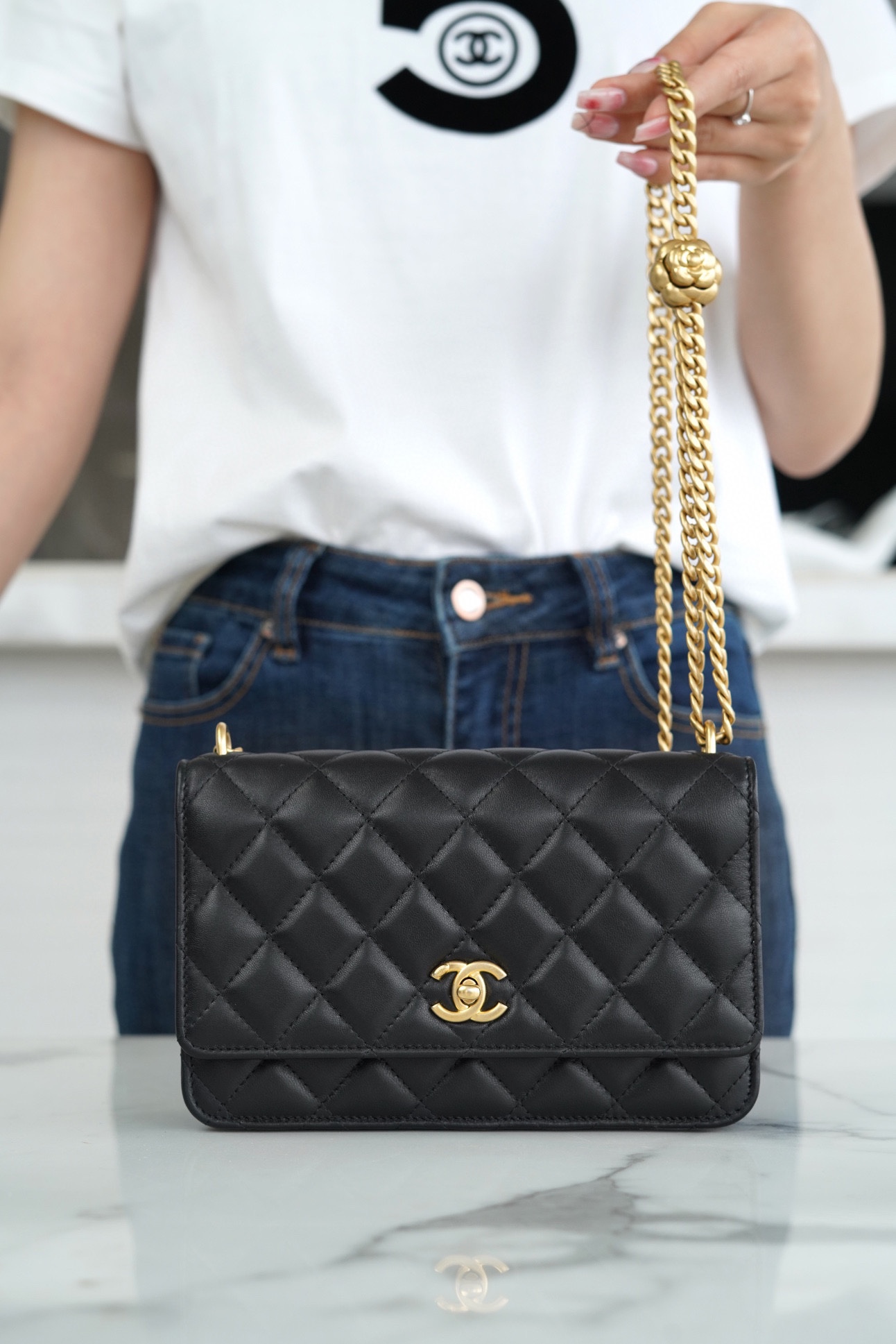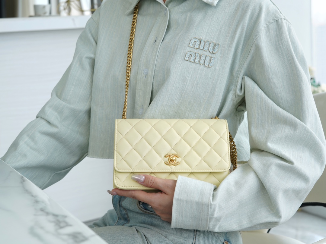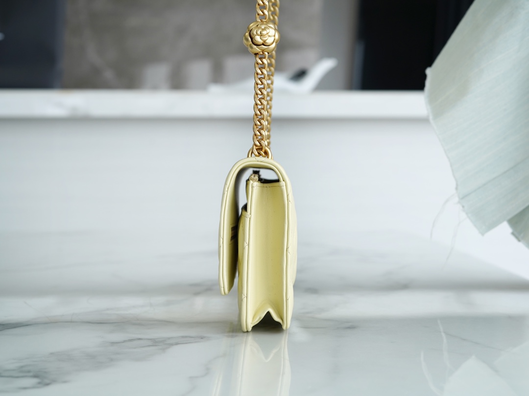 ???????????? 23S春夏新款 山茶花woc 本季的大爆款 ,经典的woc包型搭配可调节“山茶花”扣,做旧双C ????????设计,五金配以简单的素金链,打破了经典的链条设计,满满的复古感,经典又与众不同~ 尺寸:12.3*19.2*3.5cm ??:2323