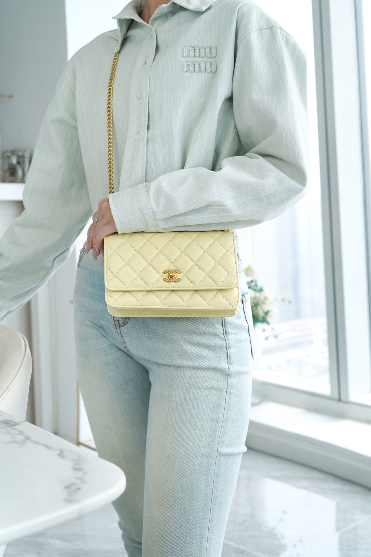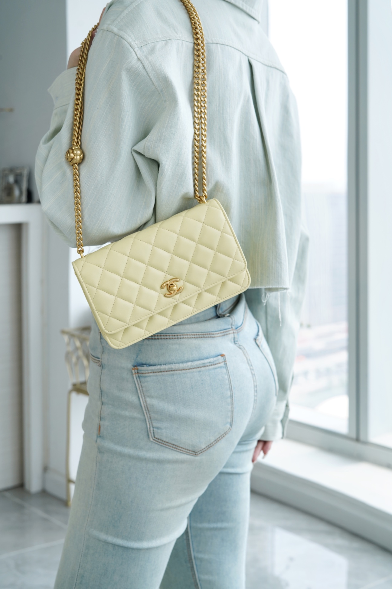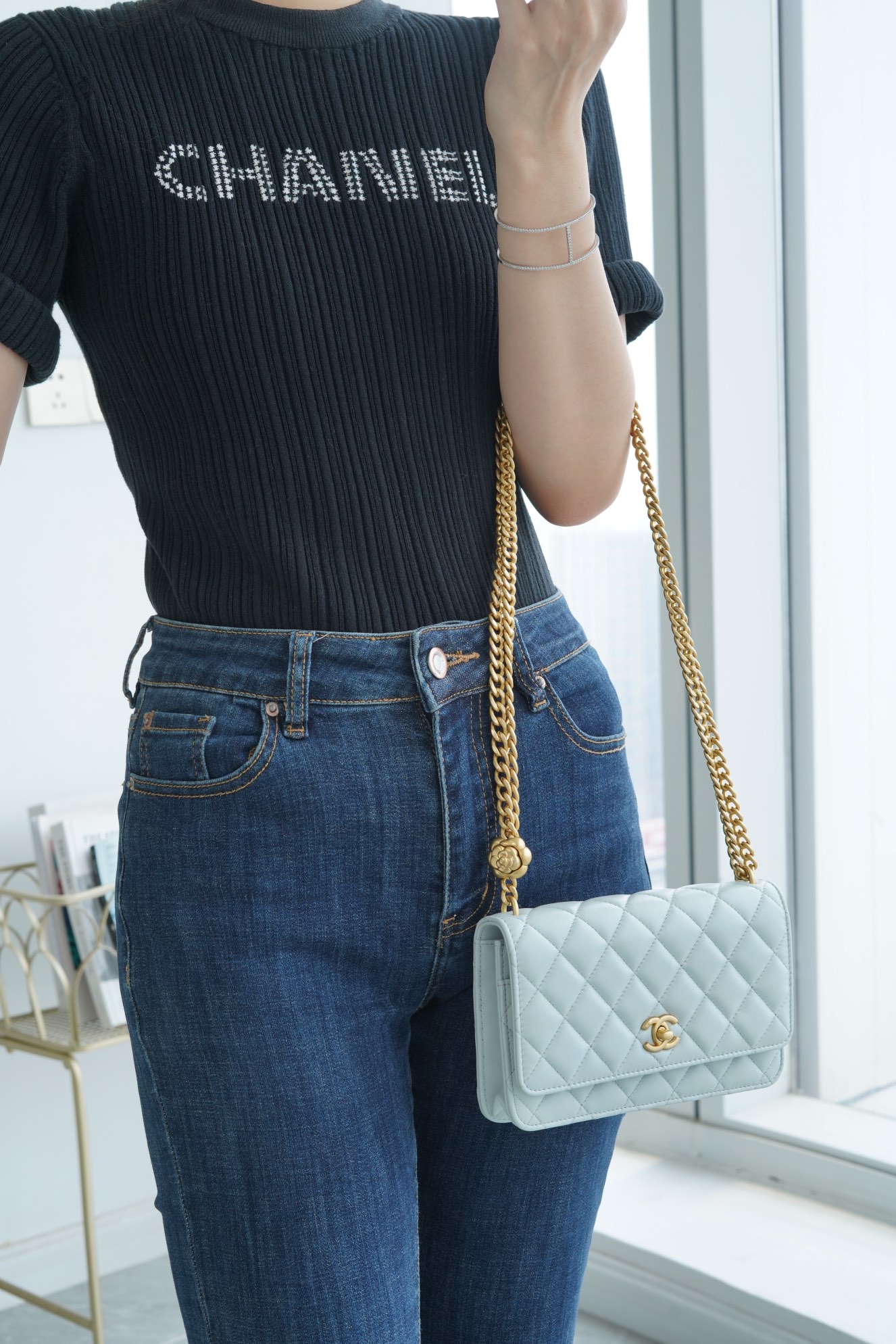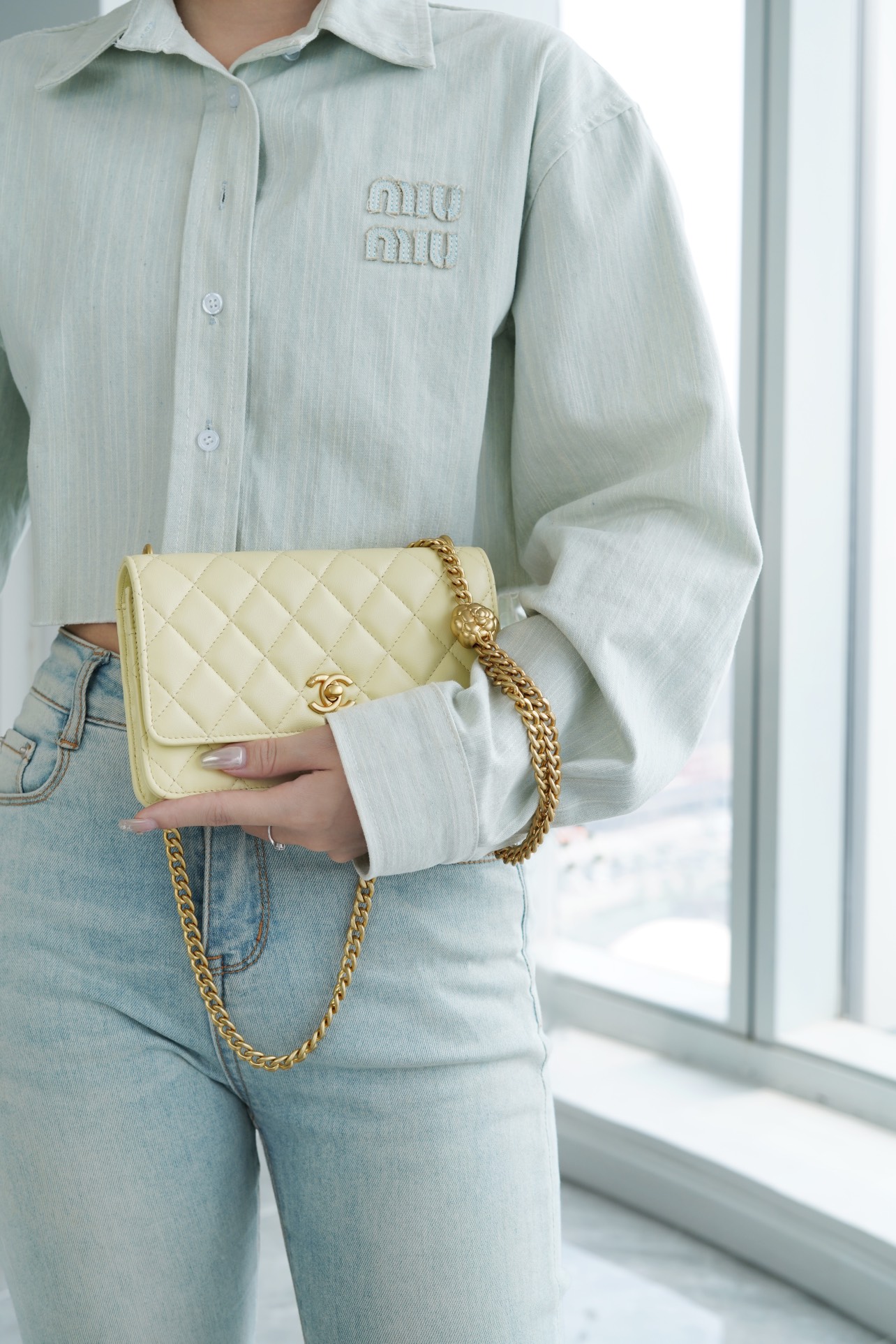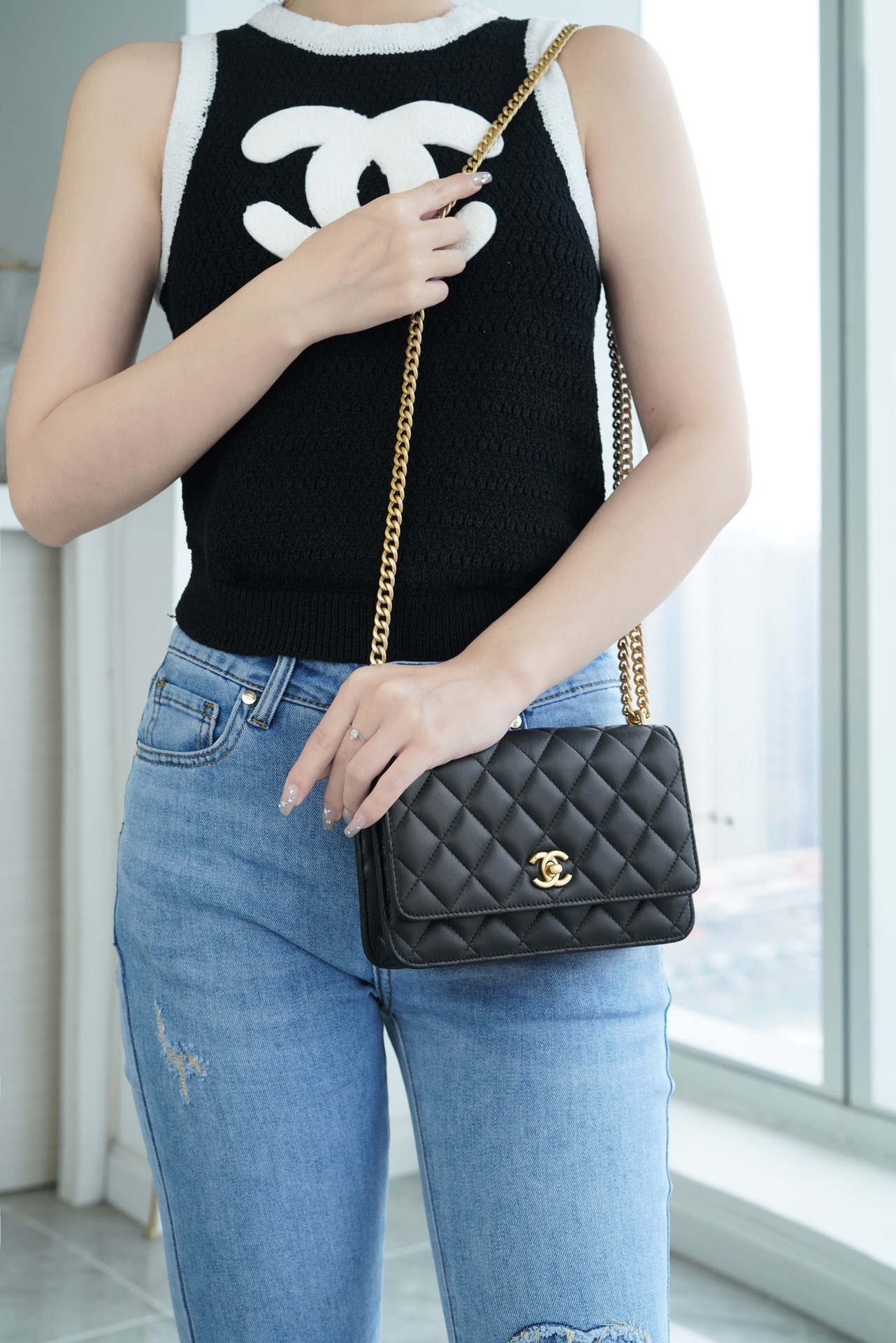 ???????????? 23S春夏新款 山茶花woc 本季的大爆款 ,经典的woc包型搭配可调节“山茶花”扣,做旧双C ????????设计,五金配以简单的素金链,打破了经典的链条设计,满满的复古感,经典又与众不同~ 尺寸:12.3*19.2*3.5cm ??:2323