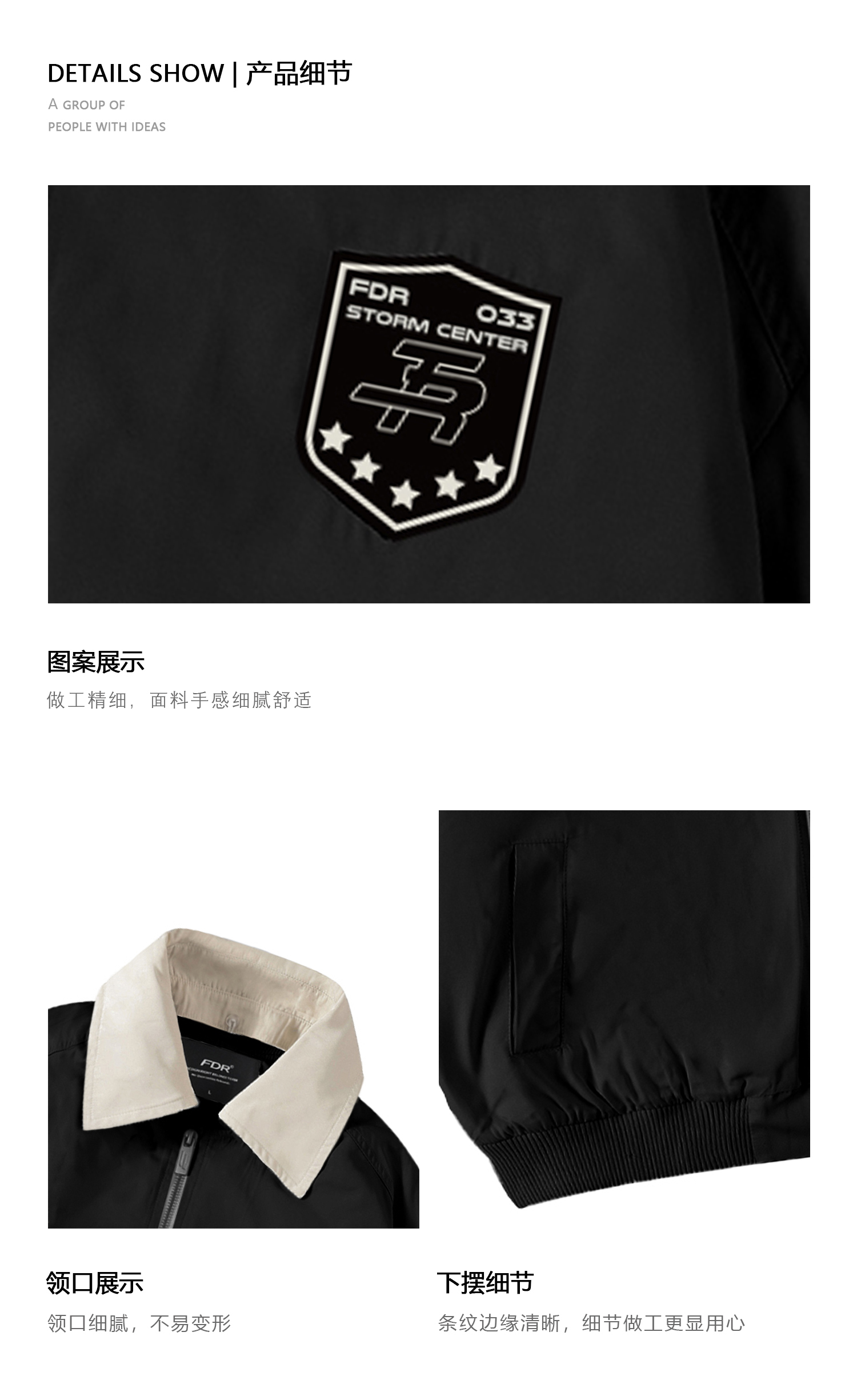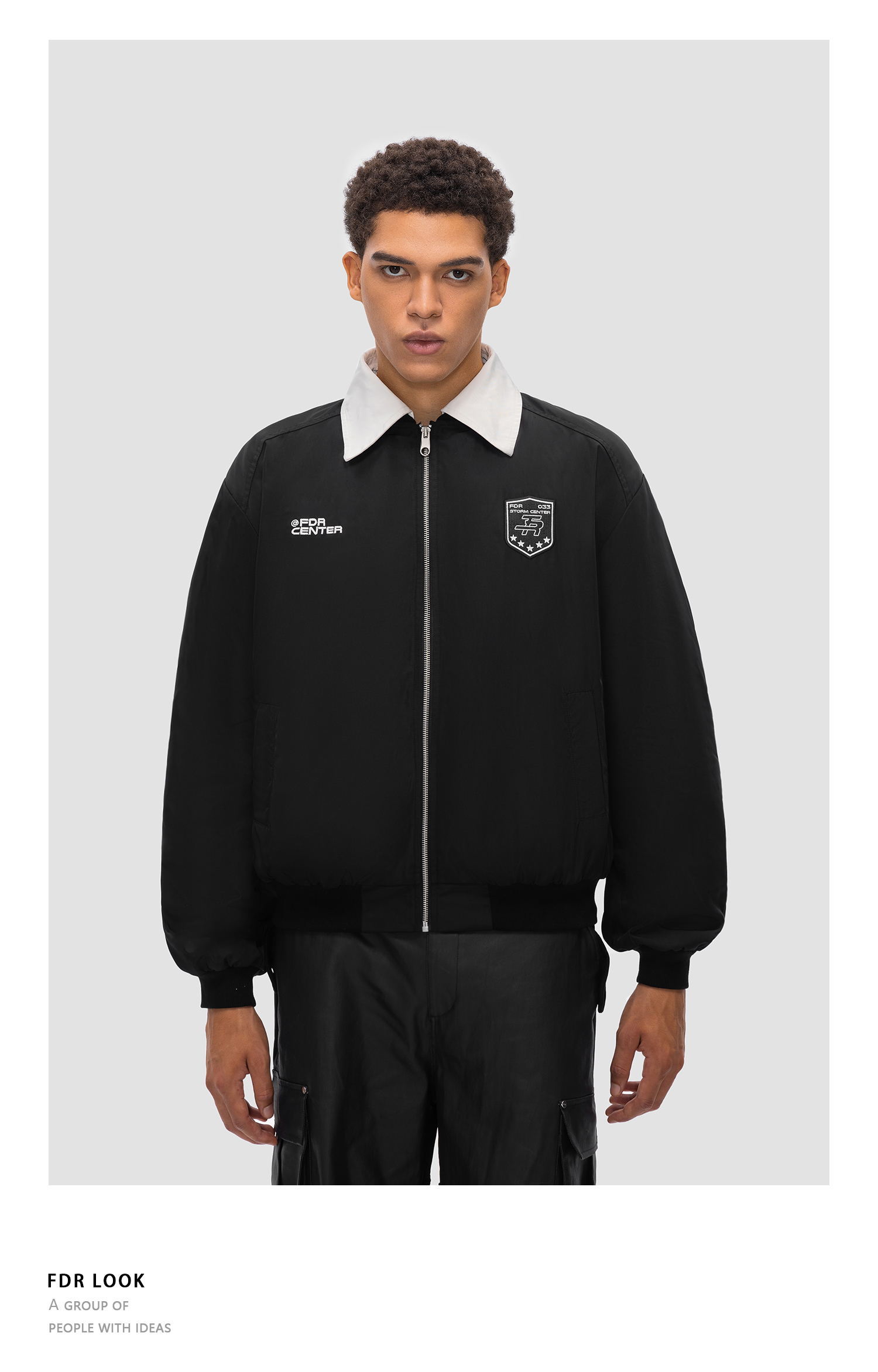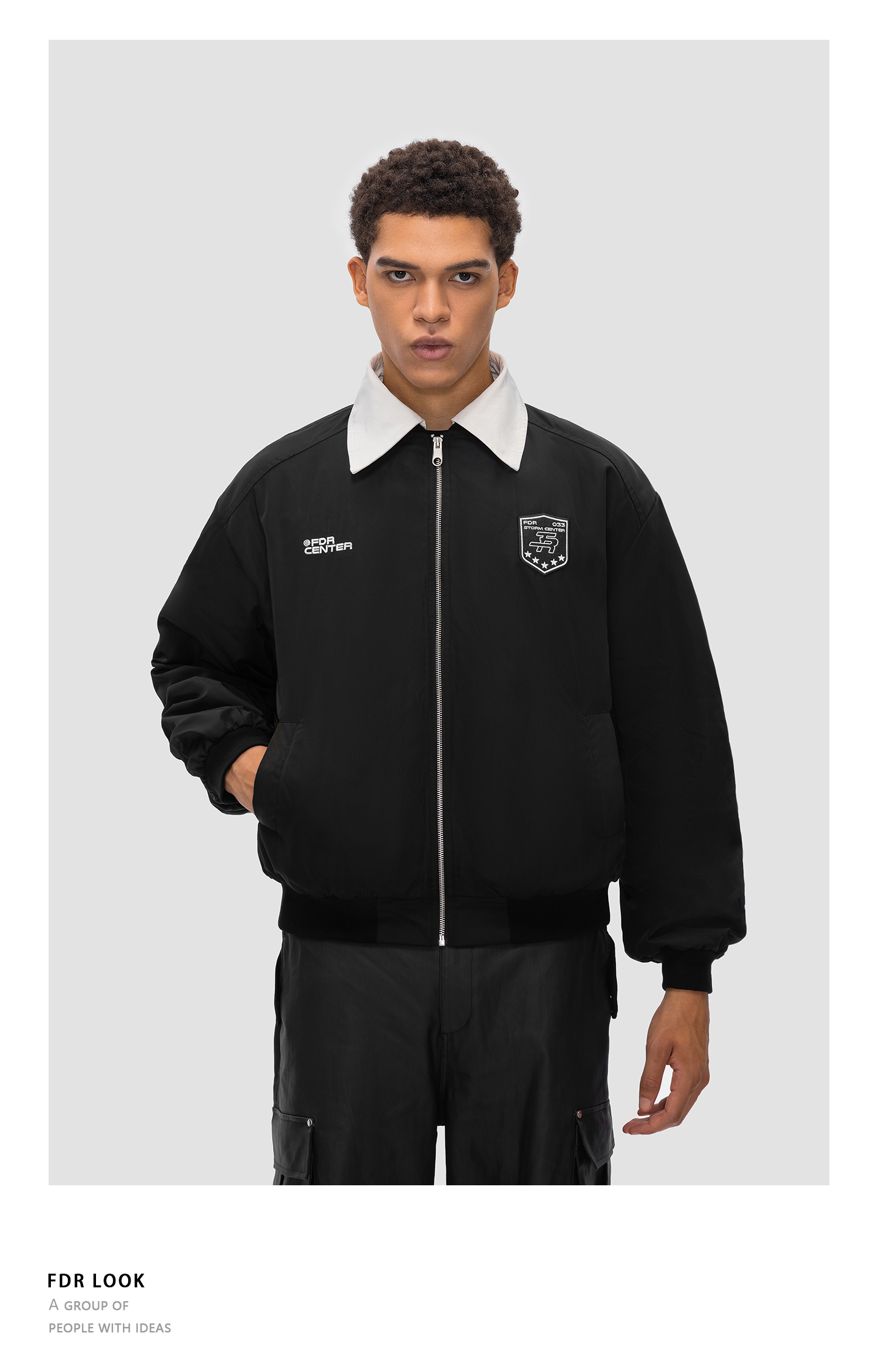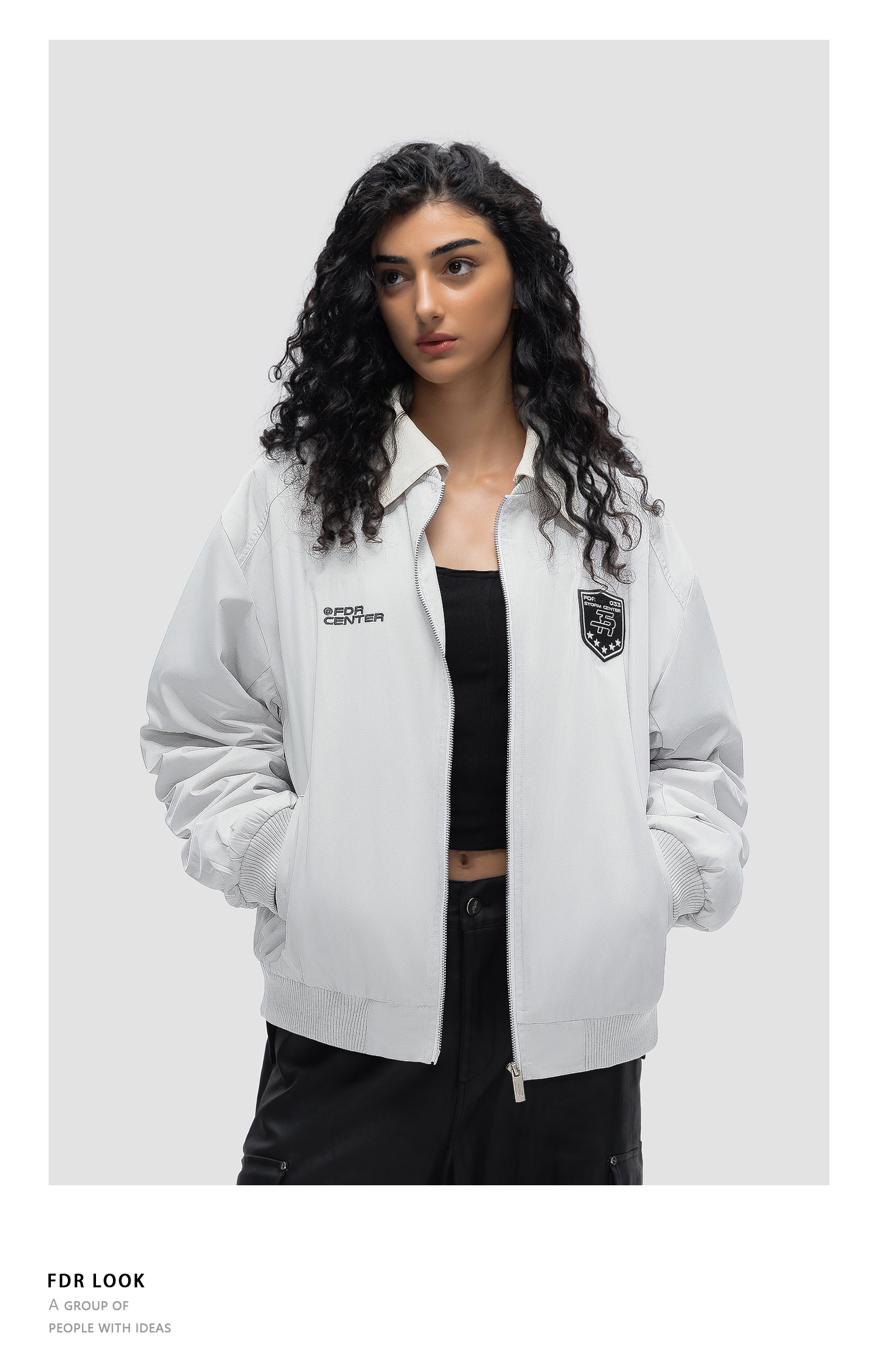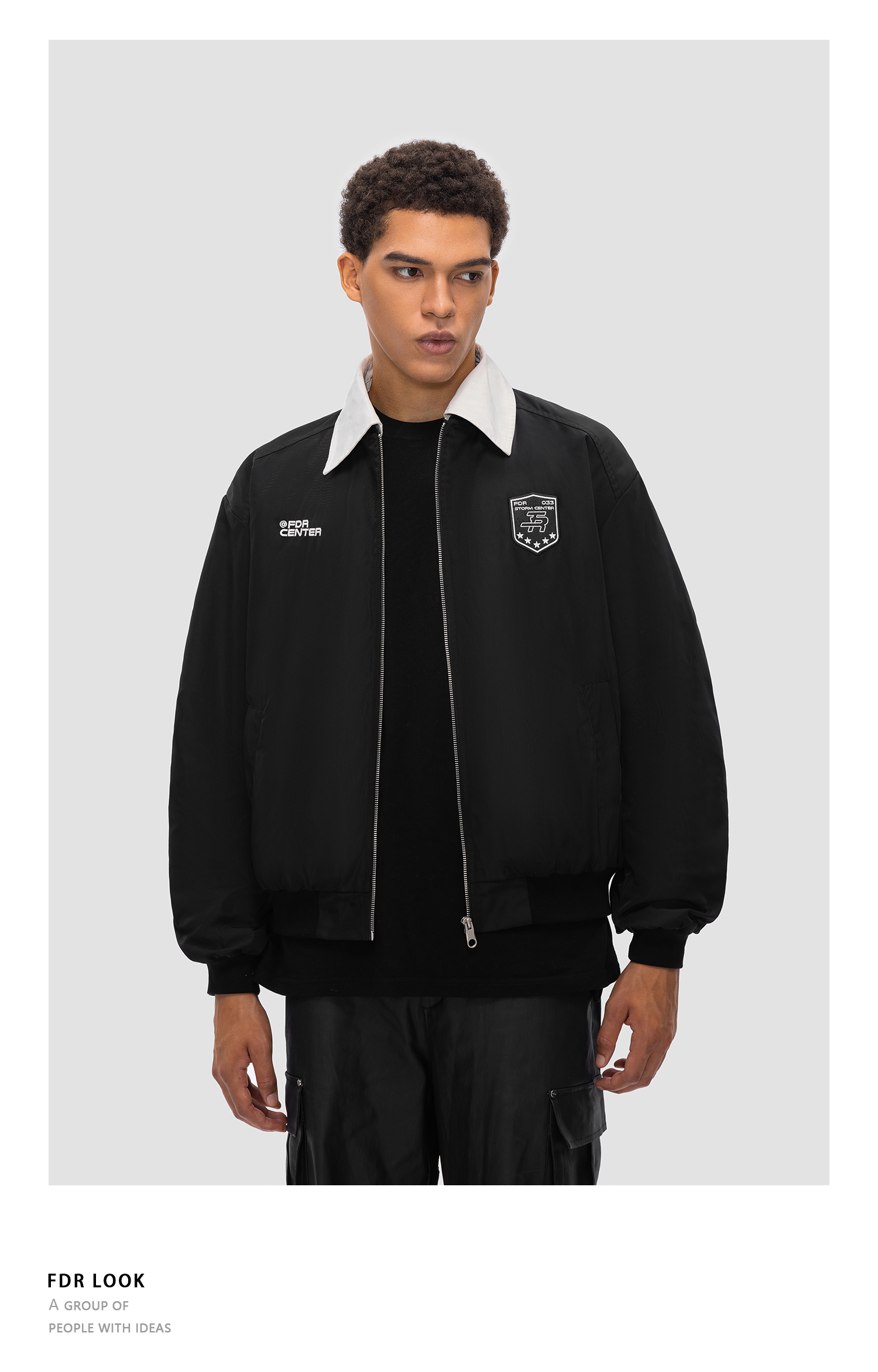 FDR原创国潮新款美式复古短款飞行员夹克男女秋冬情侣装翻领外套