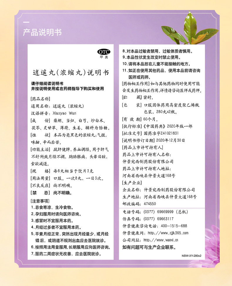 仲景逍遥丸560丸2盒疏肝健脾养血调经肝气不舒黄褐斑女月经不调