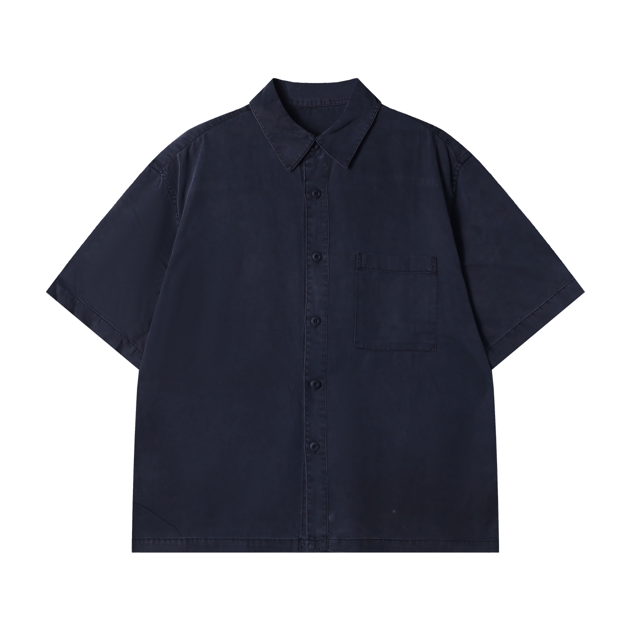 252129夏季高级感新款潮牌纯色牛仔口袋短袖衬衫经典百搭简约休闲衬衣