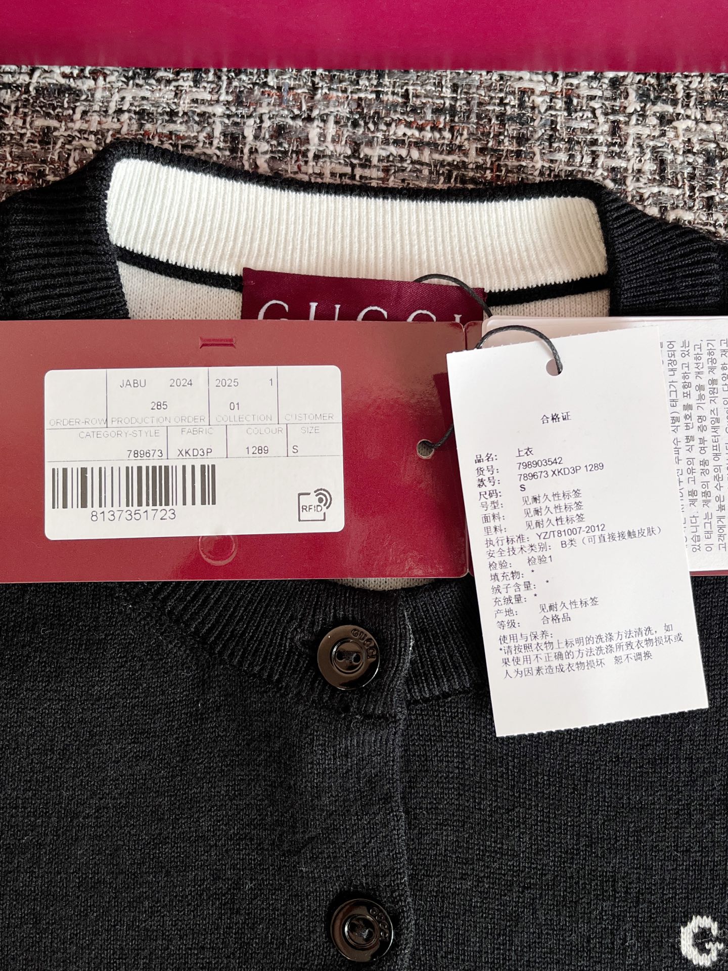 Gucci古驰 25早秋新款毛织开衫🐮10000购买Zp拆解打造,订织订染美利奴进口面料🐮真正用到100%羊毛和桑蚕丝纱线织布做到对版出货💪工艺放大看细节除还原度接近98以上 做工也无敌了🔥真正做到1:1还原 直接闭着眼购买👀码数:S M L XL