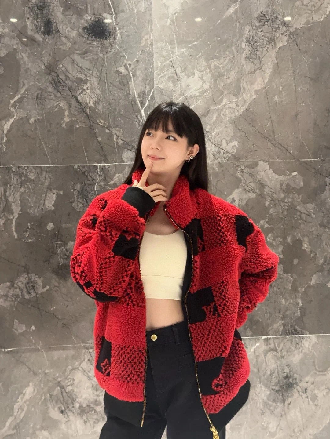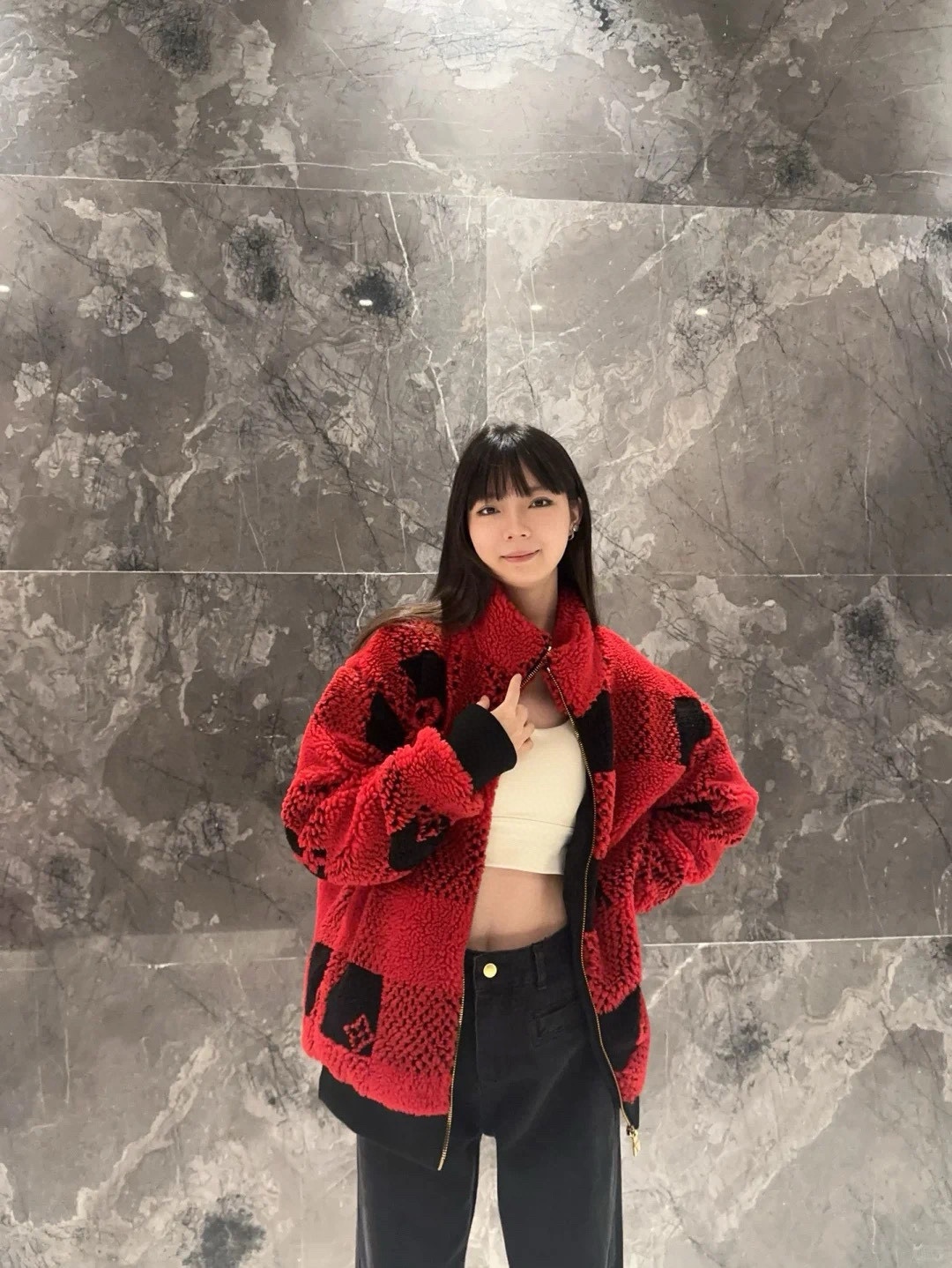 驴家 红棋盘提花泰迪夹克(JN)